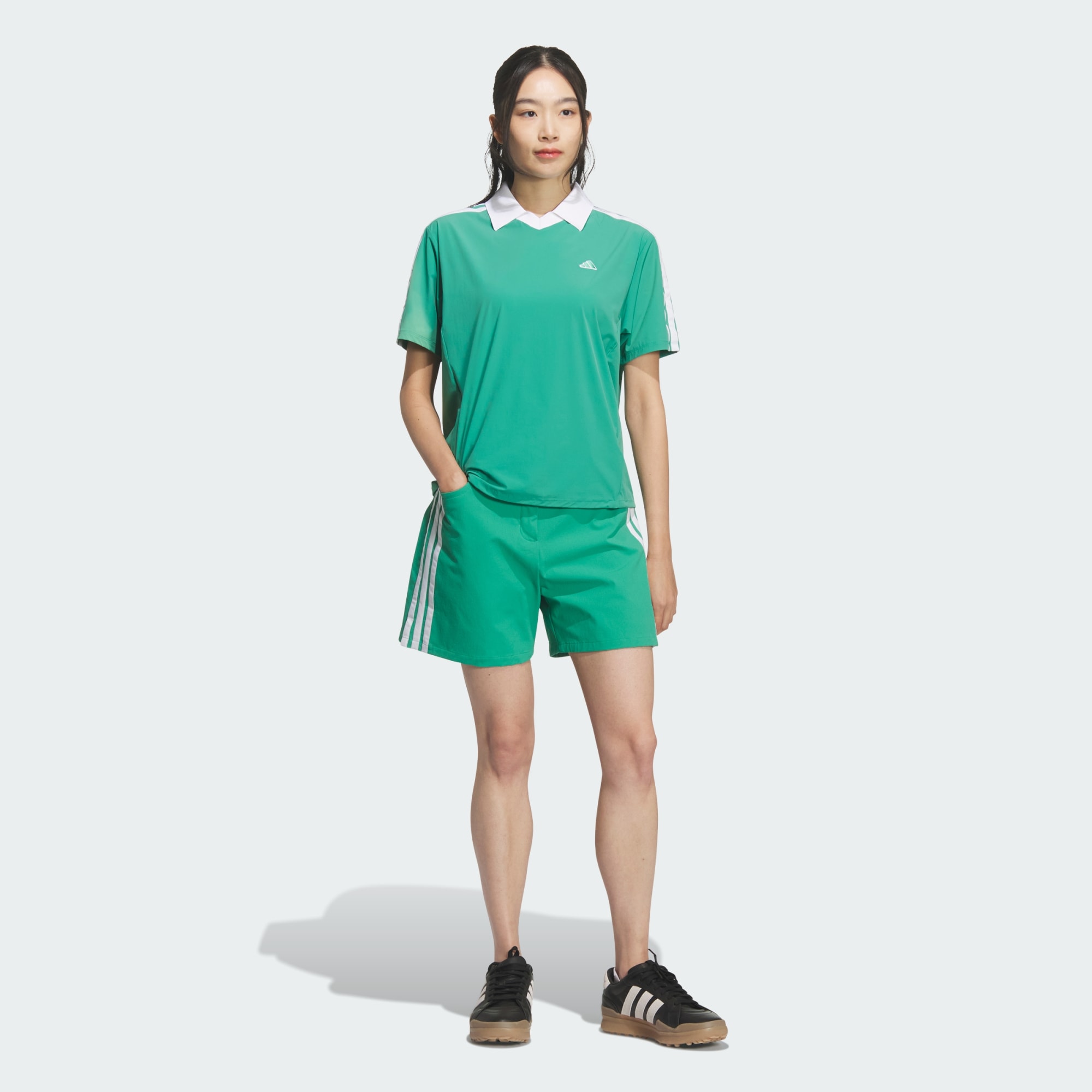 Combining classic style with modern functionality, the adidas 3-Stripes Woven Short Sleeve Shirt is designed for golfers who want style and performance on the course. The short sleeves and loose-fit style allows you to play in comfort whilst the woven material provides a light and airy feel to help you stay comfortable with every swing. The renowned 3-Stripes logo adds a touch of style so you can stand out during your round. Add this fashionable shirt to your golfing wardrobe—a shirt you can wear time and time again.