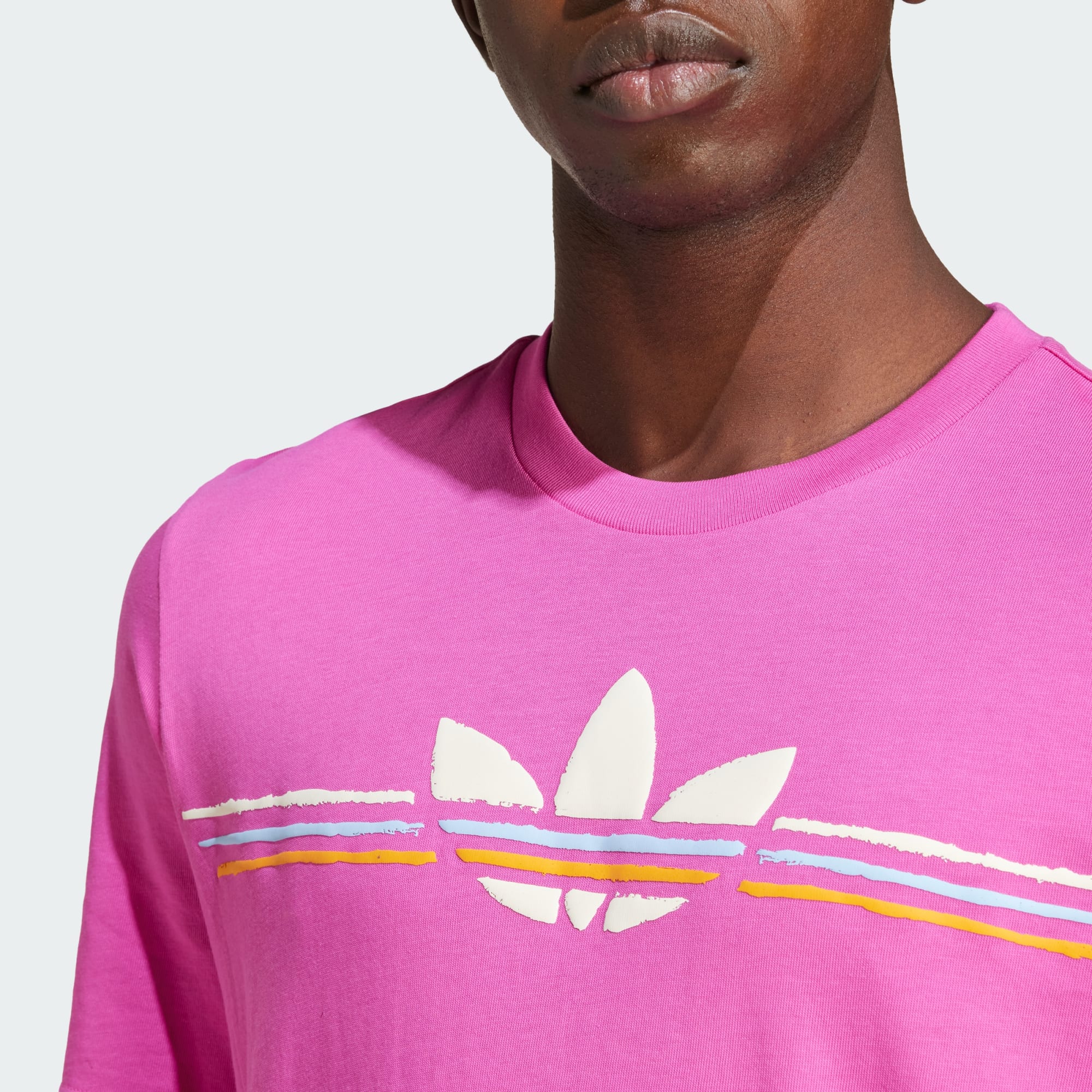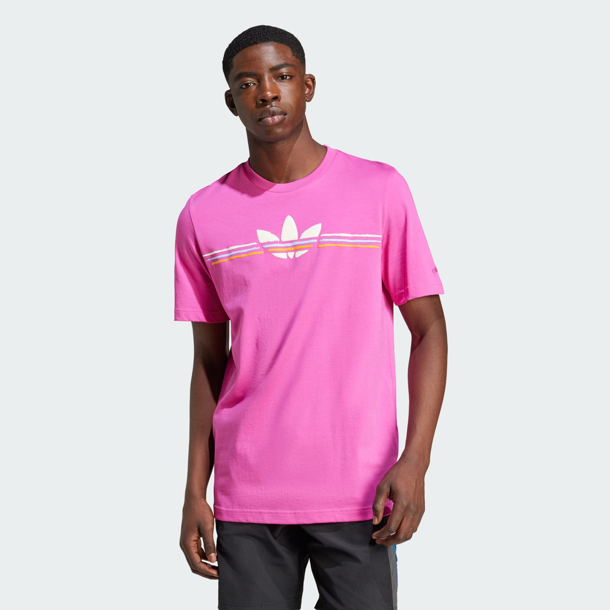 Pull off a pop of throwback style in this adidas t-shirt. The '80s-inspired design delivers a dose of nostalgia, reminding you of legends and gamechangers who came before. Crafted from soft single jersey material for everyday comfort, the regular fit moves with you without getting in the way. Pair with track pants or jeans and sneakers for a laid-back look rooted in heritage.
