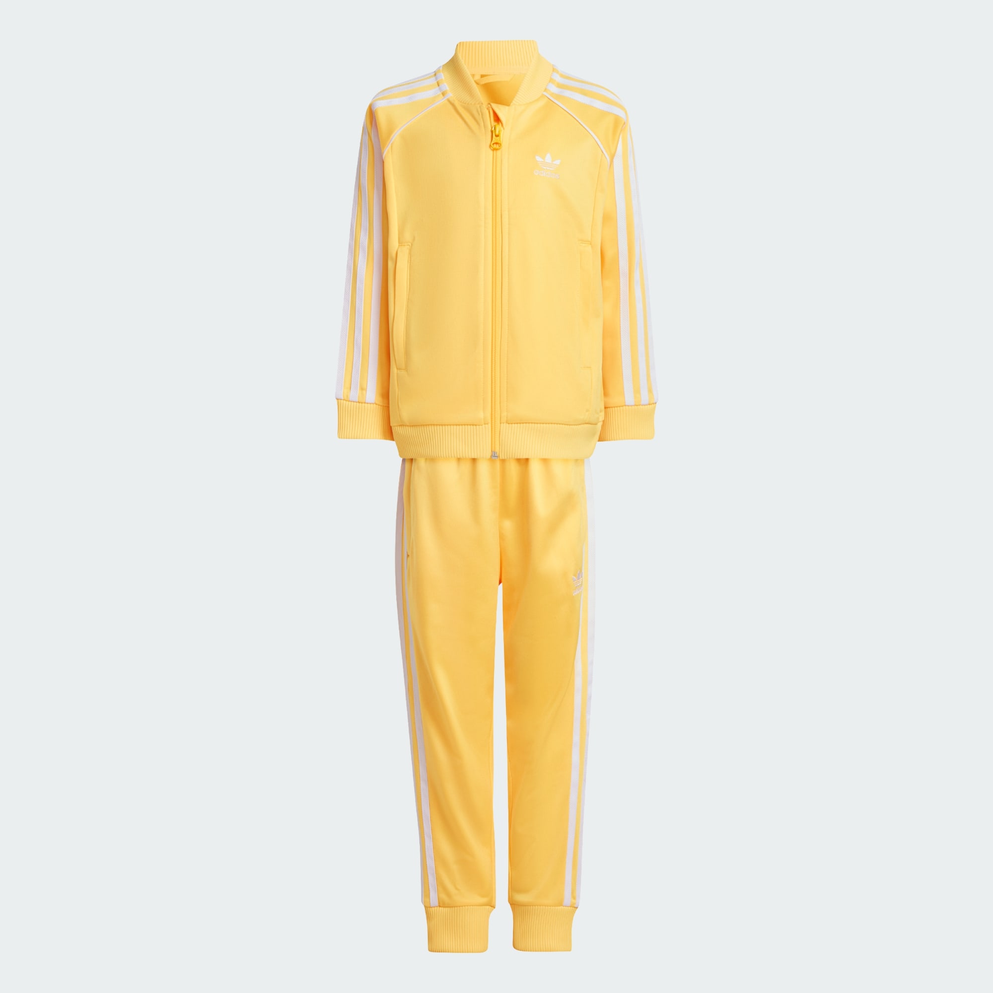 Some pieces never go out of style. This kids' adidas track suit reimagines a wardrobe staple for a new generation. The embroidered Trefoil and 3-Stripes down the sleeves and legs connect them to decades of athletes and game changers. In smooth tricot teams up with a loose, everyday fit, this look is poised to become their go-to for casual hangouts and adventures. When heritage-inspired style is this comfortable, the only thing left is for them to make their own iconic moments.This product is made with 100% recycled materials. By reusing materials that have already been created, we help to reduce waste and our reliance on finite resources and reduce the footprint of the products we make.