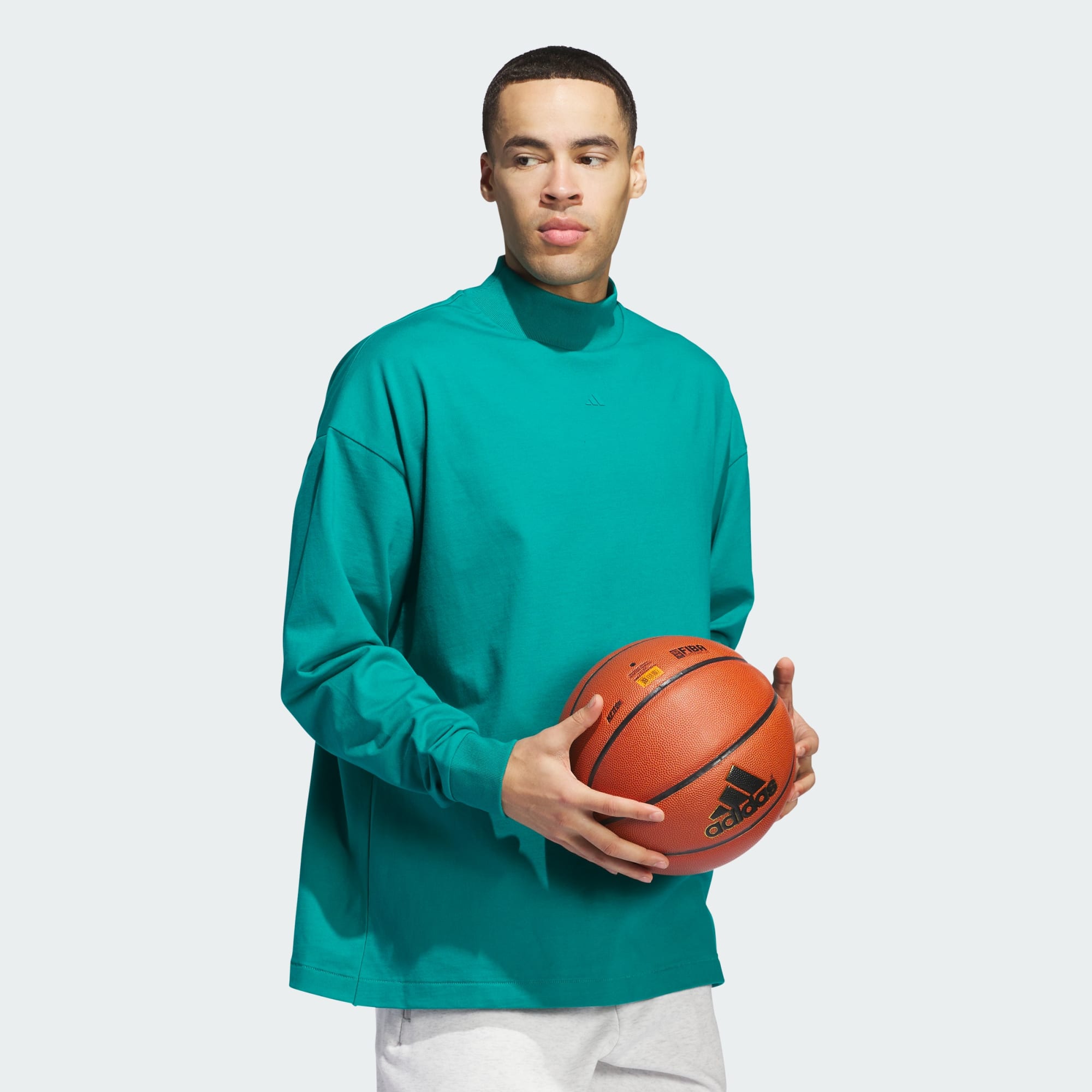 The next chapter of adidas Basketball is an exploration in form, function and colour. A curated collection, built to fit the needs of the modern athlete. This long sleeve t-shirt is made of cotton single jersey fabric and features ribbing on the mockneck and cuffs.