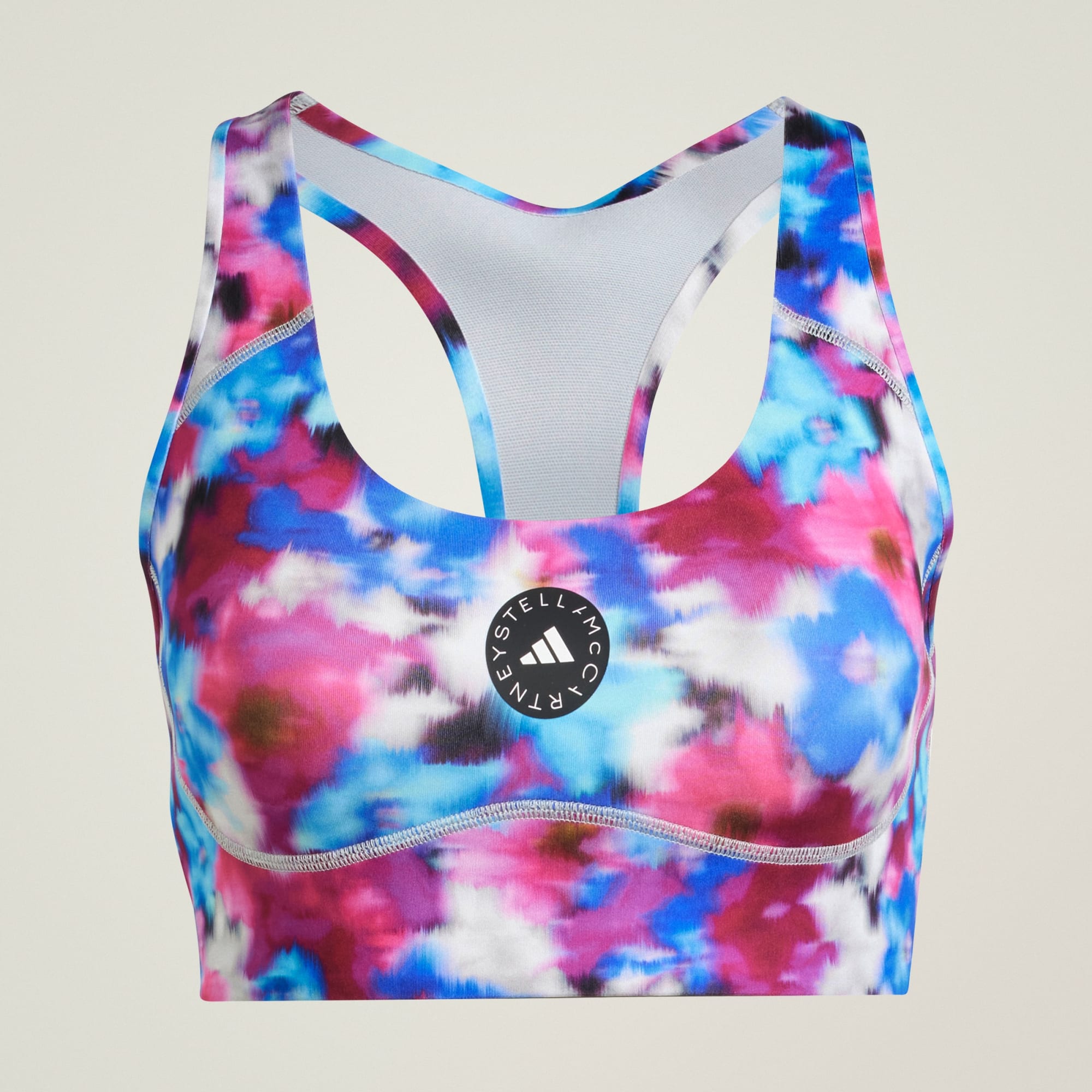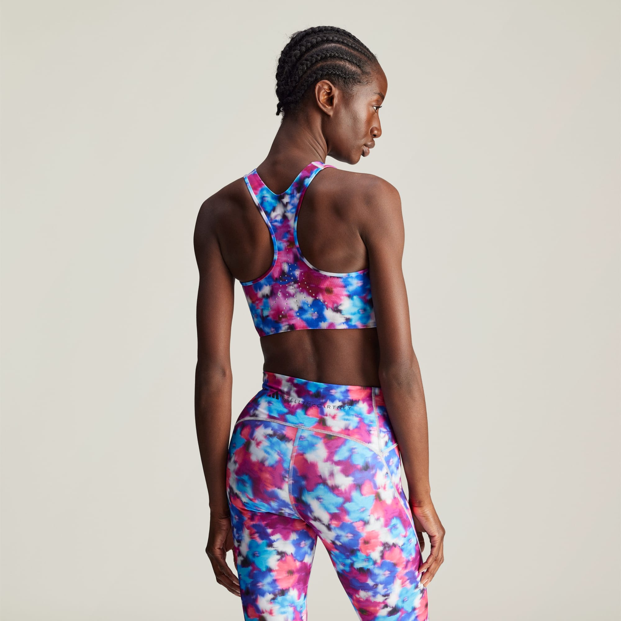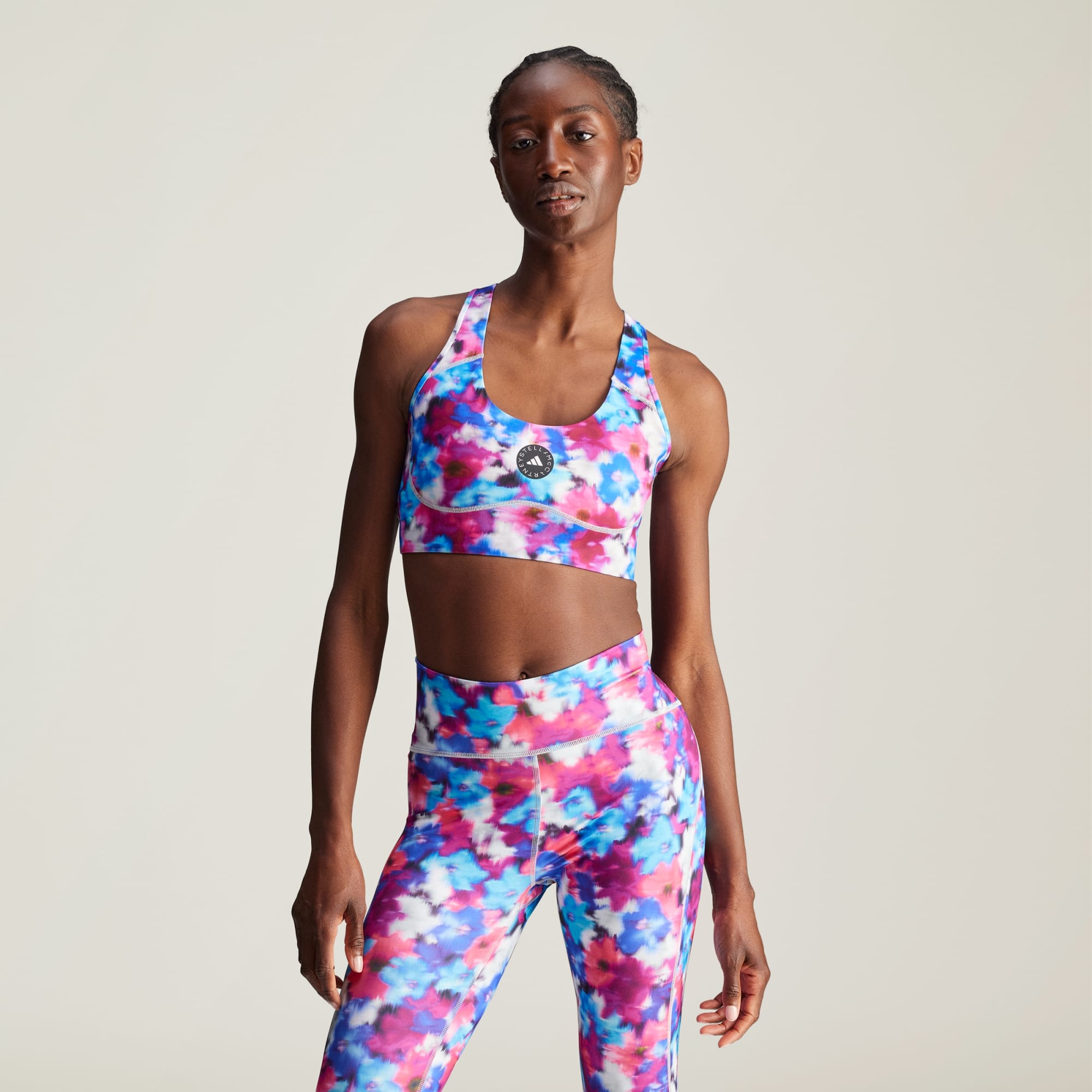 Power through intense gym sessions and dance cardio alike in this floral adidas by Stella McCartney sports bra — it was made to keep up with your versatile workouts. AEROREADY technology wicks sweat to keep you comfortable and focused. Laser-cut details add a stylish, and most importantly, breathable touch to help keep airflow circulating. Both lightweight and durable, this bra is ready for your most strenuous workouts. Move freely knowing you've got the perfect amount of coverage and support. This product is made with at least 70% recycled materials. By reusing materials that have already been created, we help to reduce waste and our reliance on finite resources and reduce the footprint of the products we make.