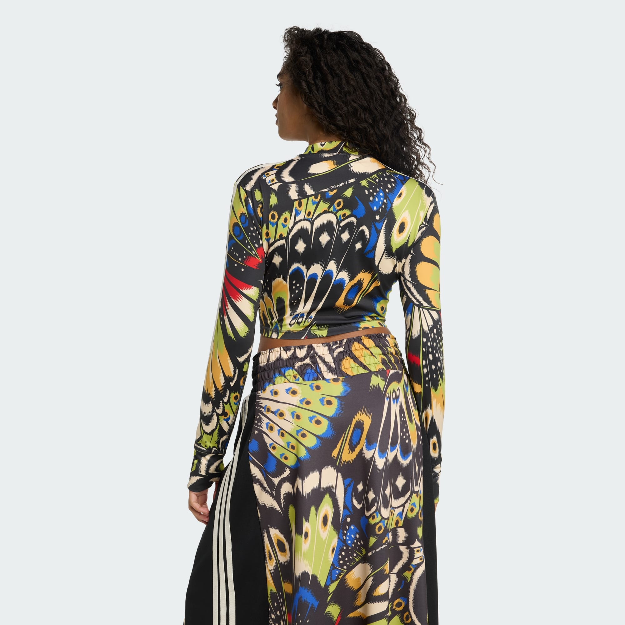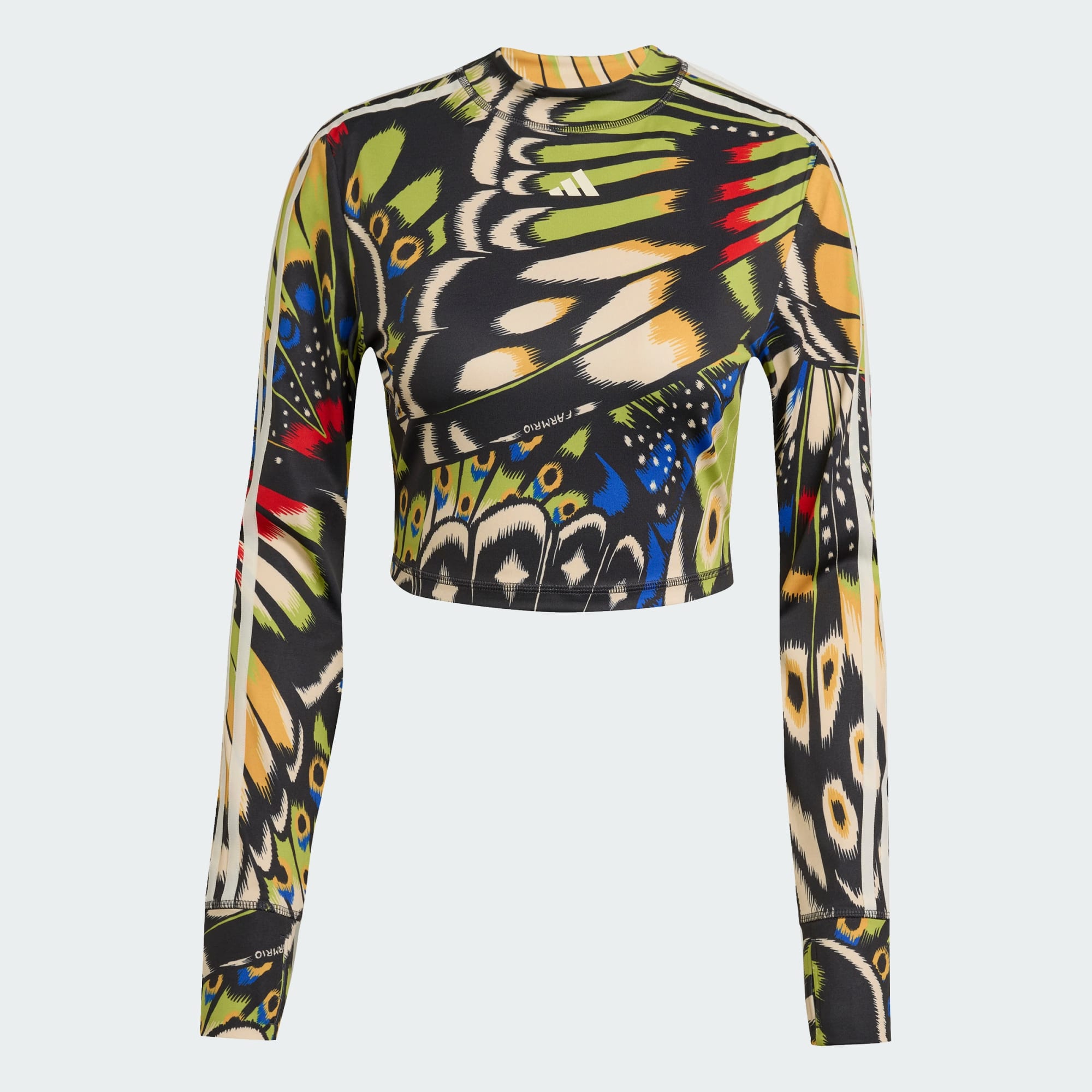 Flutter into self-assurance with the adidas x FARM Rio Longsleeve. This slim-fit top fuses adidas' sportswear mastery with FARM's vibrant Brazilian style for a look that empowers your inner goddess. The long sleeve silhouette and smooth interlock fabric move with you, keeping you cool and focused. An allover print of ethereal butterflies surrounds the shoulders and sleeves, symbolising the emergence of confidence within. Let your wings spread in this top that honours the beauty, strength and culture of Latin American women. CLIMACOOL wicks and disperses sweat for cool, dry and distraction-free performance.