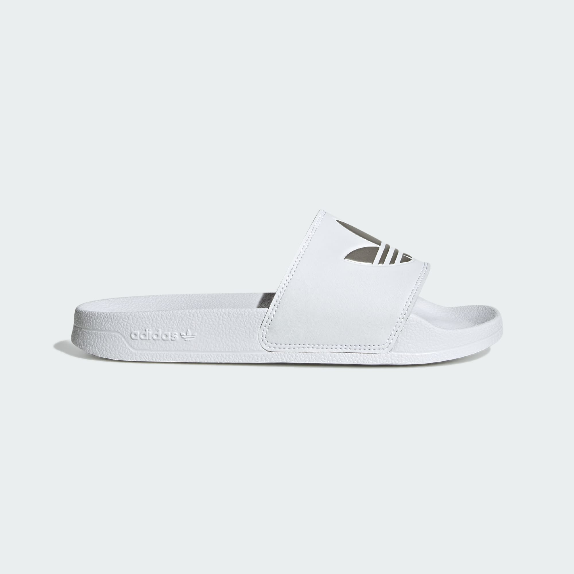 Keep things light. This applies to your life and to your footwear. These adidas Adilette slides make everything easy. All you have to do is slip them on. They work just as well when you're out running around as they do when you're in the house. You can thank the lightweight cushioning for that.
