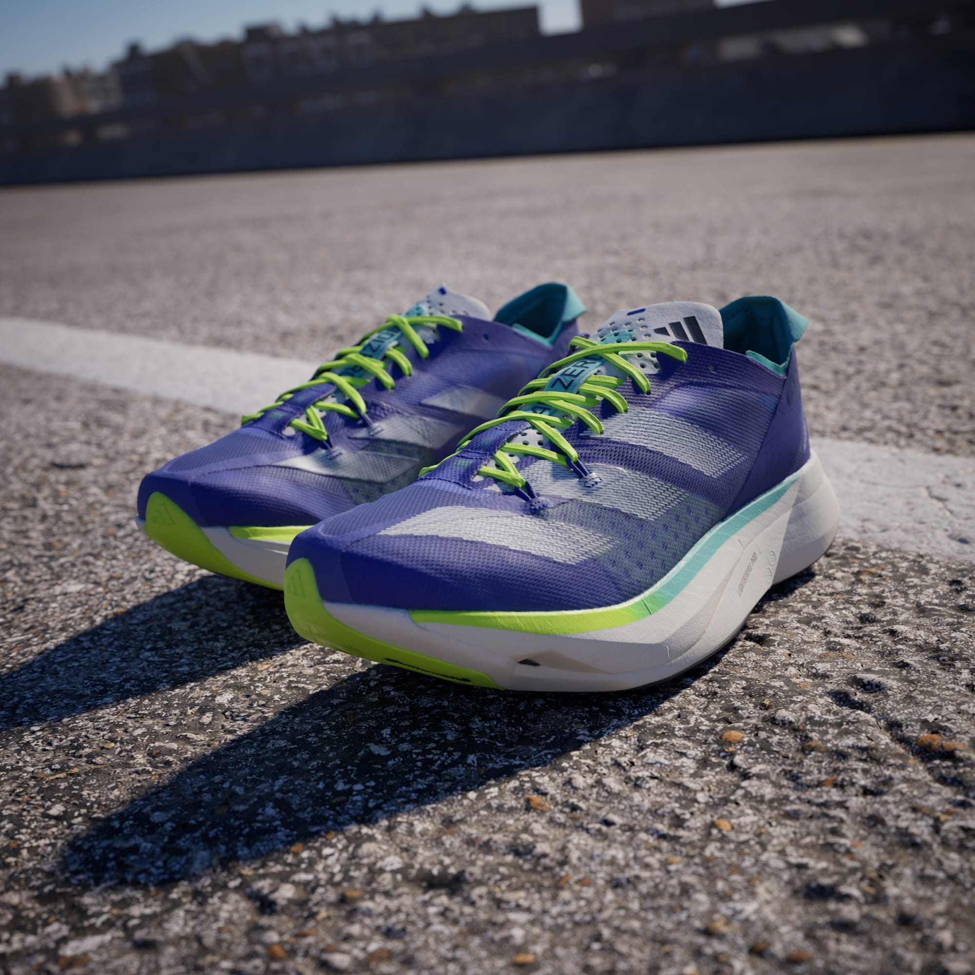 The Adizero Adios Pro 3 is the pinnacle of Adizero Racing products. It was built with and for athletes to achieve unbelievable feats. These adidas running shoes are made to optimize running efficiency. Our carbon-infused ENERGYRODS 2.0 provide lightweight stiffness for a snappy, efficient stride. Ultralight LIGHTSTRIKE PRO cushions every step with two layers of our most resilient foam to help you maintain energy over the long term. It all rides on a thin layer of textile rubber outsole for extraordinary traction in wet and dry conditions.
