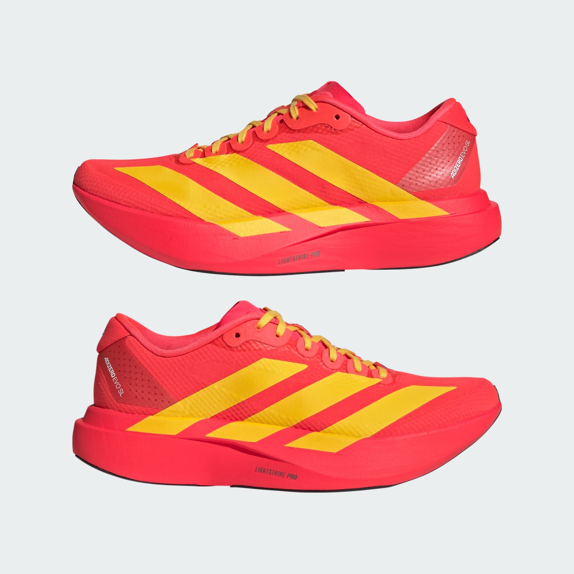 Inspired by the record-breaking EVO 1, our Adizero EVO SL shoes are crafted for speed and versatility. Whether you're preparing for a marathon, charging down the track, or heading out for an easy run, these shoes are built to match your pace Featuring adidas LightstrikePro technology, they deliver next-level speed with a super-light midsole engineered for dynamic, lightweight movement and optimal responsiveness. The regular fit offers comfort without sacrificing performance, while the lace closure provides a secure, strapped-in feel. A breathable textile upper and lining help your feet feel cool, and the rubber outsole offers reliable traction on road surfaces—adapting easily to your running demands. With iconic 3-Stripes branding, these shoes are made to help you break personal records and push your limits in style.