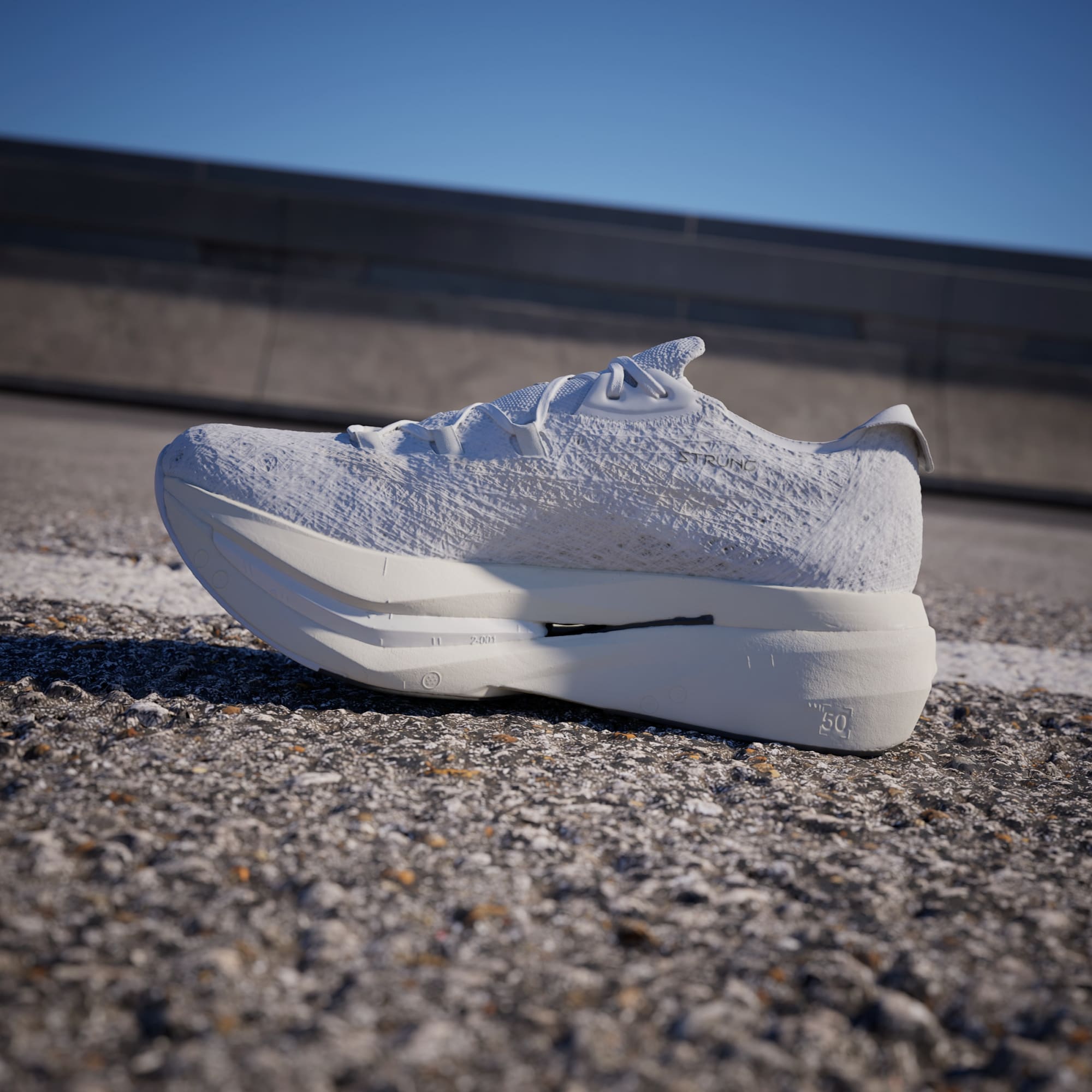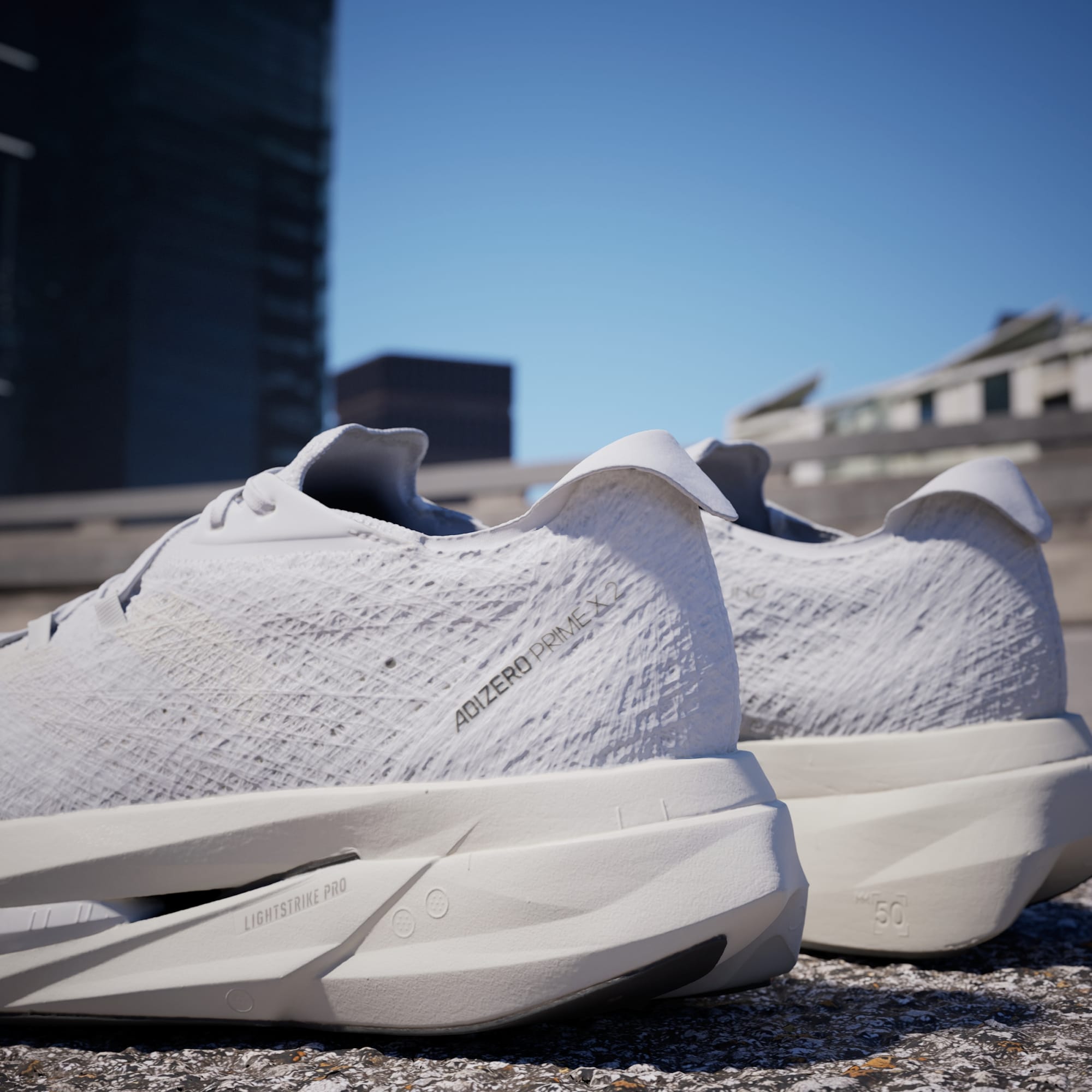 Three layers of LIGHTSTRIKE PRO, more than in any other adidas running shoe, create a stack height of 50 mm. An energy core between two foam layers helps to reduce weight, giving more spring in the fore- and midfoot.