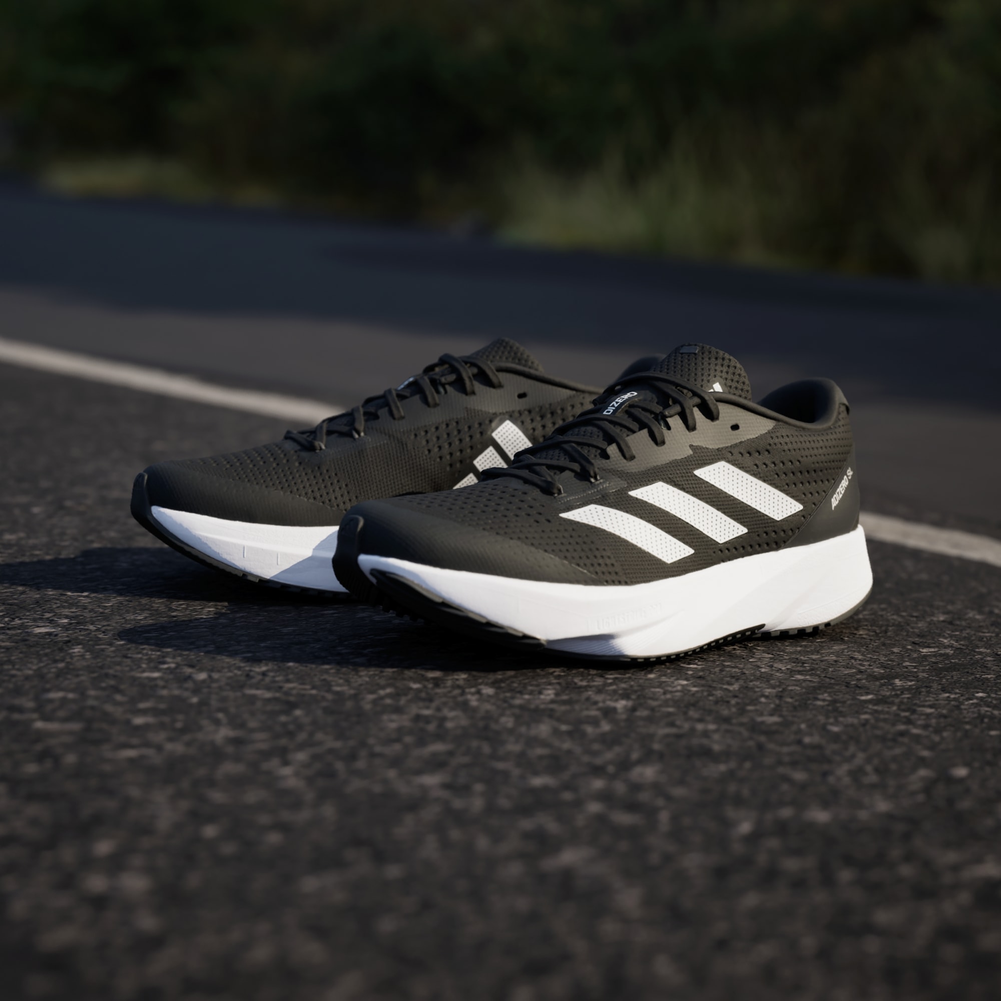 LIGHTSTRIKE PRO foam, also used in the record-breaking Adizero Adios Pro models, is strategically inserted in the forefoot area, designed for fast training runs.
