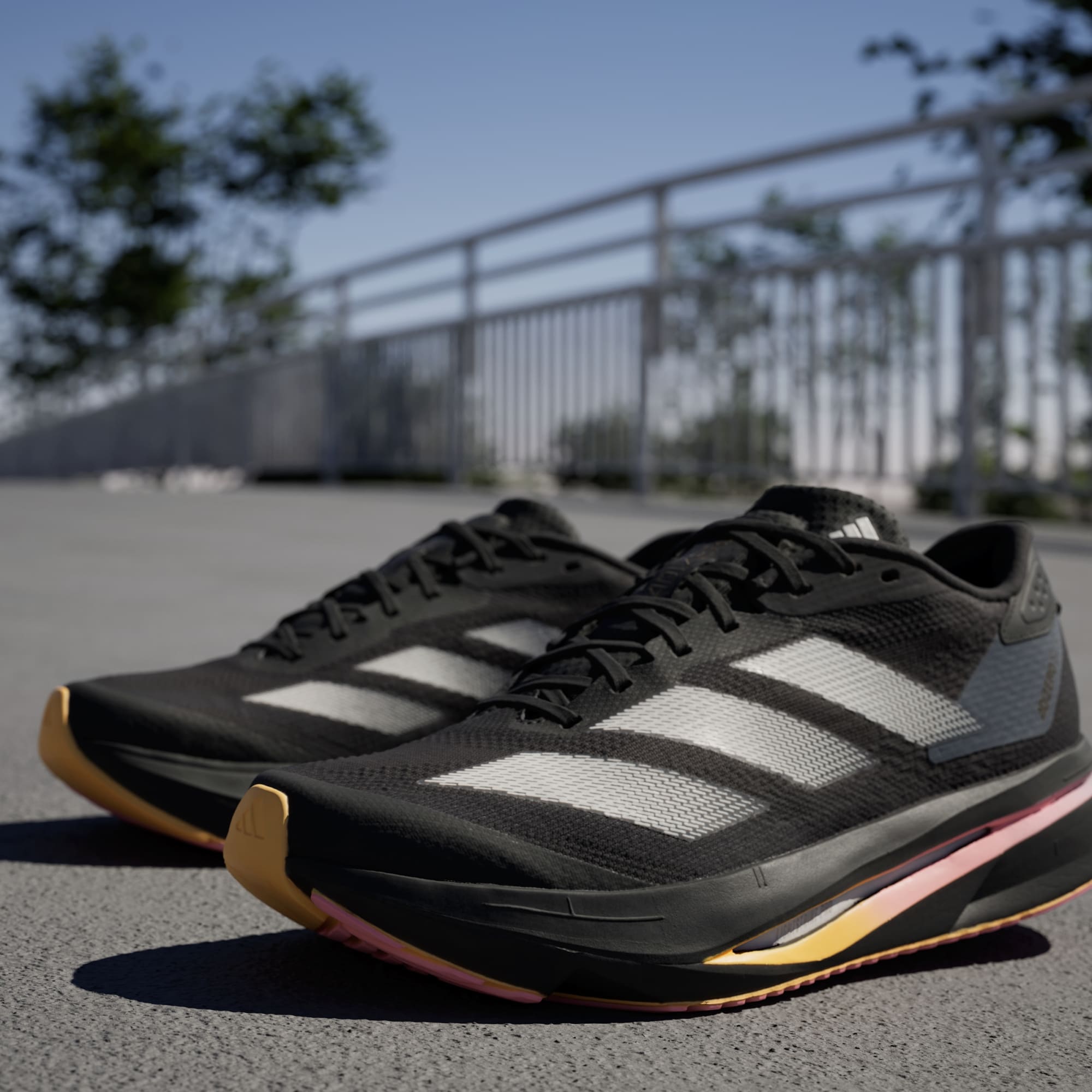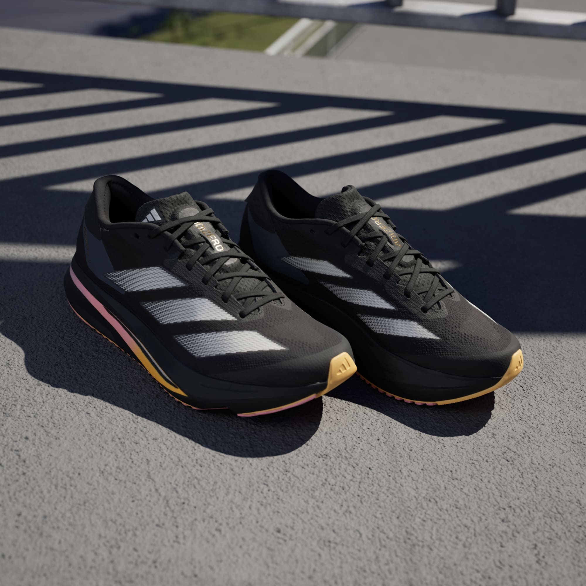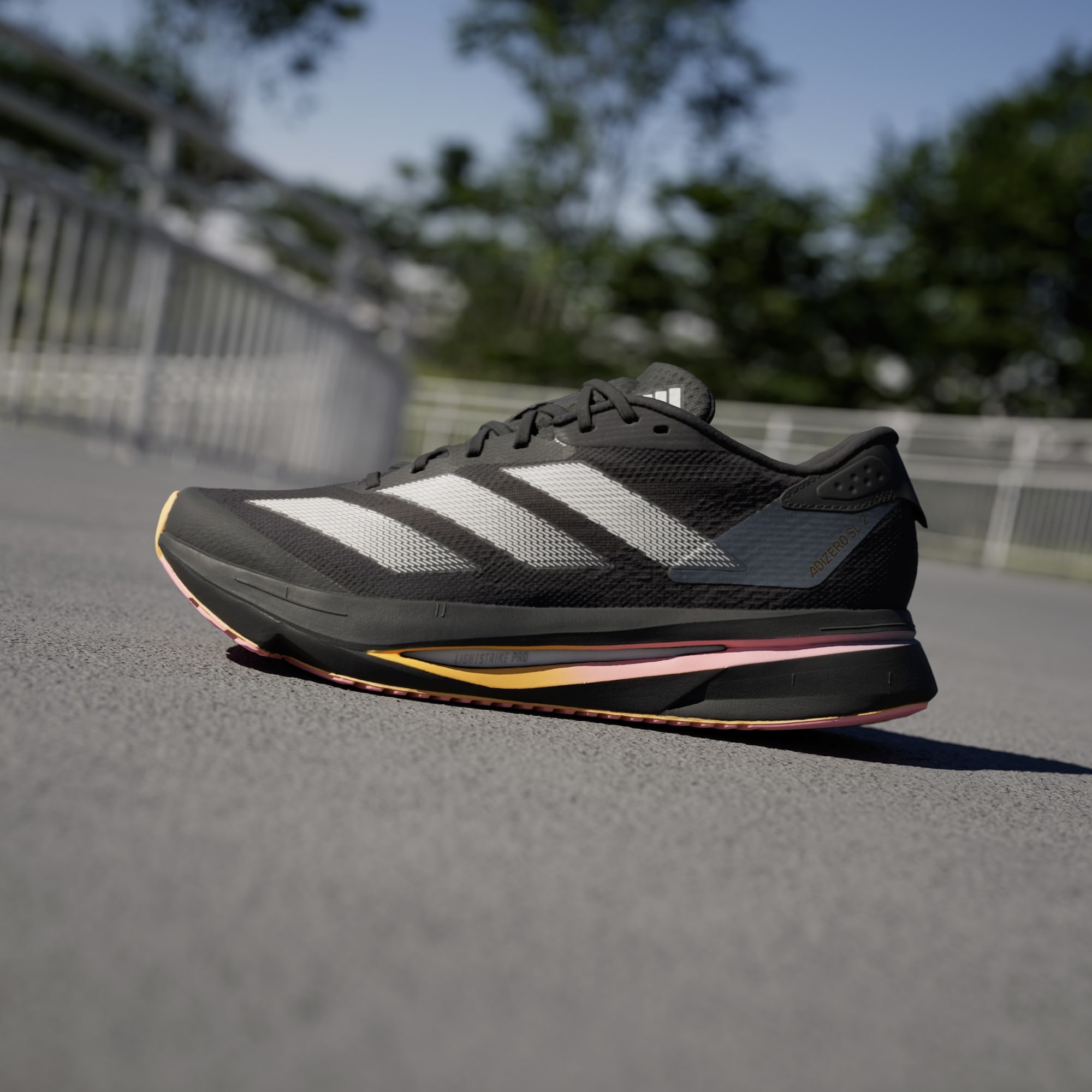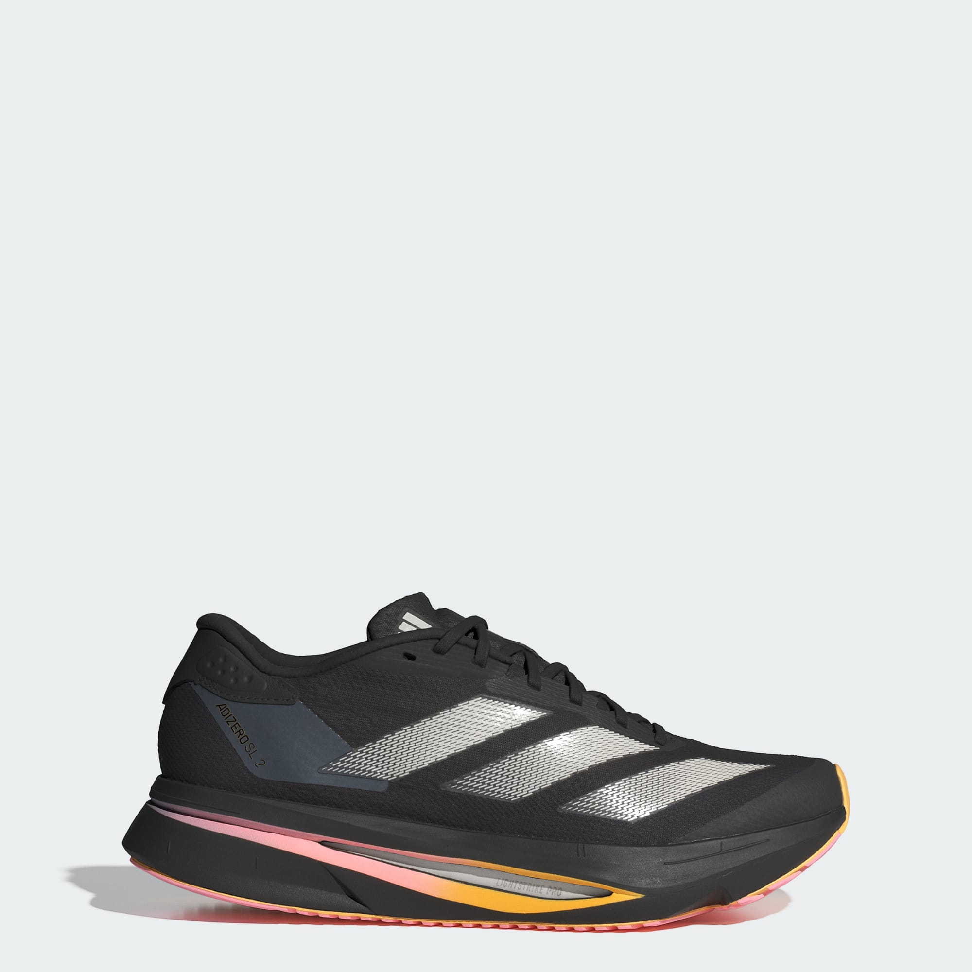 Experience the thrill of breaking personal records in a shoe that's as fast as you are. These adidas Adizero running shoes are equipped with responsive Lightstrike Pro, super-light cushioning that delivers energy return for next-level speed. The engineered mesh upper provides breathability and targeted support where you need it most to keep you flying to the finish.