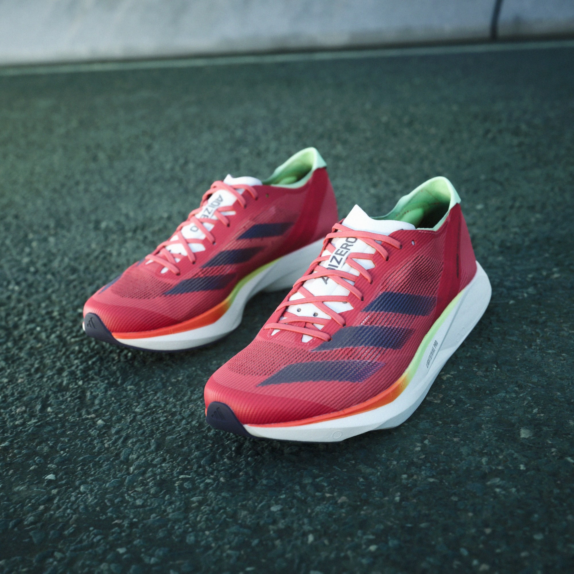 Chase your fastest 10k in our latest Adizero racing shoes, built exclusively for speed. The Adizero Takumi Sen 10 have been designed with two layers of LIGHTSTRIKE PRO cushioning, combined with ENERGYRODS for stiff and snappy toe-offs as you transition from corners to straights. Get to the finish line in your fastest time yet.