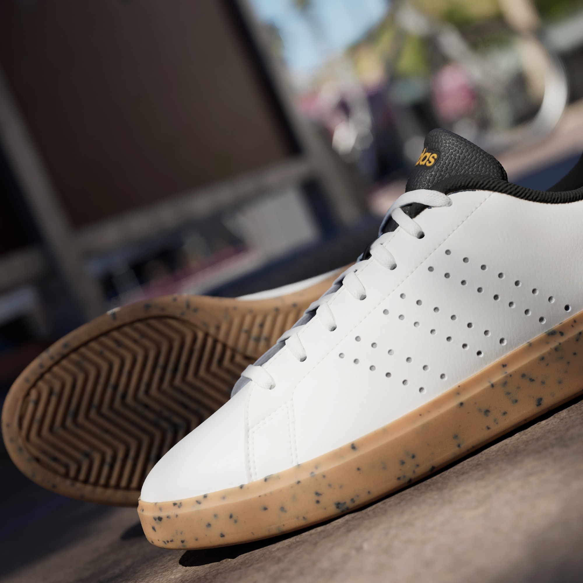 A modern upgrade on an iconic tennis shoe. These adidas sneakers feature a faux leather upper, perforated with the 3-Stripes for a subtle look. Inside, the Cloudfoam Comfort sockliner feels ultra-soft and plush, absorbing impact while keeping the ride smooth. Complete with a sturdy rubber outsole, these kicks are made to handle quick cuts and casual strolls alike. Whatever your plans, the minimal style pairs with everything.