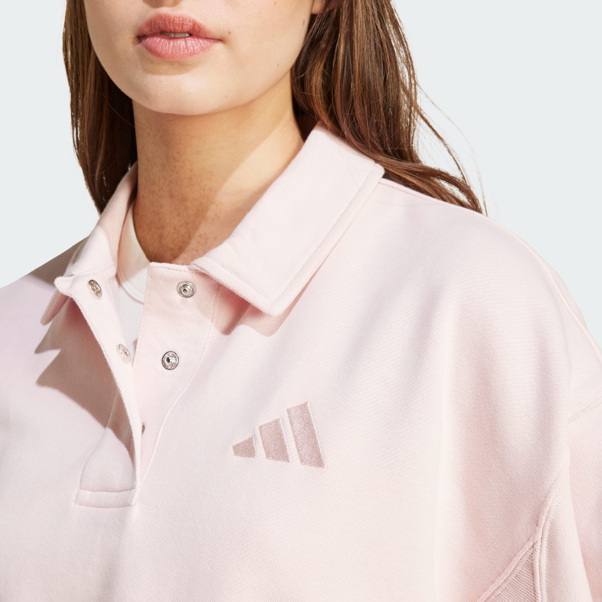 Stay comfortable yet stylish in this adidas sweatshirt. The soft cotton French terry fabric embraces your shape, while drop shoulders and batwing sleeves allow freedom of movement and a touch of elegance. Snap buttons at the polo collar let you play around with the look, and ribbed cuffs elevate the casual look. Whether heading out for brunch or cosying up on the couch, this sweatshirt keeps you stylishly at ease and ready for whatever the day brings.