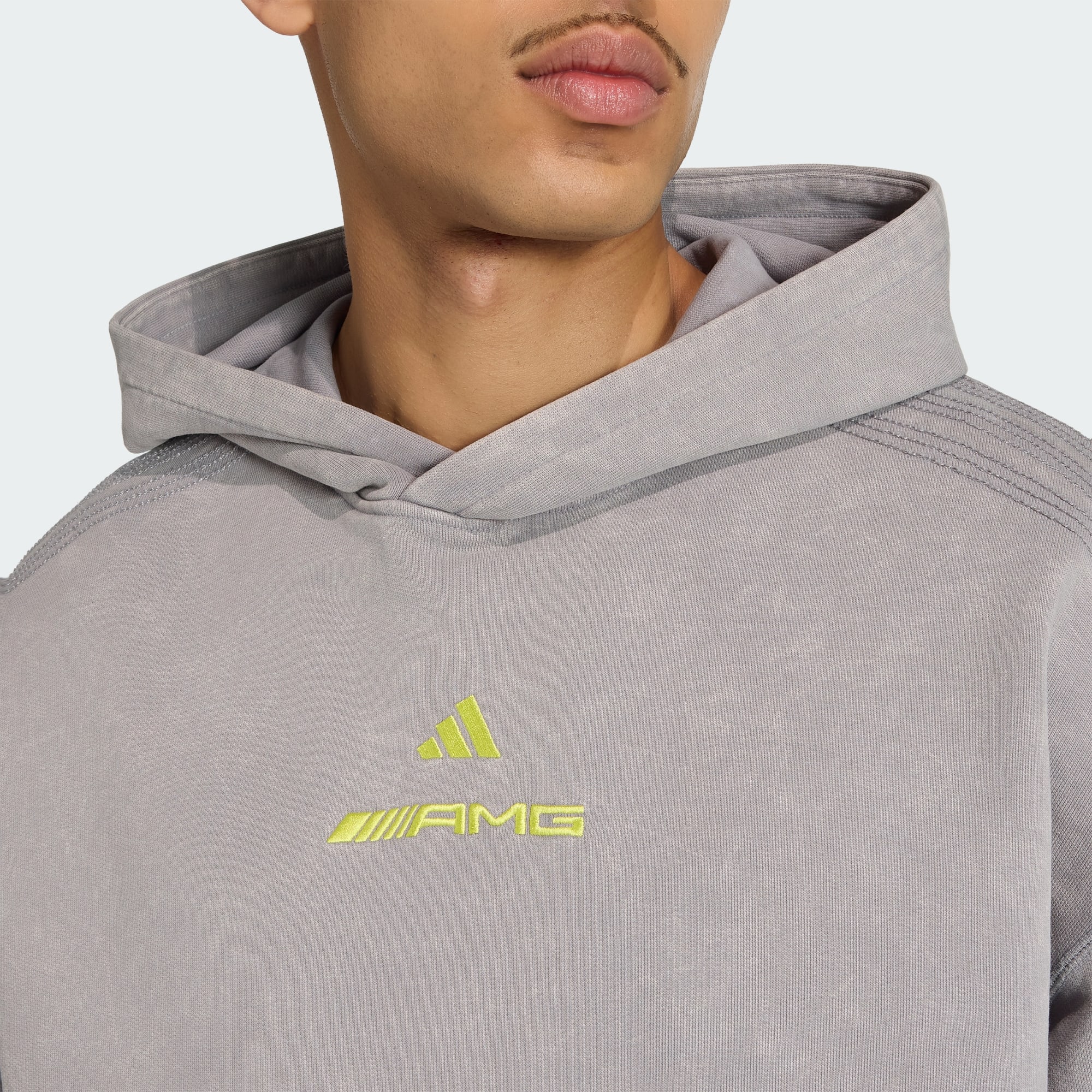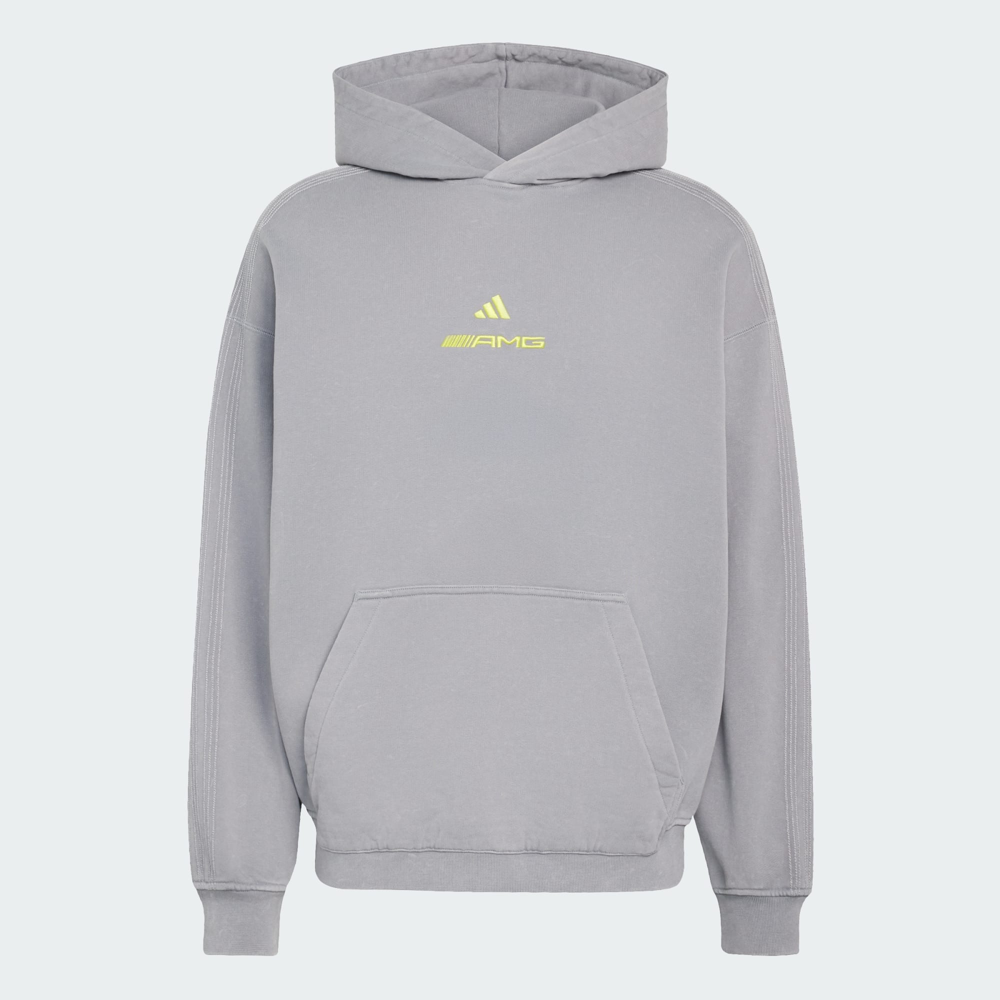 Style meets performance in the AMG Washed Hoodie. Crafted from French terry. It offers a soft touch and a relaxed fit that helps you move freely, whether you're cheering from the stands or enjoying a casual day out. The Trefoil badge adds a touch of adidas heritage, whilst the hood provides extra warmth. With its loose fit, it’s a stylish and practical choice for motorsport enthusiasts or simply those who love the sporty look. From the racetrack to the city streets, this hoodie is designed to keep you comfortable and stylish.
