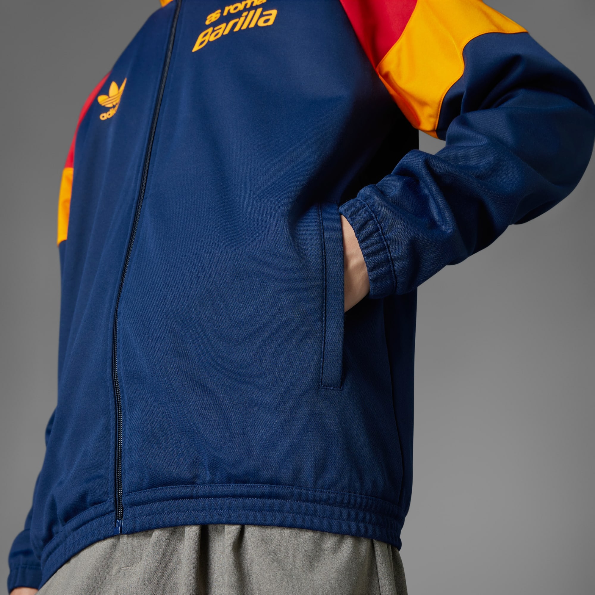 Bring some '90s style to match days in this vintage-inspired adidas AS Roma track jacket. A faithful recreation of the tops the club's players pulled on in the 92/93 season, it combines bold blocks of colour with a classic Trefoil. A team name on the chest completes the classic look. For fans of football history, this piece scores real style points. By choosing recycled, we are able to reuse materials that have already been created, which helps to reduce waste. Renewable materials choices will help us to remove our reliance on finite resources. Our products made with a blend of recycled and renewable materials feature at least 70% total of these materials.