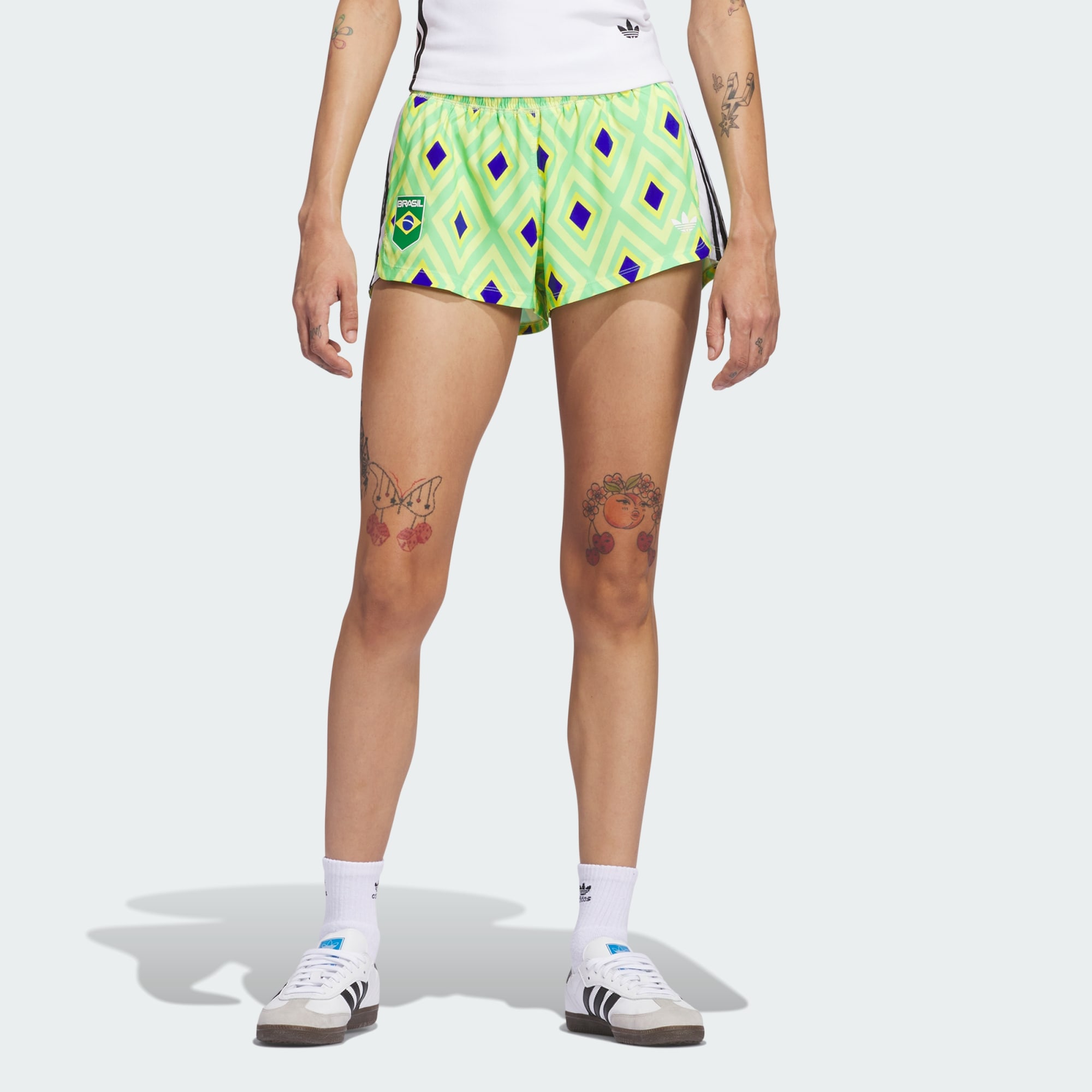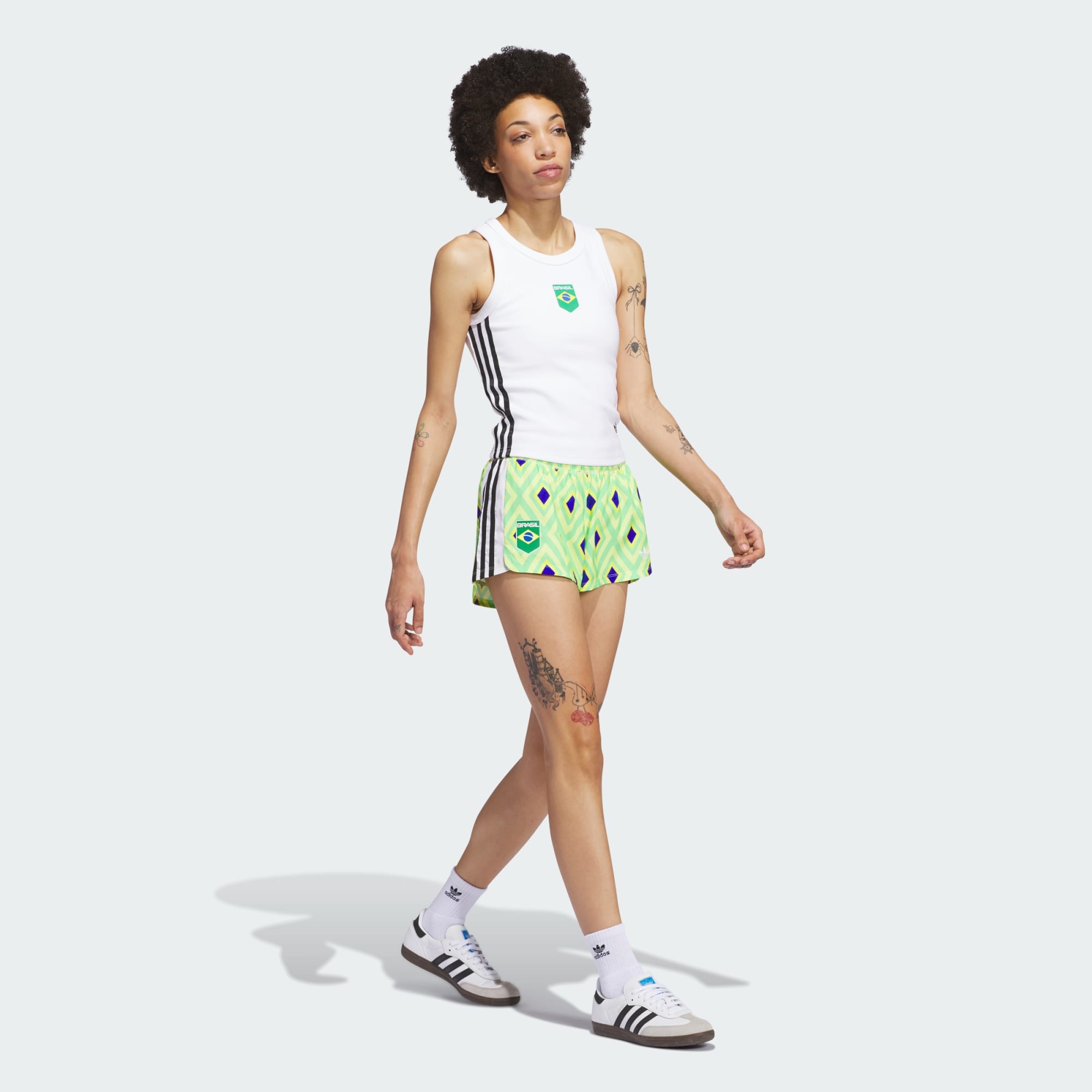 A celebration of Brasilian skateboarding culture, featuring artwork by Criola and adidas. Created with renowned visual artist Criola, each piece blends her bold, geometric designs and nods to her Afro-Brasilian roots with adidas heritage and design. The Brasil Skateboarding shorts blend the bold pattern and colours of Team Brasil with 3-Stripes design in loose-fitting, elastic-waist shorts designed for skateboarding.