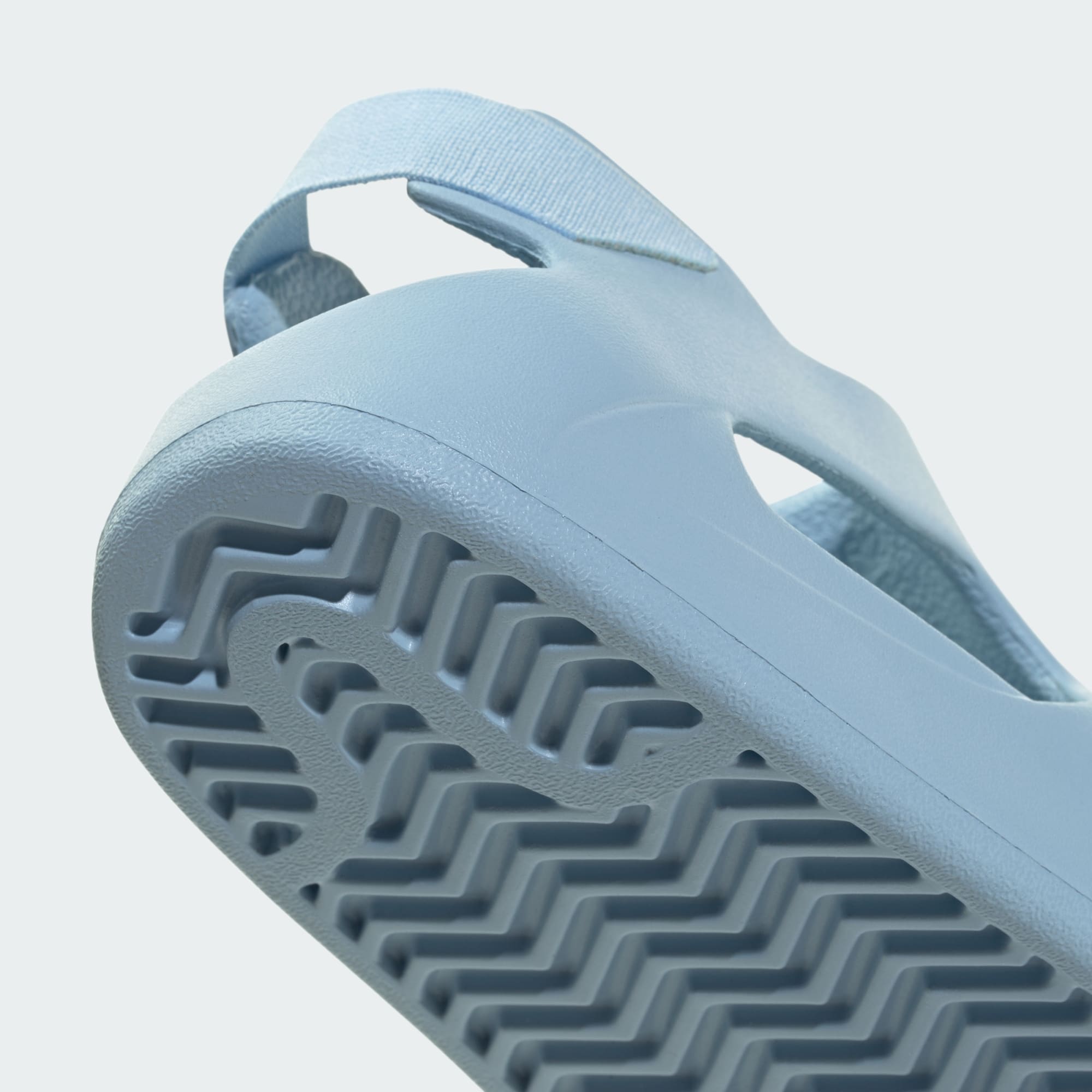 Foam slides with elastic heel strap for easy step-in and comfort.