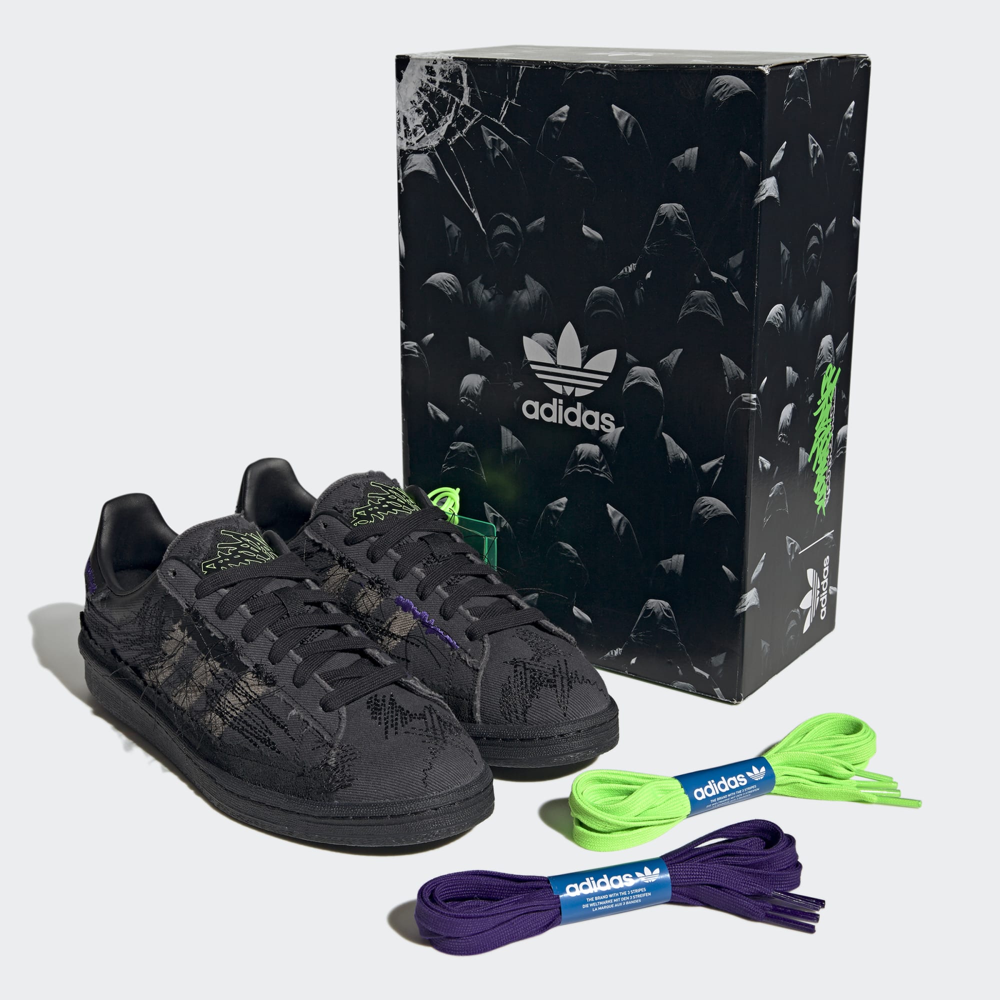 Bringing the dystopian aesthetic of Youth of Paris to footwear, these adidas Campus 80s shoes turn detail into statement. Distressed denim, freeform embroidery and pops of neon shape an eye-catching upper. Signature 3-Stripes turn up the energy, and a Trefoil on each heel tab grounds the look in heritage. Soft lining puts the comfort of your feet first, and the semi-transparent rubber outsole takes on the day without slips or slides.