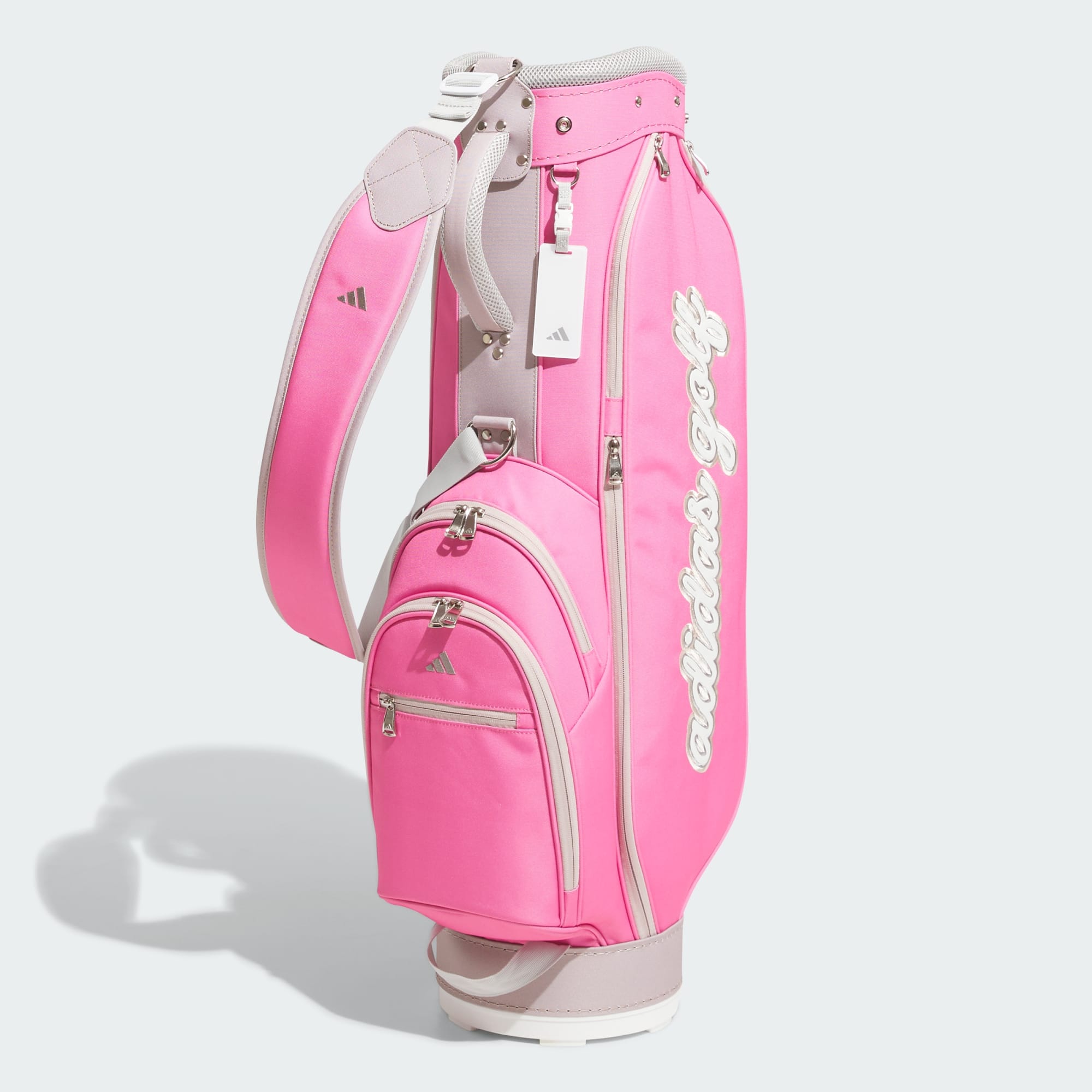 Wherever you play, this adidas golf bag keeps your clubs organised and at the ready. A selection of zippered compartments keeps balls, tees and course-day accessories easy to find. The synthetic build offers all-around durability, and a padded shoulder strap plus a grab handle make for easy transport.