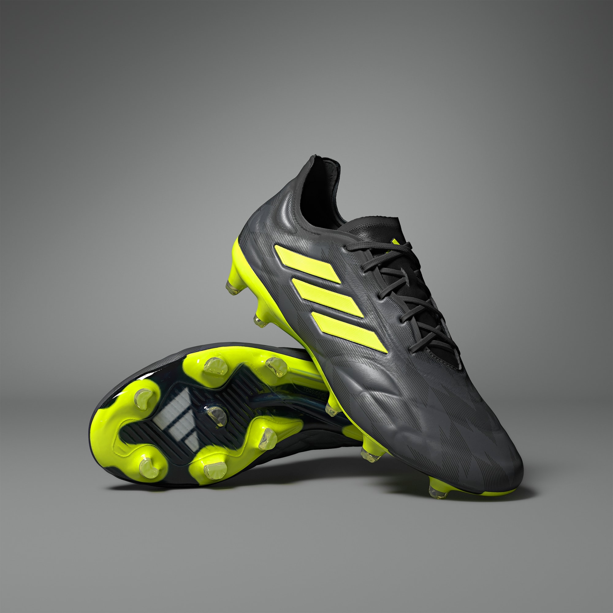 The Copa Pure II Injection.1 Firm Ground Boots are a high-performance reminder of why it's called the beautiful game. Flashing chevron-style graphics, these boots are crafted to give you a crazy touch. Premium FUSIONSKIN upper blended with ultra-soft leather and 3D haptic print for precise touch. High density foam cushioning in key zones heighten the comfortable experience and provide stability during movement. Lightweight TORSIONFRAME outsole provides traction and stability for assured play. Laced classic fit with textile collar provides lockdown. Made with a series of recycled materials, the upper features at least 50% recycled content. This product represents just one of our solutions to help End Plastic Waste.