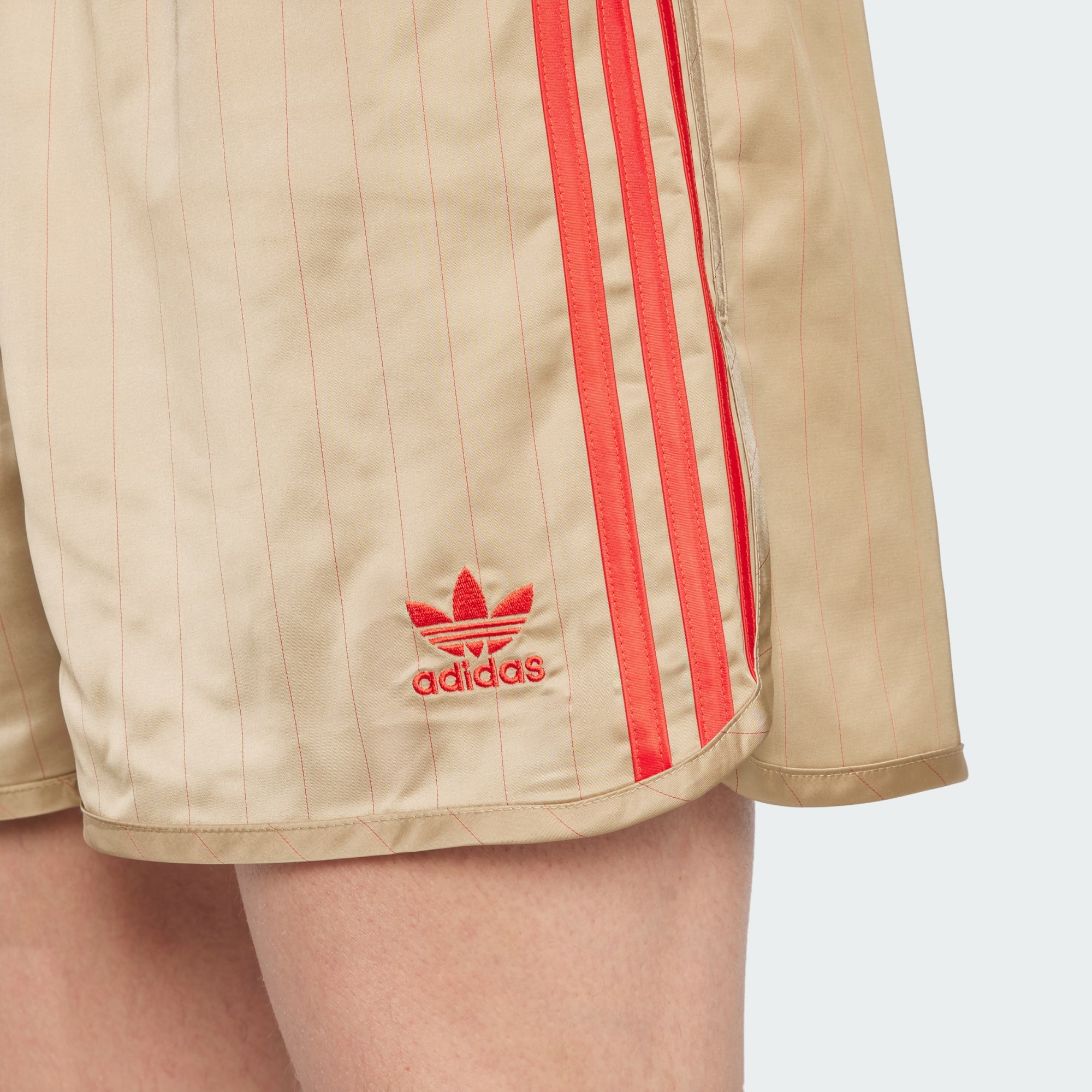 Part of a premium, '70s-inspired football collection designed in collaboration with David Beckham. These adidas shorts nod to an era of the beautiful game when shorts were shorts. Standing out on smooth, satin-like fabric, pinstripes and an embroidered Trefoil will bring back memories for some. But even if they don't for you, you can be sure these classics will at least score you serious style points.