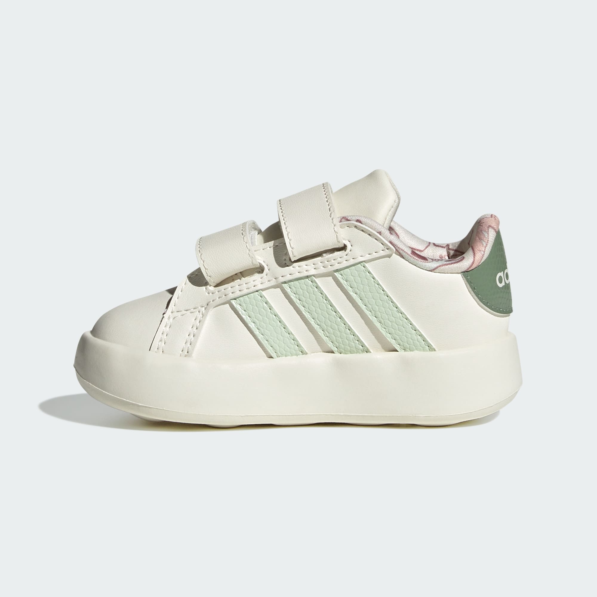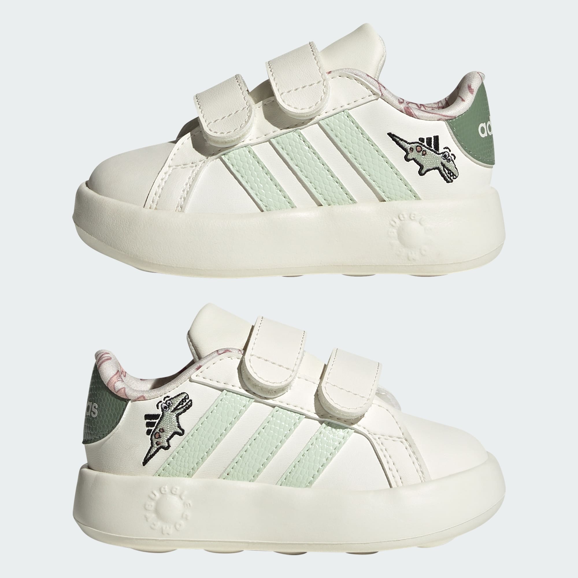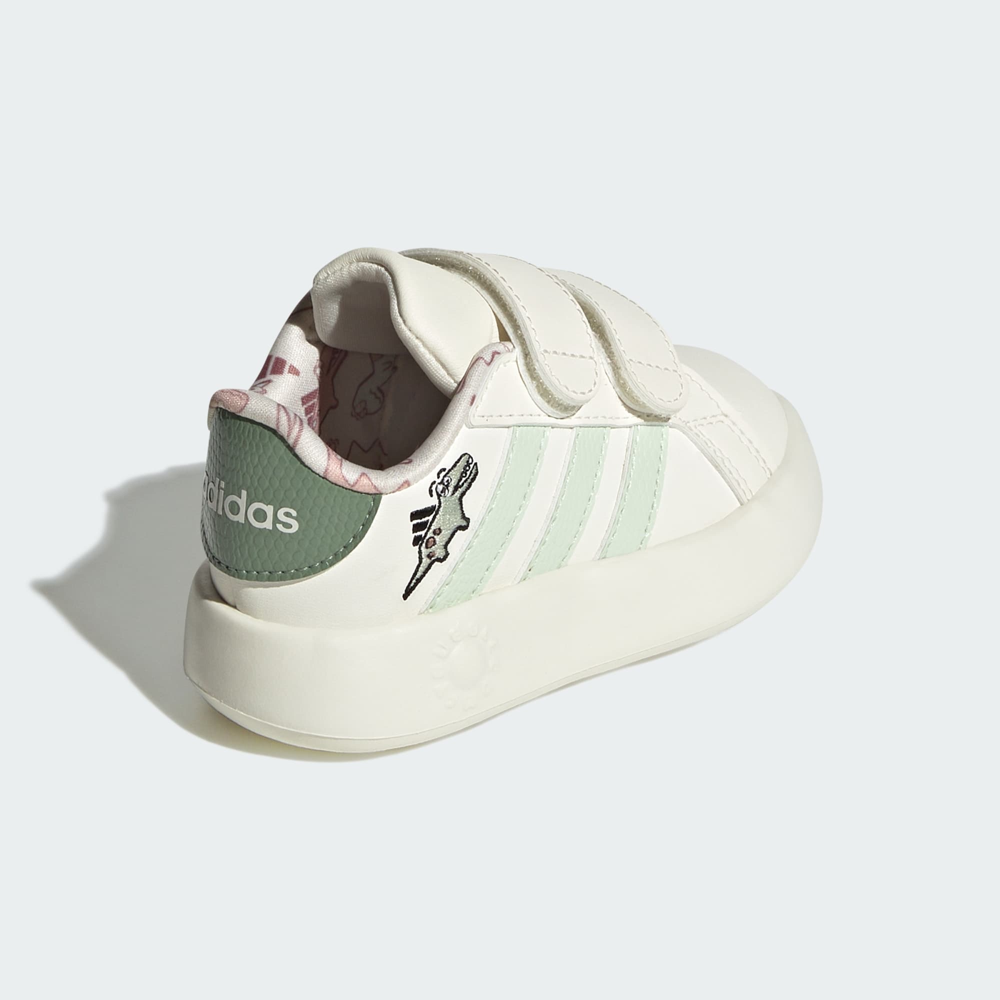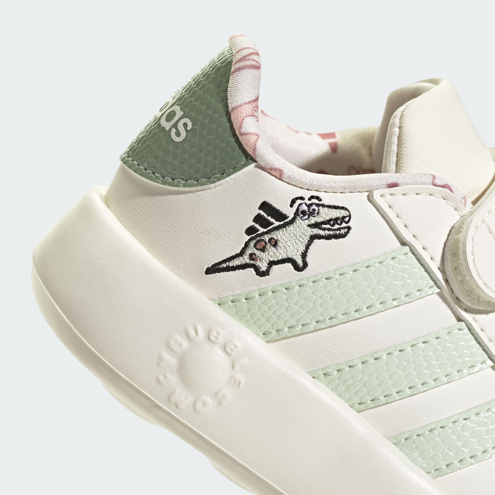 Your little one will love exploring in these infants' adidas shoes. The EVA midsole is soft, comfy, and perfect for growing feet. A dinosaur print adds a playful touch and adjustable straps make them easy to put on and take off. This product features at least 20% recycled materials. By reusing materials that have already been created, we help to reduce waste and our reliance on finite resources and reduce the footprint of the products we make.