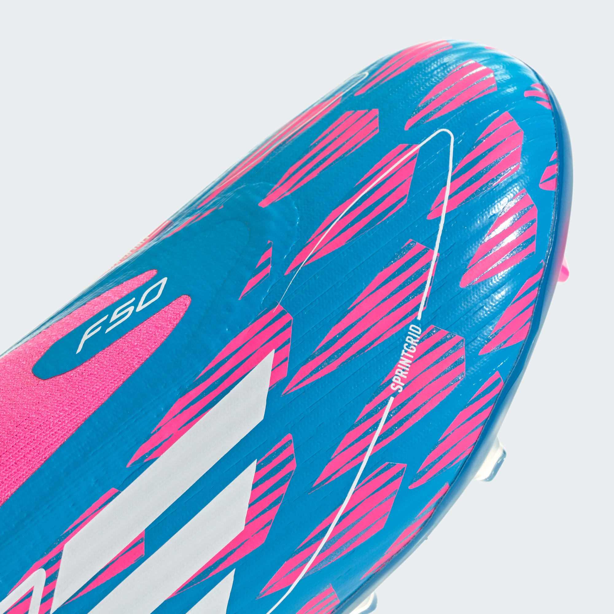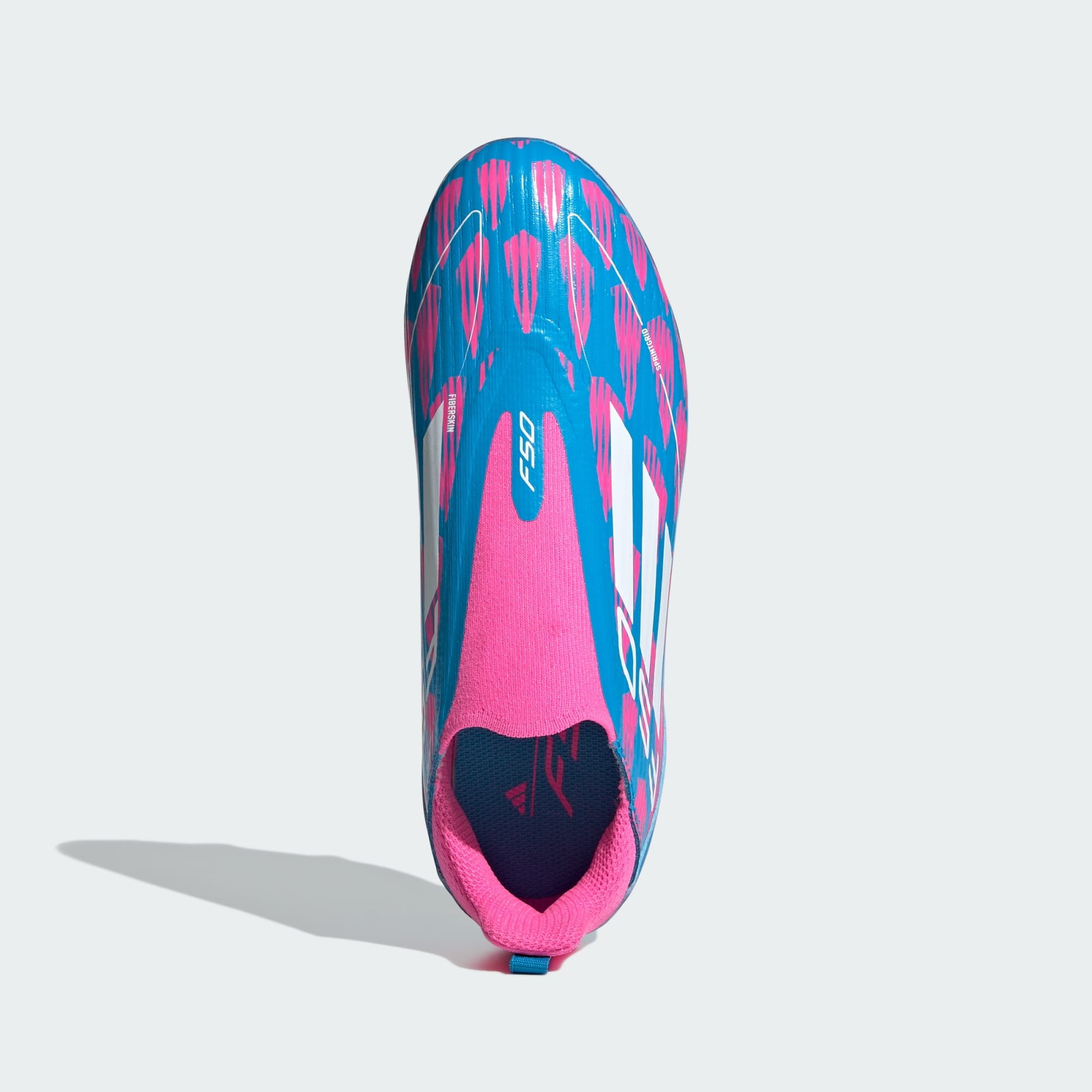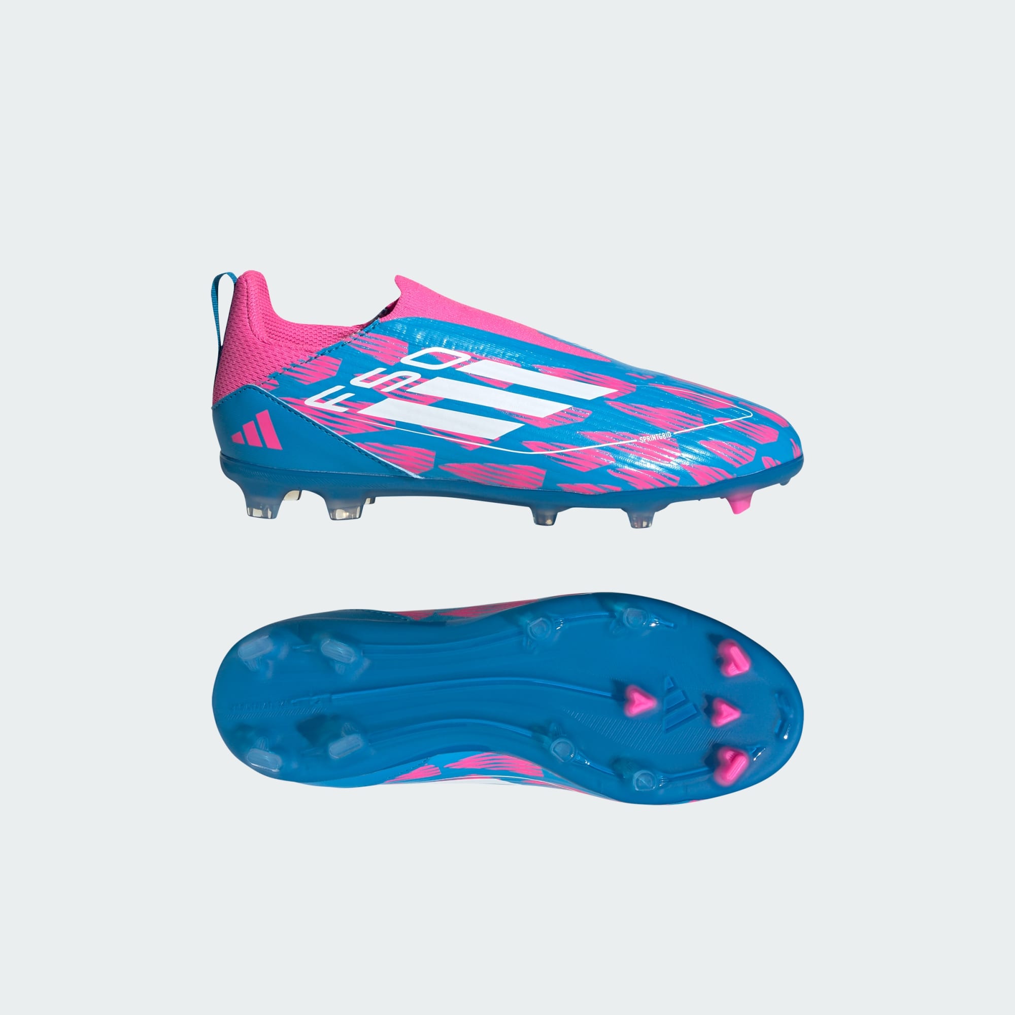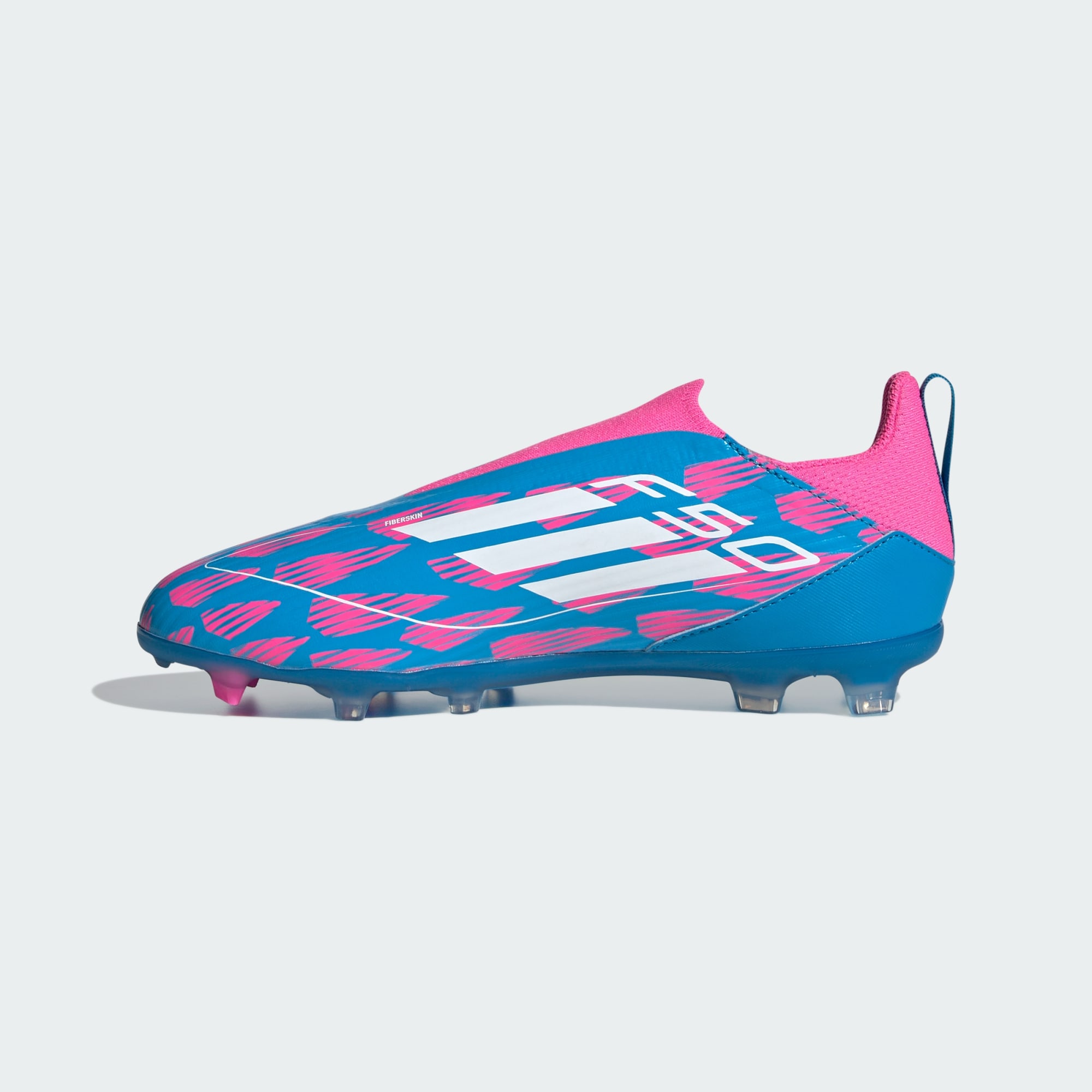 Free the fast with the adidas F50. Created to unlock the full potential of your acceleration, movement and speed. Locking you in with an adaptive laceless collar, the Fiberskin upper on these adidas League football boots for juniors shows off a Sprintgrid print on the forefoot. Down below, the Sprintplate 360 outsole is built for propulsion on multiple surfaces. Heel webbing makes these laceless boots quick to slip on too.