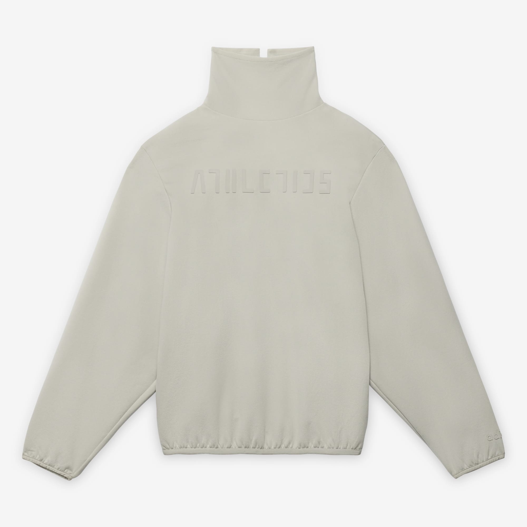The Athletics Suede Fleece Mock Neck is elevated in a heavy doubleknit fabric to provide structure and comfort expressed in a rich, brushed texture. This mock neck top is designed with voluminous proportions in the body and sleeves. Functional details include an elastic binding framing the sleeves and waist hem. Branding is illustrated in the sueded Athletics logo on the front.