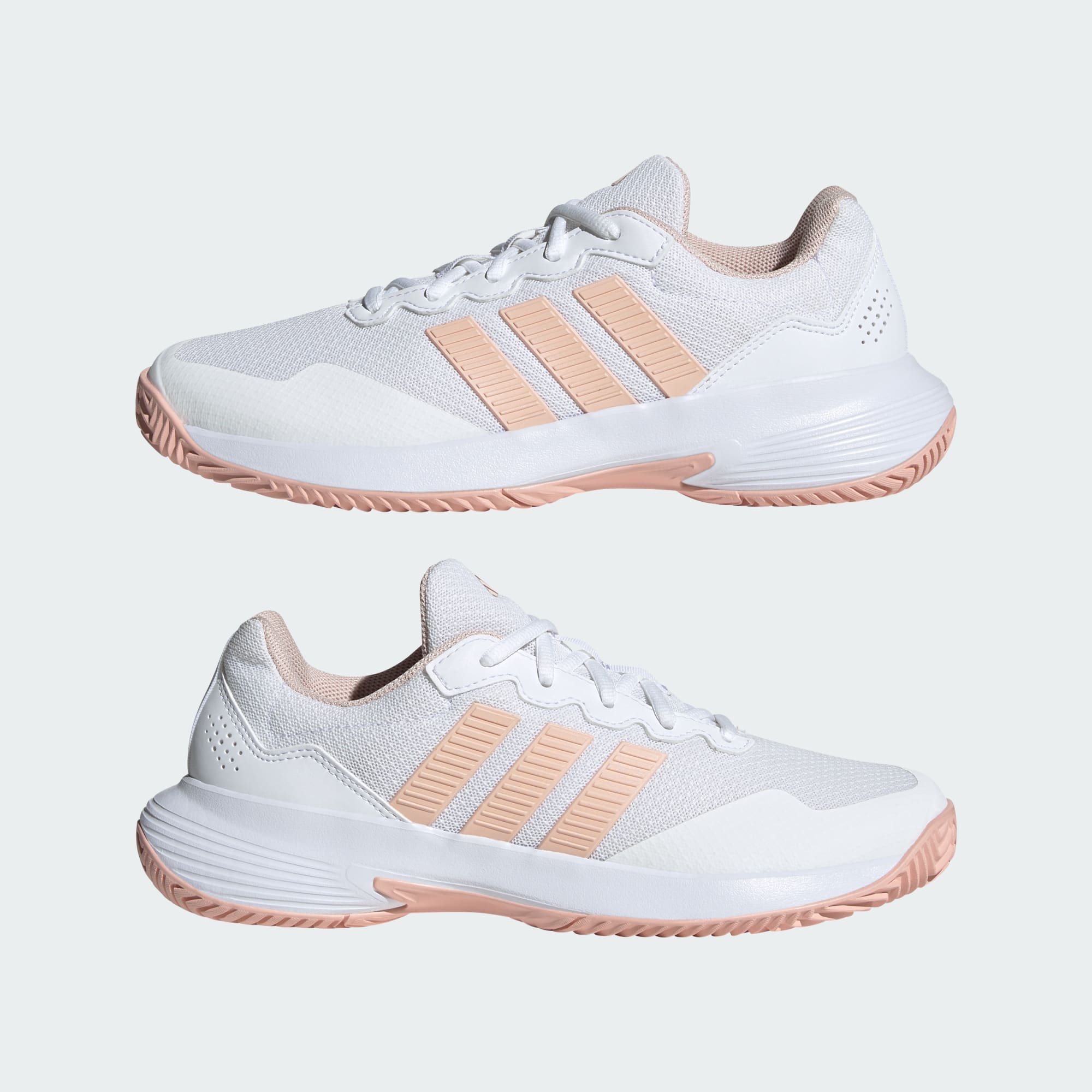 Play with confidence in the GameCourt 2 Tennis Shoes. Designed for the recreational player, these trainers offer a blend of performance and style. The textile and synthetic upper provides durability and breathability, helping to keep your feet comfortable during intense matches. The lace closure gives a secure fit, allowing you to adjust the lockdown to your preference. With a regular fit, these trainers are crafted to offer the right balance between snugness and freedom of movement. The rubber outsole is engineered for different surfaces, giving you the grip you need to make those quick pivots and sprints. adidas continues to push the boundaries of tennis footwear, so you have the tools to elevate your game.