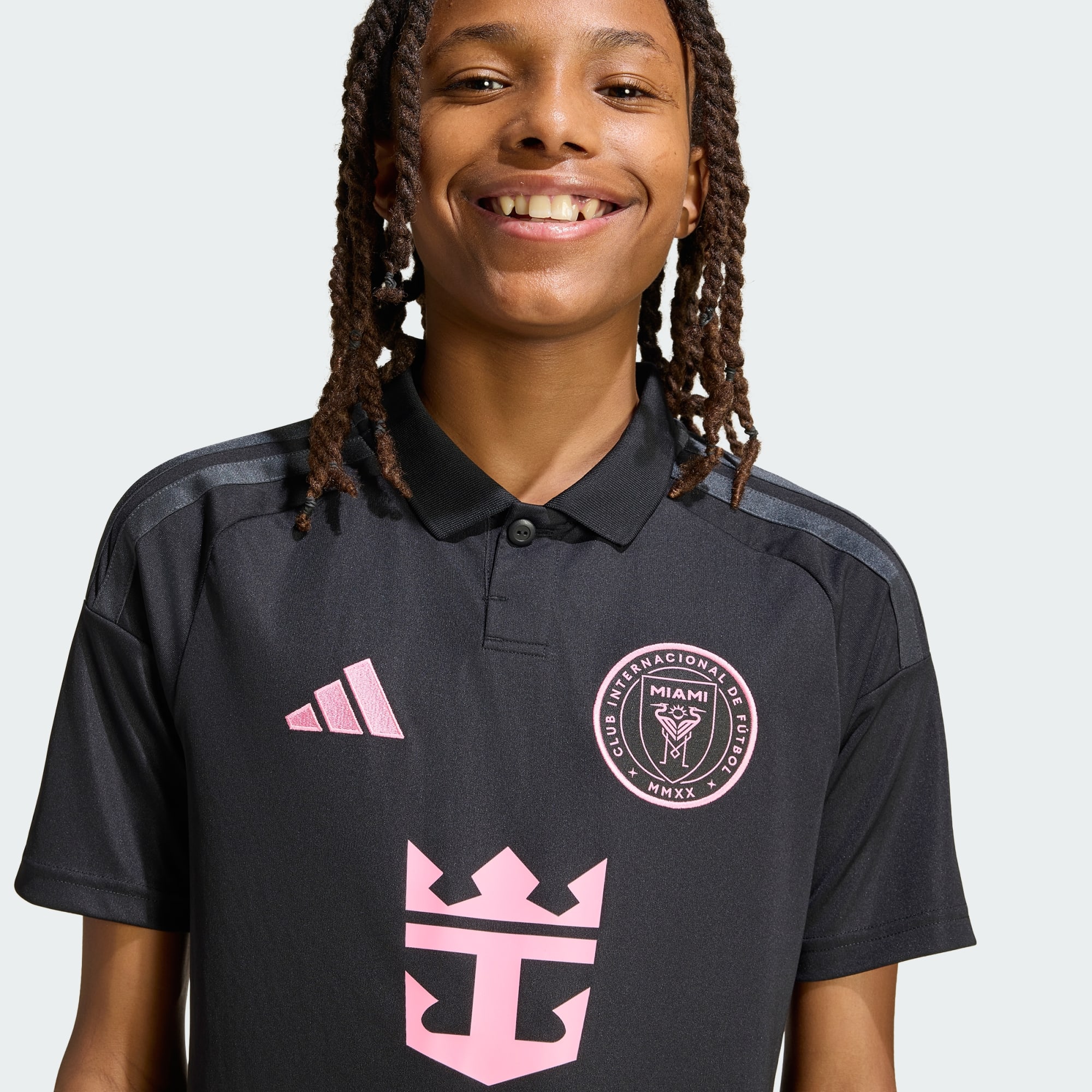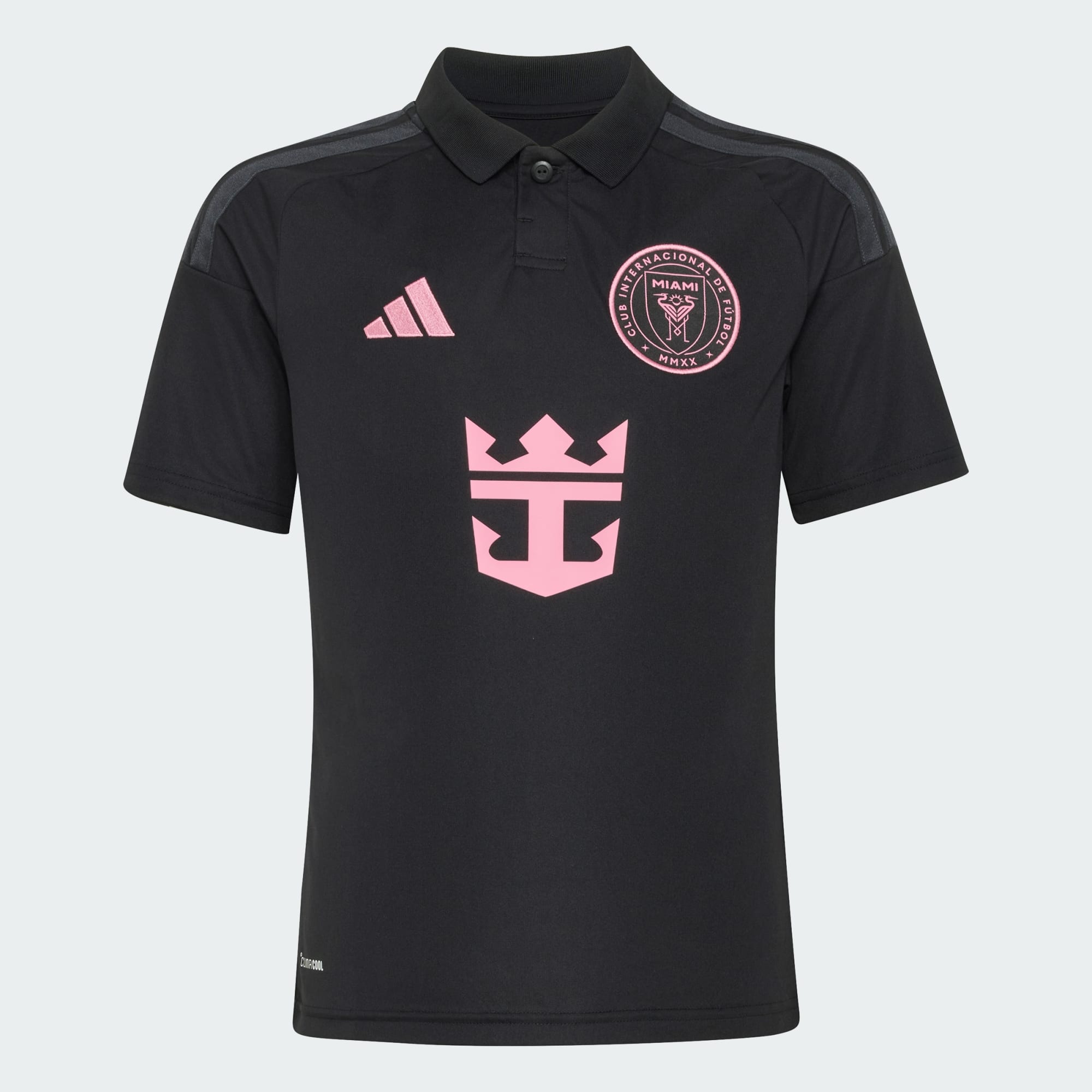 Confidence starts long before kick-off and this Inter Miami CF Away Jersey sets the tone for performance. Inspired by the club's performance on the pitch, this jersey embodies strength and sophistication. Crafted with Climacool technology, this jersey helps your little one stay cool and dry during intense matches or playtime. To complement is adidas branding with an embroidered logo, the iconic 3-Stripes and the club crest sewn on as a badge. Whether at school, sports practice or playing with friends, this jersey fits easily into your child's active lifestyle. Because every young fan deserves to play with confidence and style.