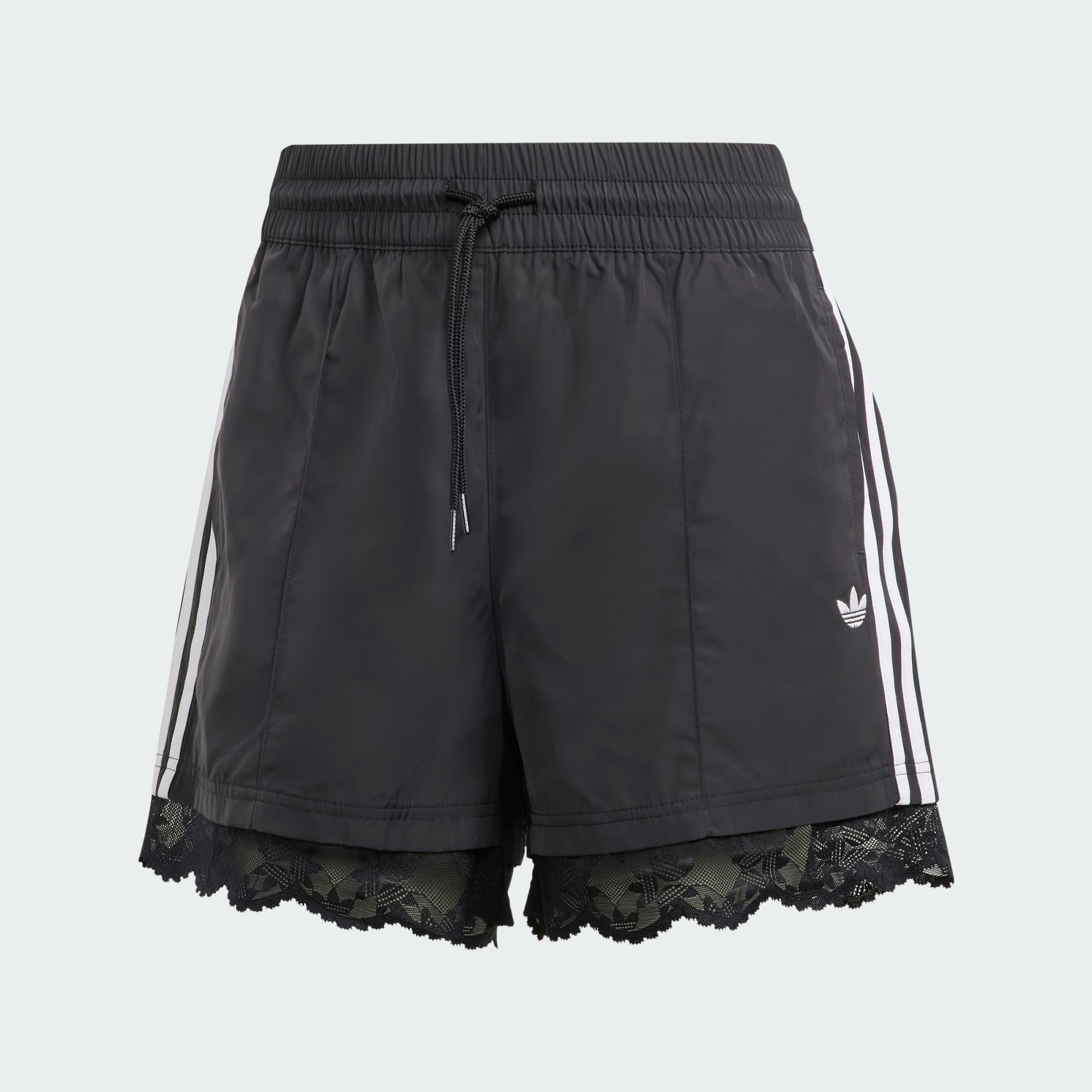 Classic athletic style gets an unexpected twist in these adidas shorts. Trimmed with Trefoil-inspired lace, they've got an unmistakable luxe vibe that somehow manages to ace casual, too. A set of 3-Stripes on the sides shows off sporty roots, and the plain weave material is lightweight and comfortable. Front welt pockets offer practicality without distracting from the design.