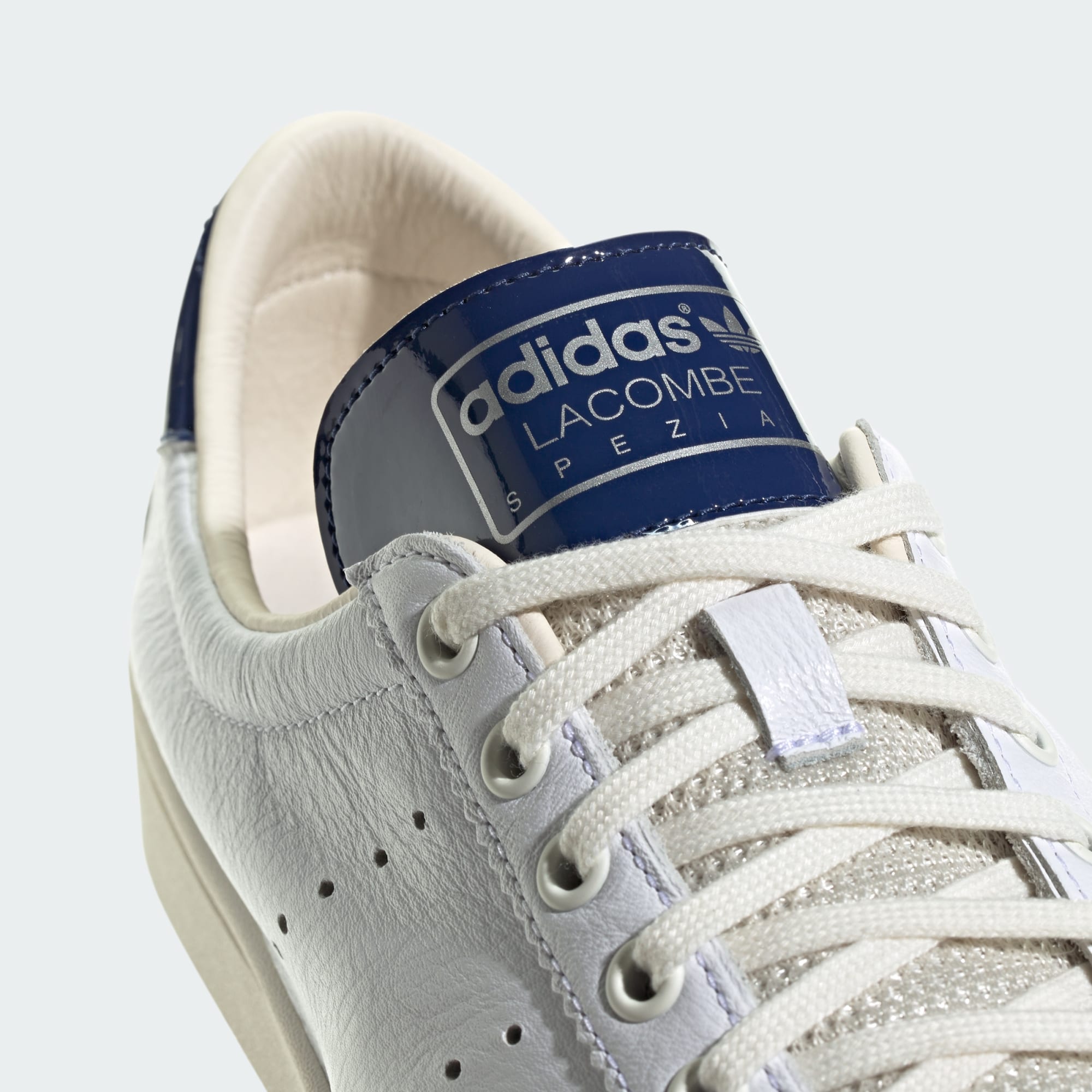 Take a stroll through the archives in these adidas shoes. Taking inspiration from two vintage tennis styles, the Lacombe was designed for casual comfort. This Spezial version is retooled for today with a smooth leather upper, rubber outsole and leather lining. Patent leather details the heel and top of the mesh tongue.