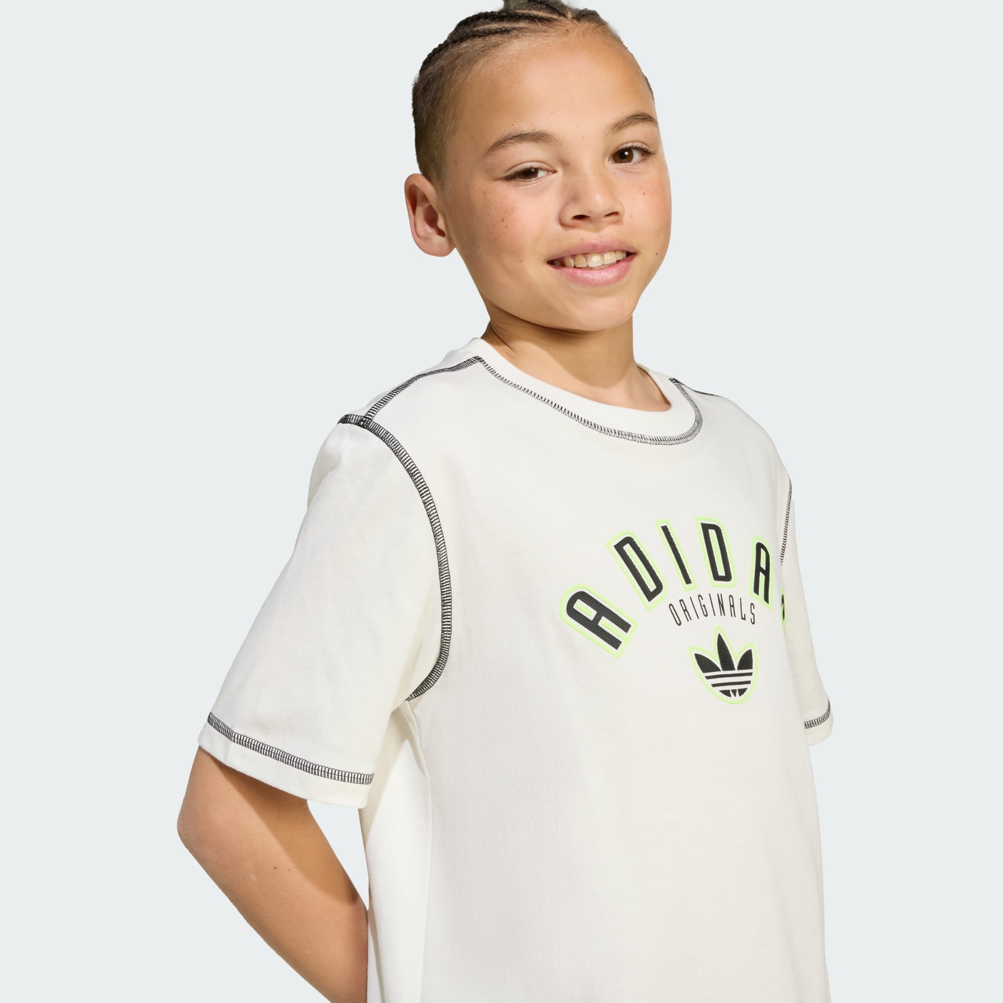 Relaxed and full of attitude, this juniors' adidas tee has a loose, laid-back vibe. The adidas Trefoil logo is reimagined with contrast stitching and high-density outlines for a look that's both sporty and casual. It's made of soft all-cotton fabric.