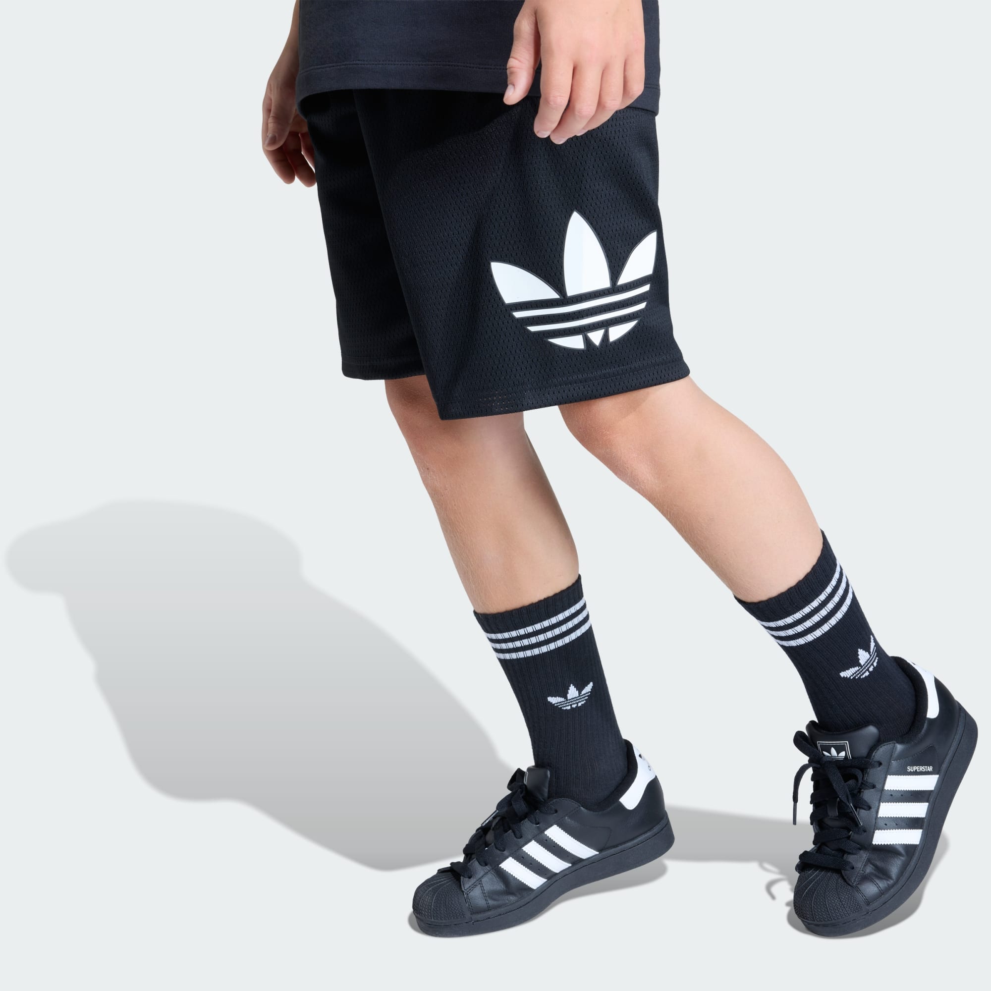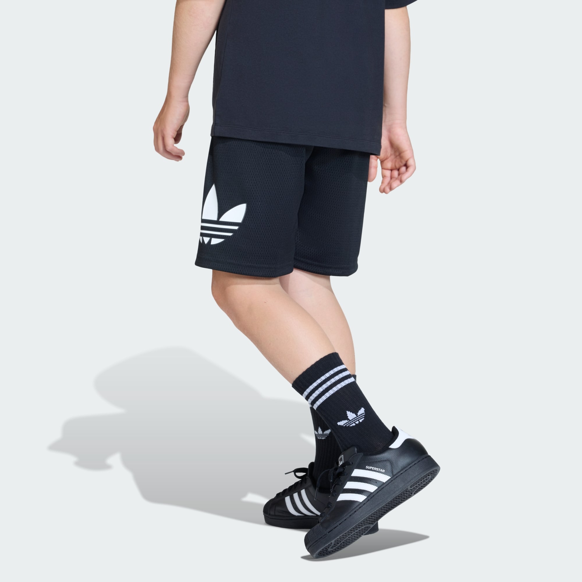 Give your child all-in-one comfort and style with the adidas Originals Loose Mesh Shorts. Part of the iconic ADICOLOR collection, these shorts bring together classic adidas heritage with a fresh, modern design.They offer a loose fit that provides comfort during playtime, school activities, or sports practise. Crafted with a mesh construction, these shorts offer breathability and ease of movement, making them ideal for active days. The drawstring closure adds a touch of practicality, allowing for easy adjustments and a secure fit. Whether it's a casual day out or a fun-filled afternoon with friends, these shorts are designed to keep up with every adventure. They feature a printed Big Trefoil branding on the leg, a nod to the brand's rich history and commitment to quality. With these shorts, let your child explore, play, and grow with confidence, knowing they're wearing a piece of adidas heritage.