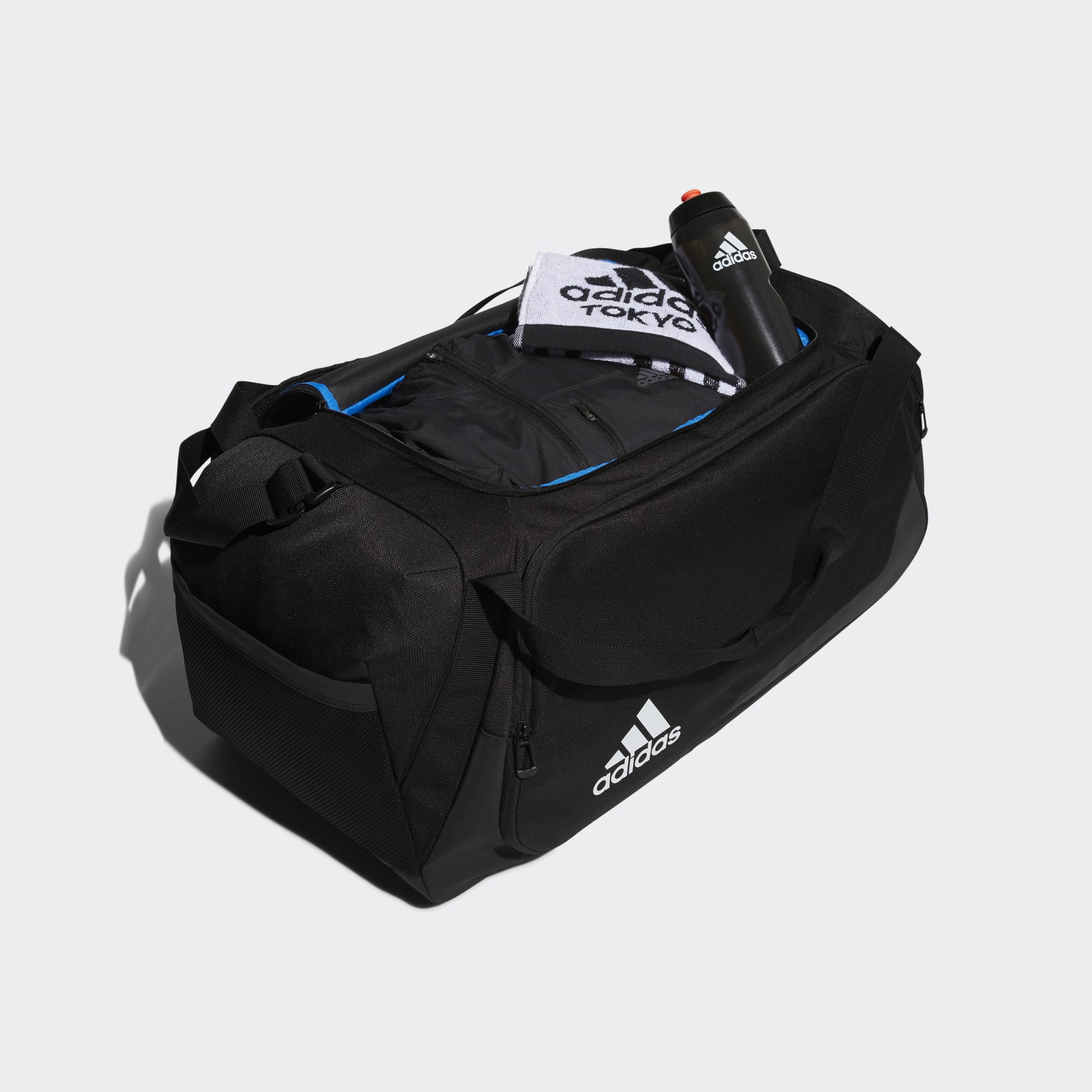 Even the most disorganised packers can't go wrong with this adidas duffel bag. Made for practices, games and team travel, it has a large opening so you can neatly stow clothes, shoes and equipment inside. A shoe compartment and laundry pocket keep smelly clothes and dirty shoes separate. Made with a series of recycled materials, and at least 60% recycled content, this product represents just one of our solutions to help end plastic waste.