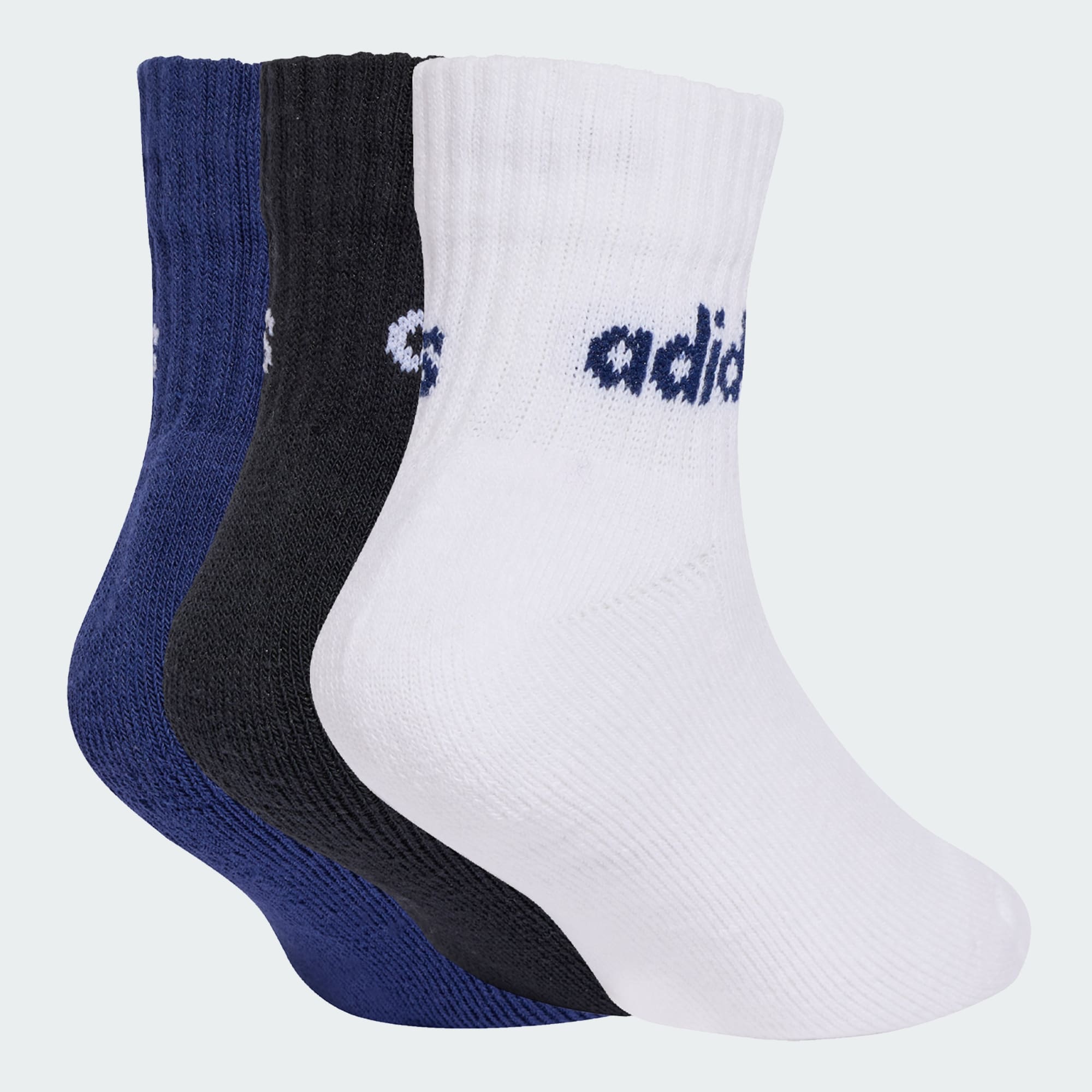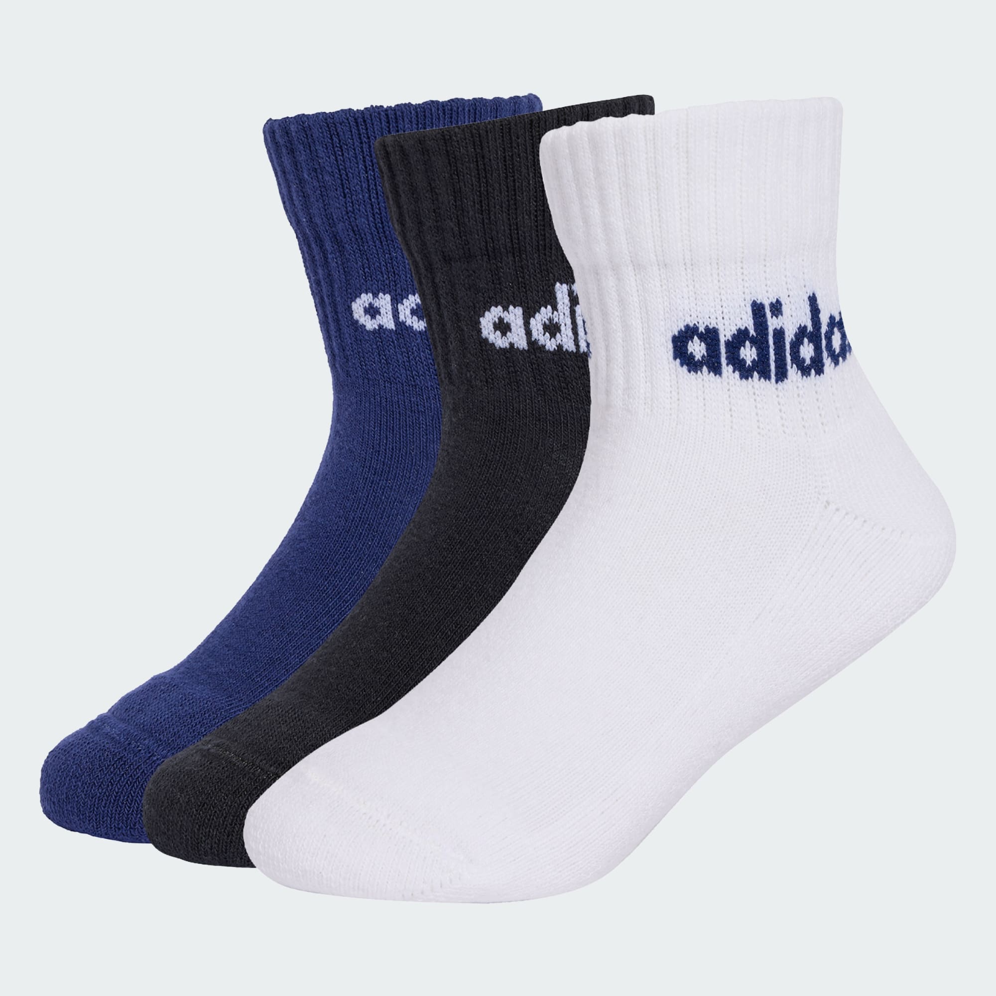 These adidas socks make it easy for kids to feel good from the ground up. Made from soft cotton-blend yarn, the ankle-length socks are comfortable for school, play or lounging around the house. The three-pack includes three different colours, so there's always a pair to match their outfit. By choosing recycled, we are able to reuse materials that have already been created, which helps to reduce waste. Renewable materials choices will help us to remove our reliance on finite resources. Our products made with a blend of recycled and renewable materials feature at least 50% total of these materials.