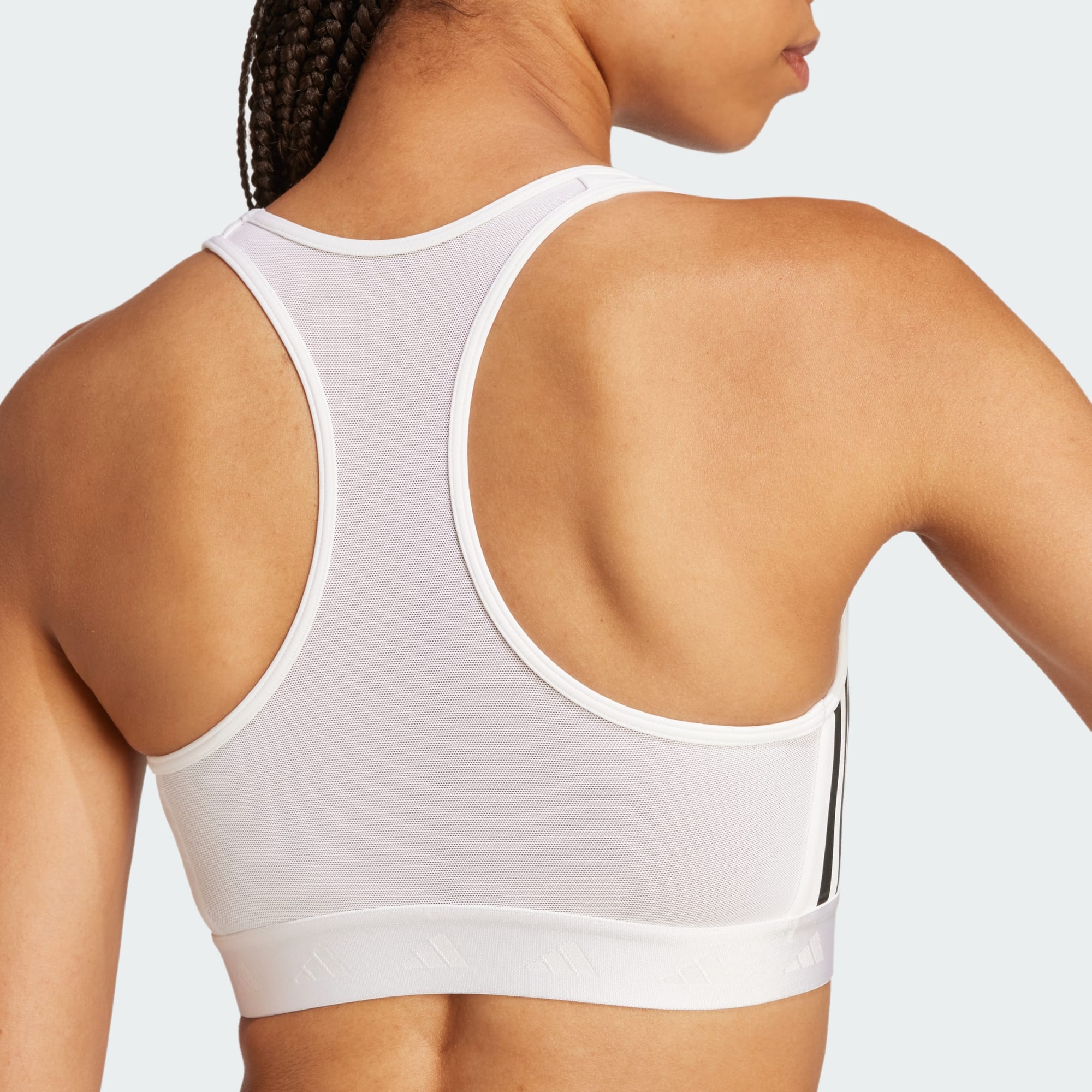 This medium-support adidas bra is designed for versatile training. Featuring breathable mesh panels and AEROREADY to keep you cool and dry, you'll stay focused on your fitness goals and not on your clothes. A mesh racerback means maximum mobility no matter how you move. This product is made with at least 70% recycled materials. By reusing materials that have already been created, we help to reduce waste and our reliance on finite resources and reduce the footprint of the products we make.