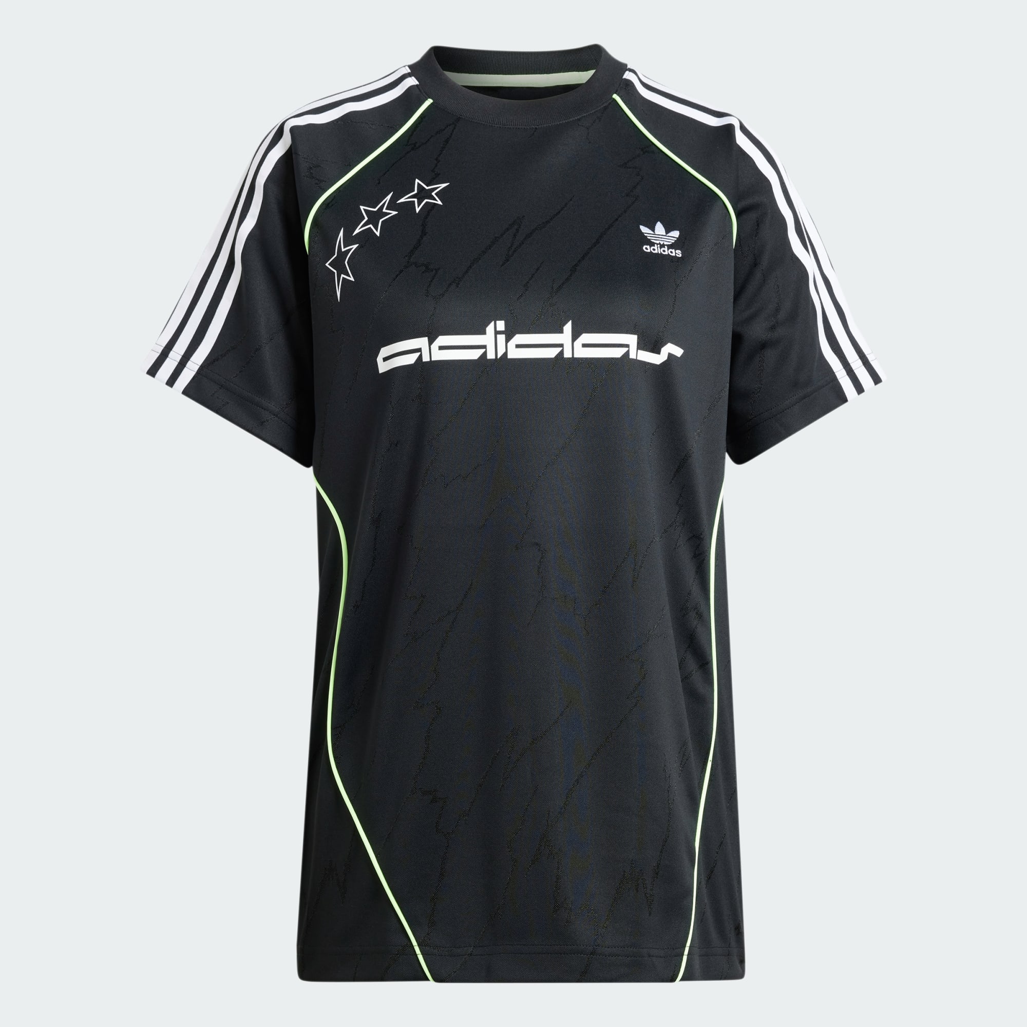 Take your style game to new heights in this adidas jersey top. Inspired by looks from football, its thoughtful details include lightning-bolt jacquard woven into the fabric, contrast piping and raglan sleeves — all of which play around with sport references in a fresh way. Slip into the loose shape for a casual vibe when your day is all about staying chill. This product is made with at least 70% recycled materials. By reusing materials that have already been created, we help to reduce waste and our reliance on finite resources and reduce the footprint of the products we make.
