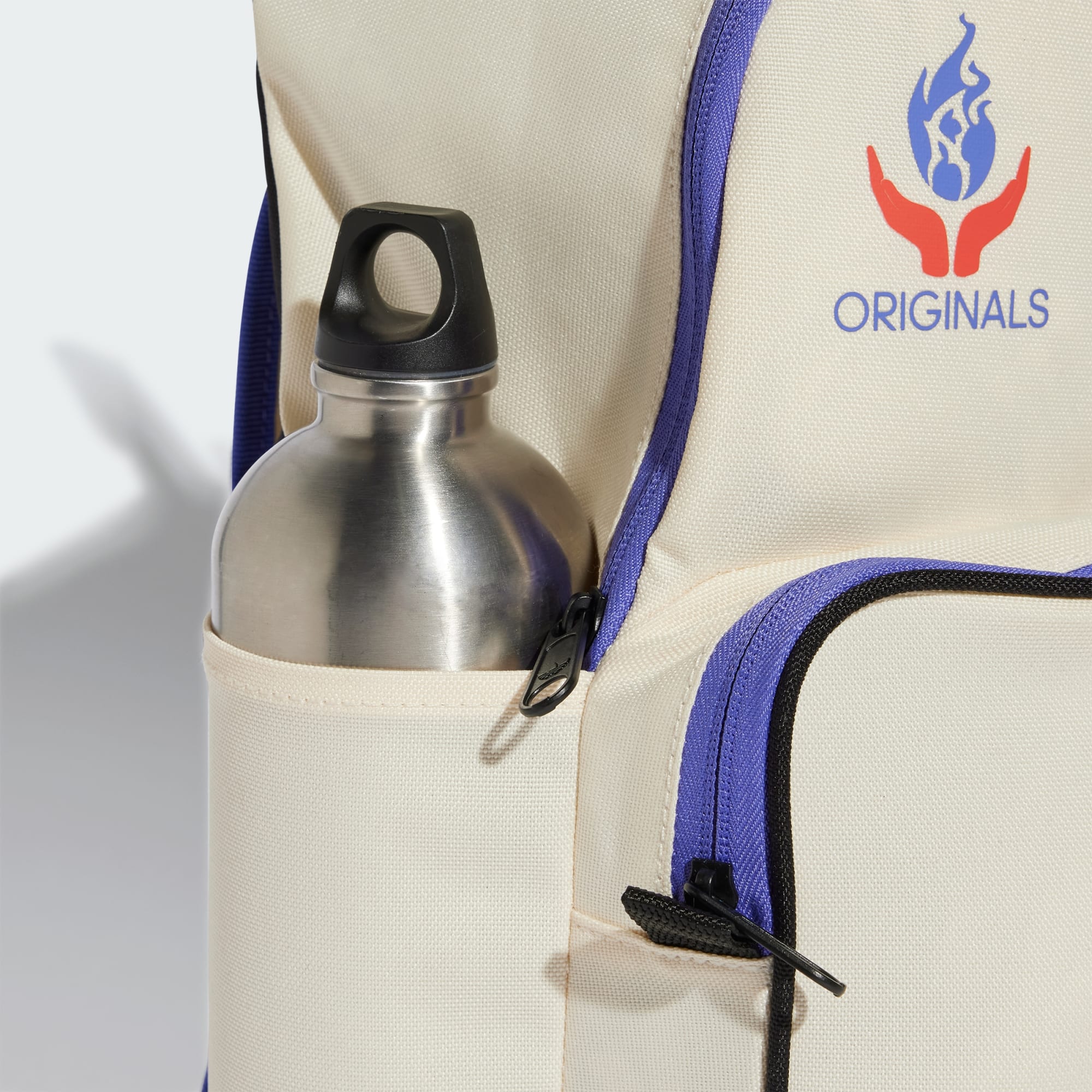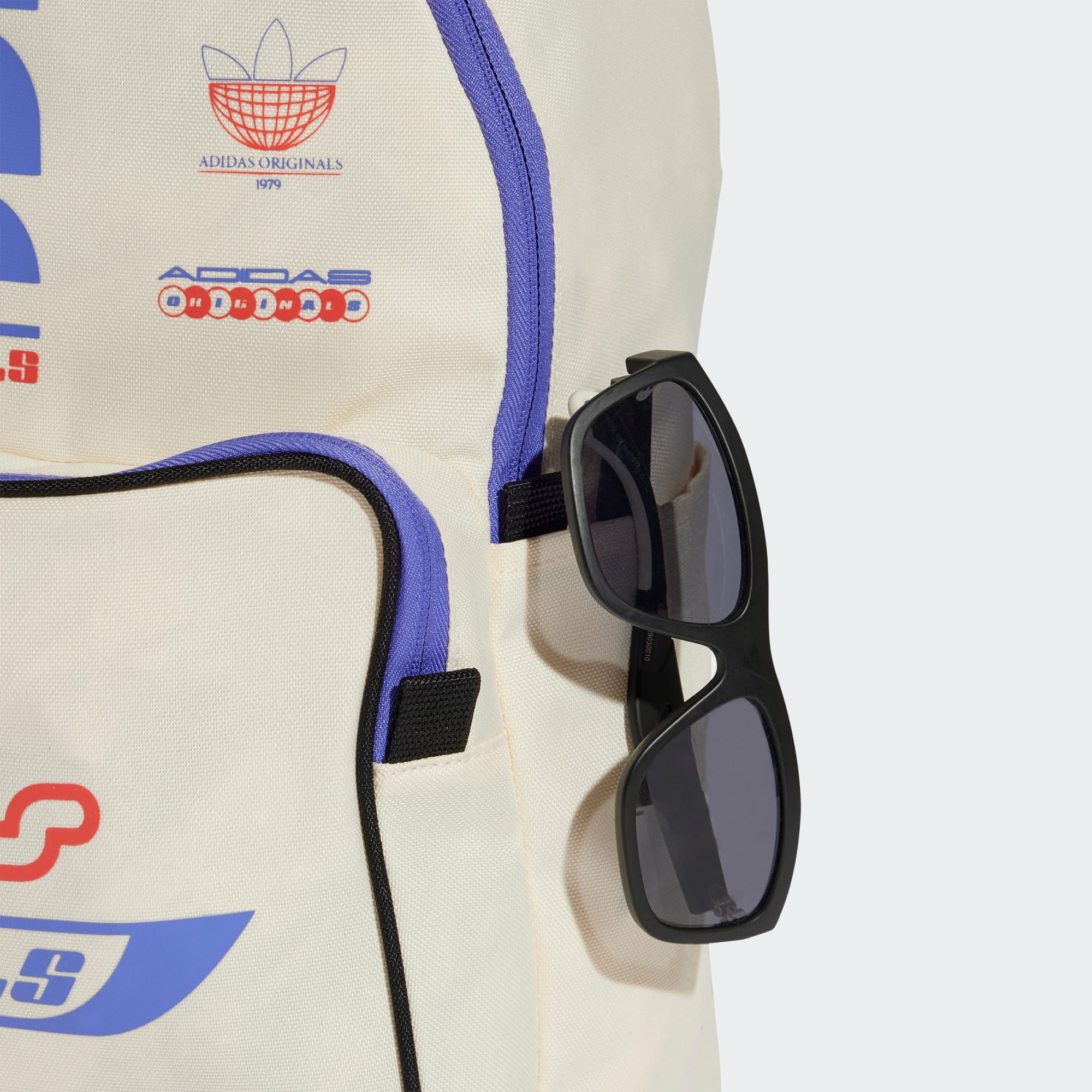 A spacious backpack covered in adidas logos and graphics.