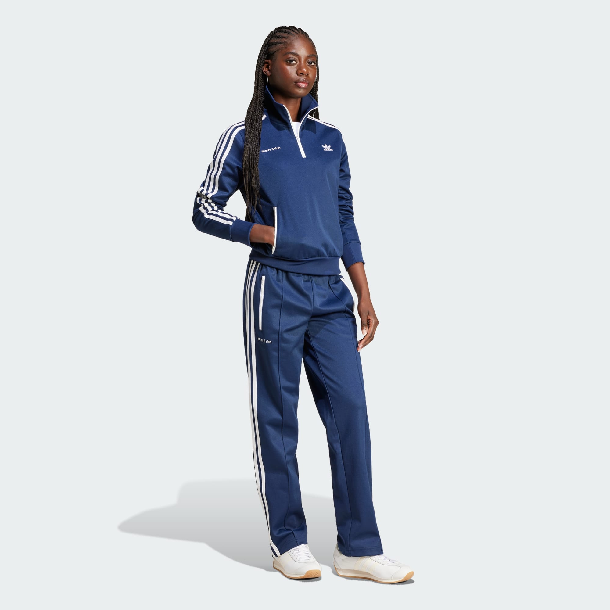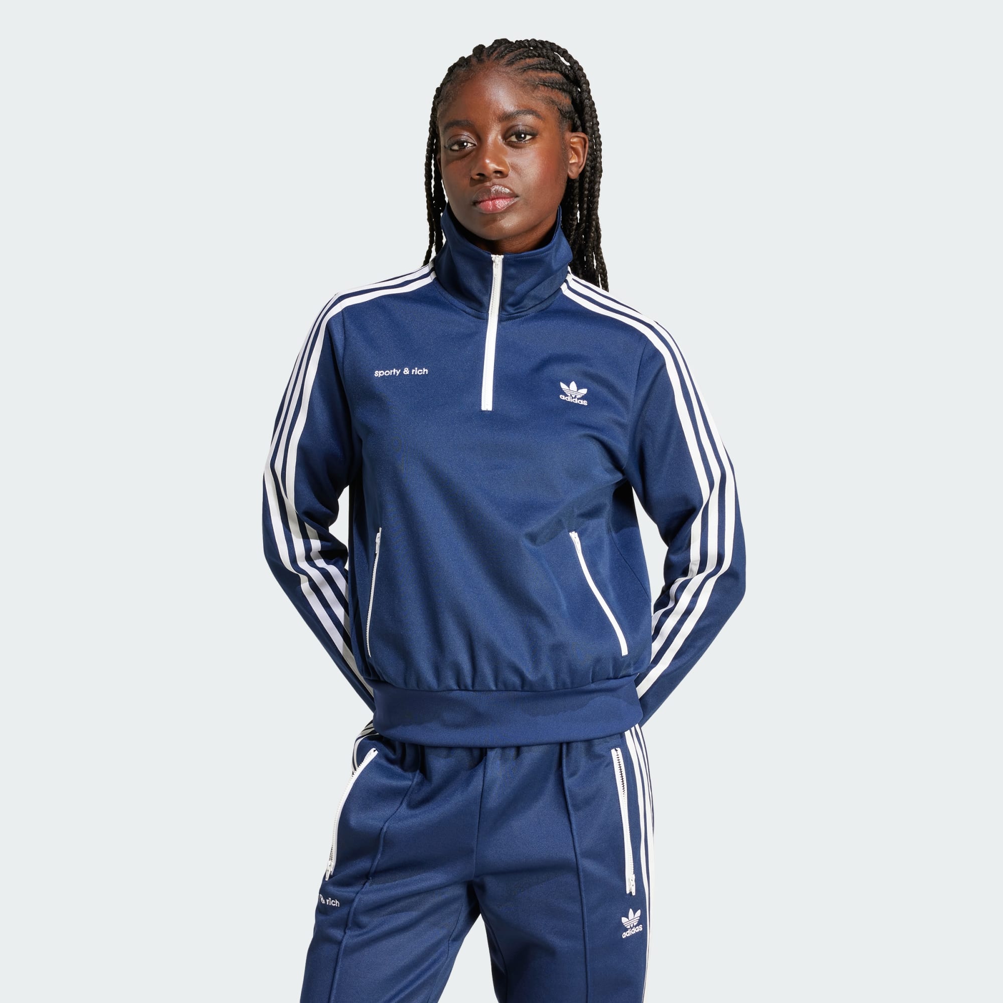 Good health starts here. The collaboration between adidas Originals and LA-based lifestyle brand Sporty & Rich celebrates originality, diversity and inclusivity while also aiming to empower an open dialogue on self-care, self-love and mental health. This track jacket is made from a soft cotton blend and finished with ribbed details for added comfort. Logos on the chest sign off the look.