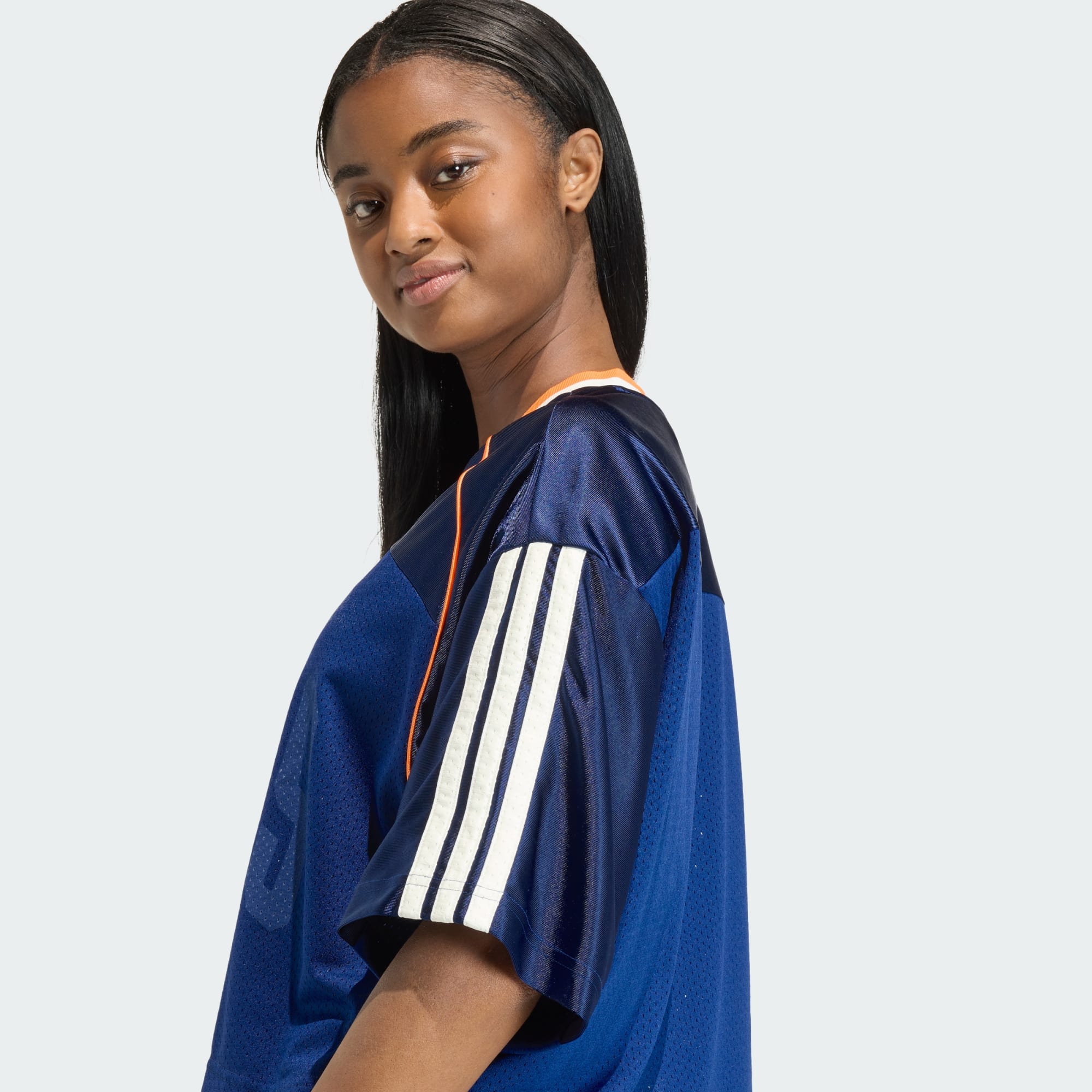 The Stadium Mesh T-Shirt is your go-to for a laid-back yet sporty vibe. Inspired by the vibrant US sports scene, this t-shirt celebrates the unity and passion of fans across football, basketball, and baseball. With its loose fit and slightly cropped design, it offers a relaxed silhouette that works well for casual outings. The V-neck and ribbed collar add a touch of classic style, while the tricot panel on the shoulder enhances the sporty appeal. Crafted from sport mesh, the fabric offers breathability and comfort, making it a great choice for everyday wear. The iconic 3-Stripes and adidas Sportswear print on the front chest make a bold statement, showcasing your love for the brand. Whether you're cheering from the stands or hanging out with friends, this t-shirt is all about embracing the fan experience with style and comfort. With adidas, it’s about more than just clothing. It’s a way of life.