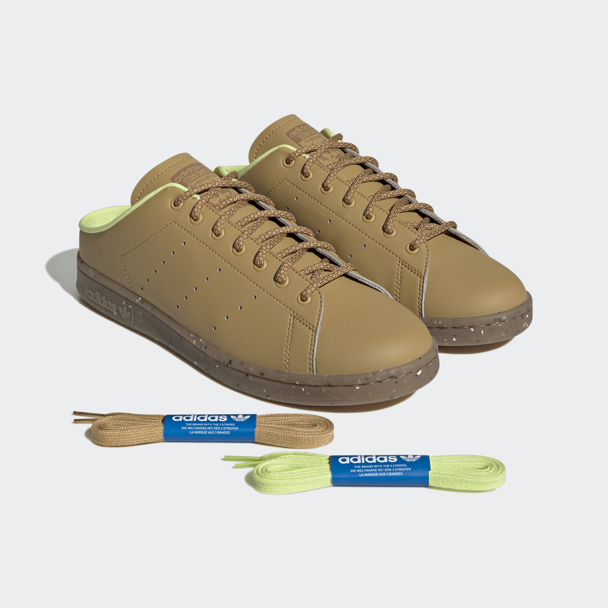 Plant a seed. Grow a community. That's the idea behind guerrilla gardening, which brings nature and nourishment to cities everywhere. The adidas Stan Smith mules join the movement with a speckled rubber sole that mimics the texture of soil, natural colours and a "plant and grow" logo on the sockliner. Three sets of laces give you options to play with colour. This product is made with animal free ingredients to offer you a vegan option.