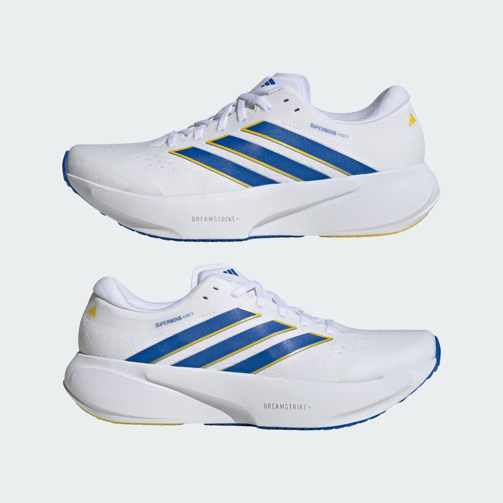 The Supernova Rise 3 Running Shoes are designed for those who demand comfort and performance. Whether you’re training for a race or embracing a new running routine, these shoes are crafted to support each stride with classic adidas style and innovation. Underfoot, the full-length Dreamstrike+ midsole offers a blend of cushioning and stability, for soft, stable precision. The Primeweave upper is crafted to provide lightweight comfort and breathability, to help you focus on your running goals without distraction. The Lighttraxion outsole offers grip on various surfaces, for confident, dynamic movements, while the lace closure provides adjustability for a snug and secure feel. The lateral strike zone in the heel is specifically designed to complement the foot’s natural landing pattern as you run. Lace up and make these shoes your go-to choice for performance and style, and embrace the thrill of running with adidas.