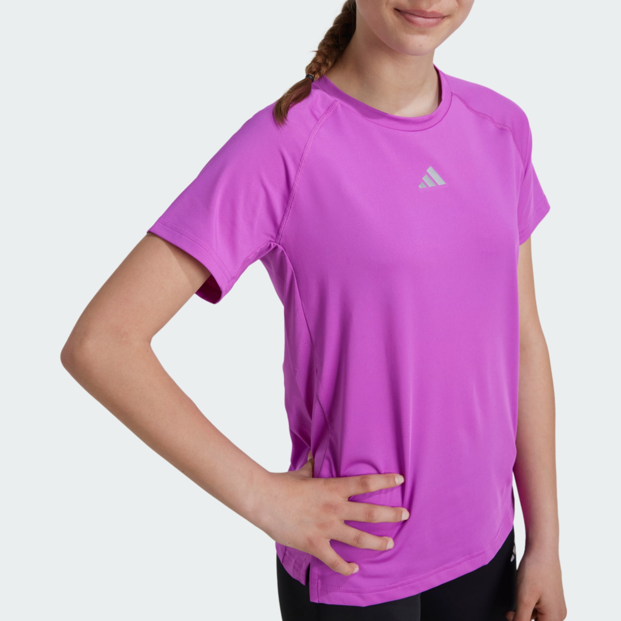 Take your training up a notch in this breathable adidas t-shirt for juniors. Moisture-managing AEROREADY keeps you feeling fresh while the bold adidas Badge of Sport logo makes a statement. It fits slim and shaped to help you move free and easy. This product is made with at least 70% recycled materials. By reusing materials that have already been created, we help to reduce waste and our reliance on finite resources and reduce the footprint of the products we make.