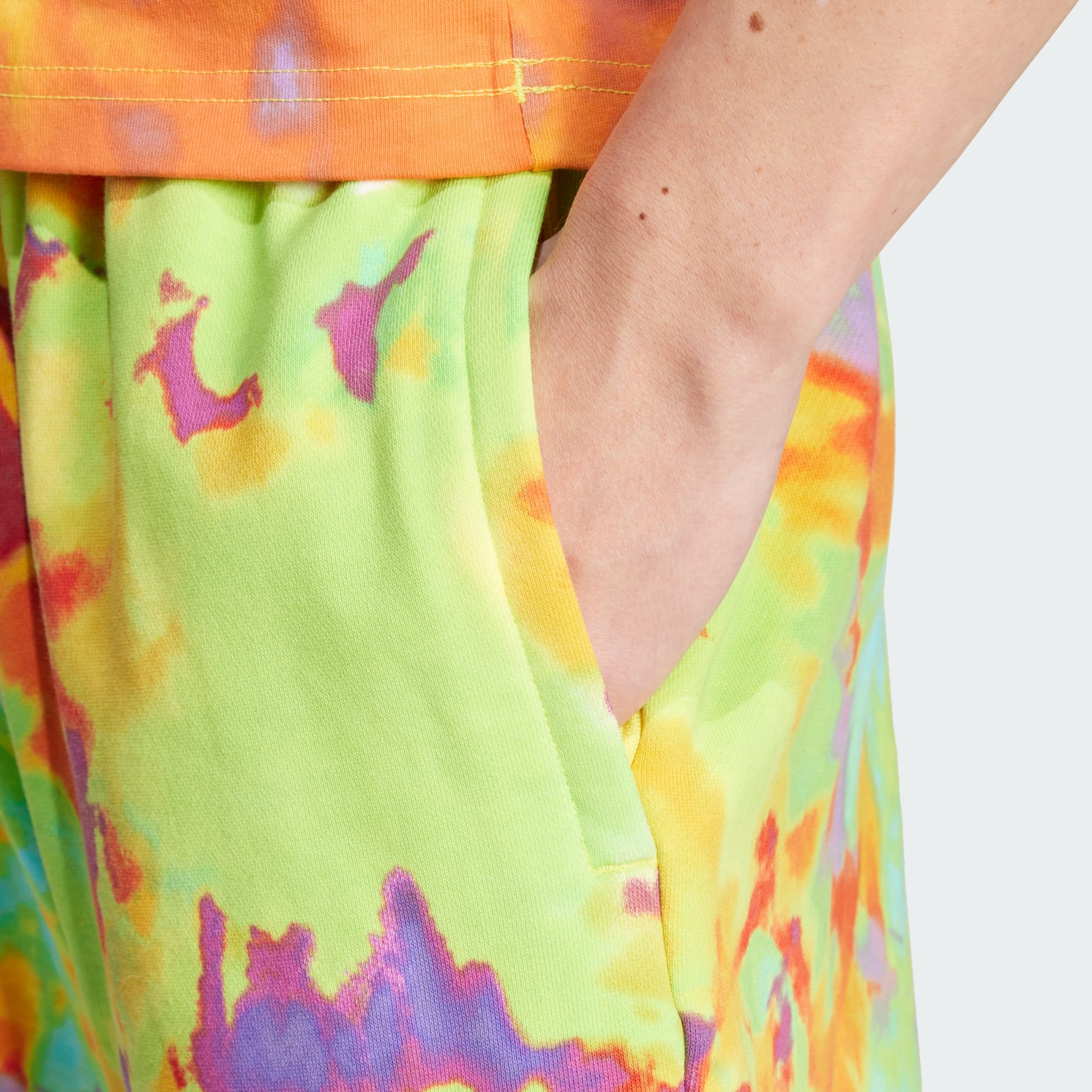 These tie-dyed adidas shorts are made for every moment. Whether you're kicking back at home or heading out to catch your favourite band, soft French terry fabric keeps you cosy and the vibrant design keeps you energised. When your plans lead you somewhere spontaneous, these shorts are ready to go along for the ride.