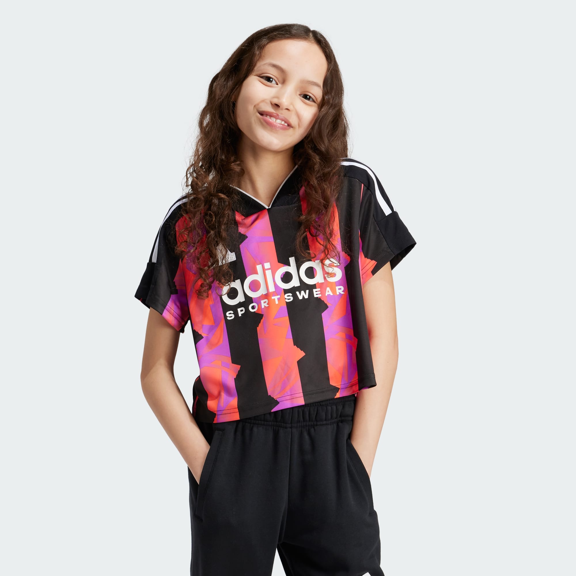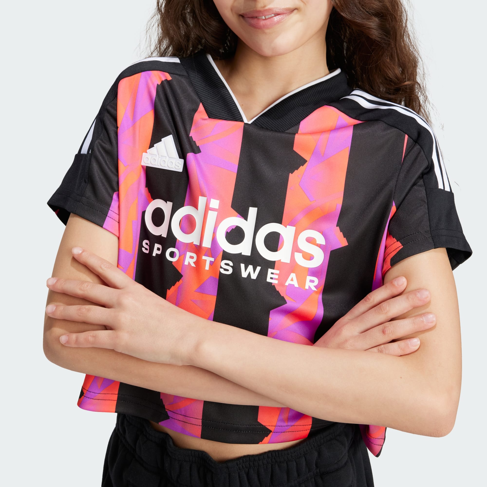 Music festivals or football, embrace the joy of the season in this juniors' crop tee. Cut for comfort in soft interlock fabric, it flashes bold, pitch-inspired stripes for a dash of vibrant energy. adidas details like the logo badge and signature 3-Stripes keep the look rooted in sport. Pair it with shorts or a skort, and this top is ready to take on warm-weather adventures. This product is made with 100% recycled materials. By reusing materials that have already been created, we help to reduce waste and our reliance on finite resources and reduce the footprint of the products we make.