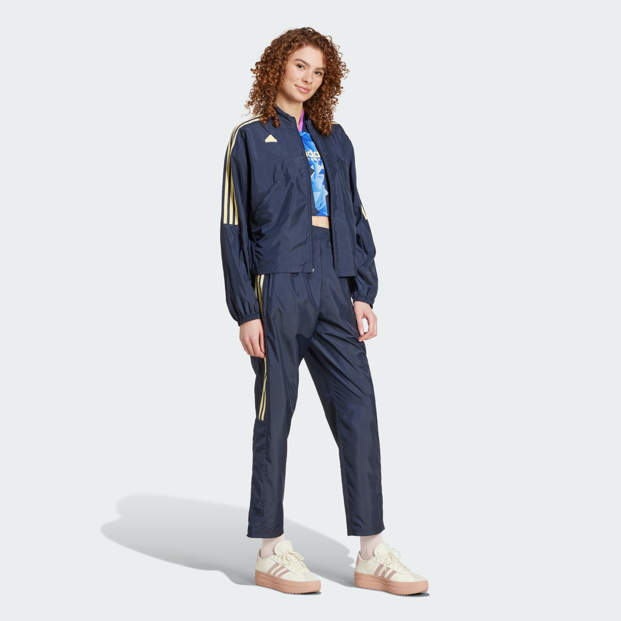 Get into the spirit of the season in these adidas track pants. With casual football-inspired style and lightweight woven fabric, they're made to keep you comfortable and looking fresh. Zip pockets make it easy to store essential items so you can head out and stay hands-free as you watch the game or meet up with friends. Paired with your favourite kicks, these track pants complete a laid-back look perfect for sunny days and summer nights.