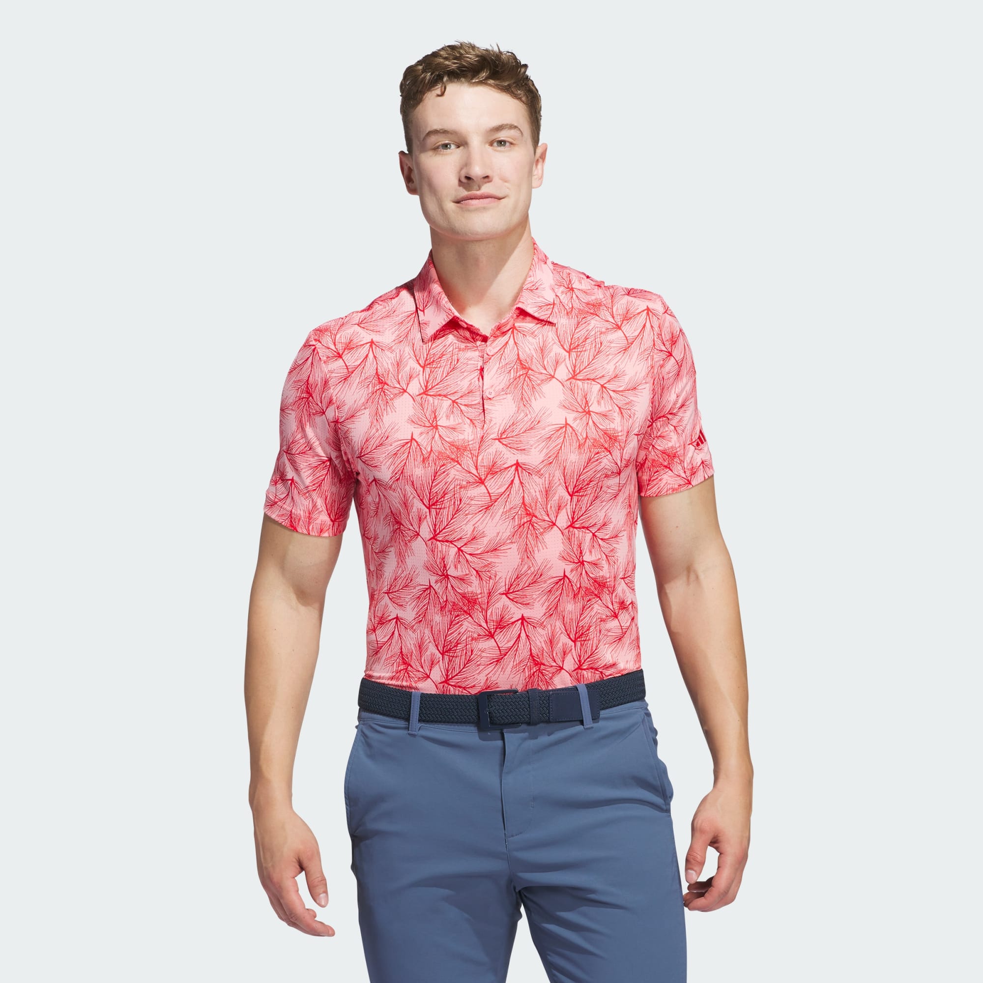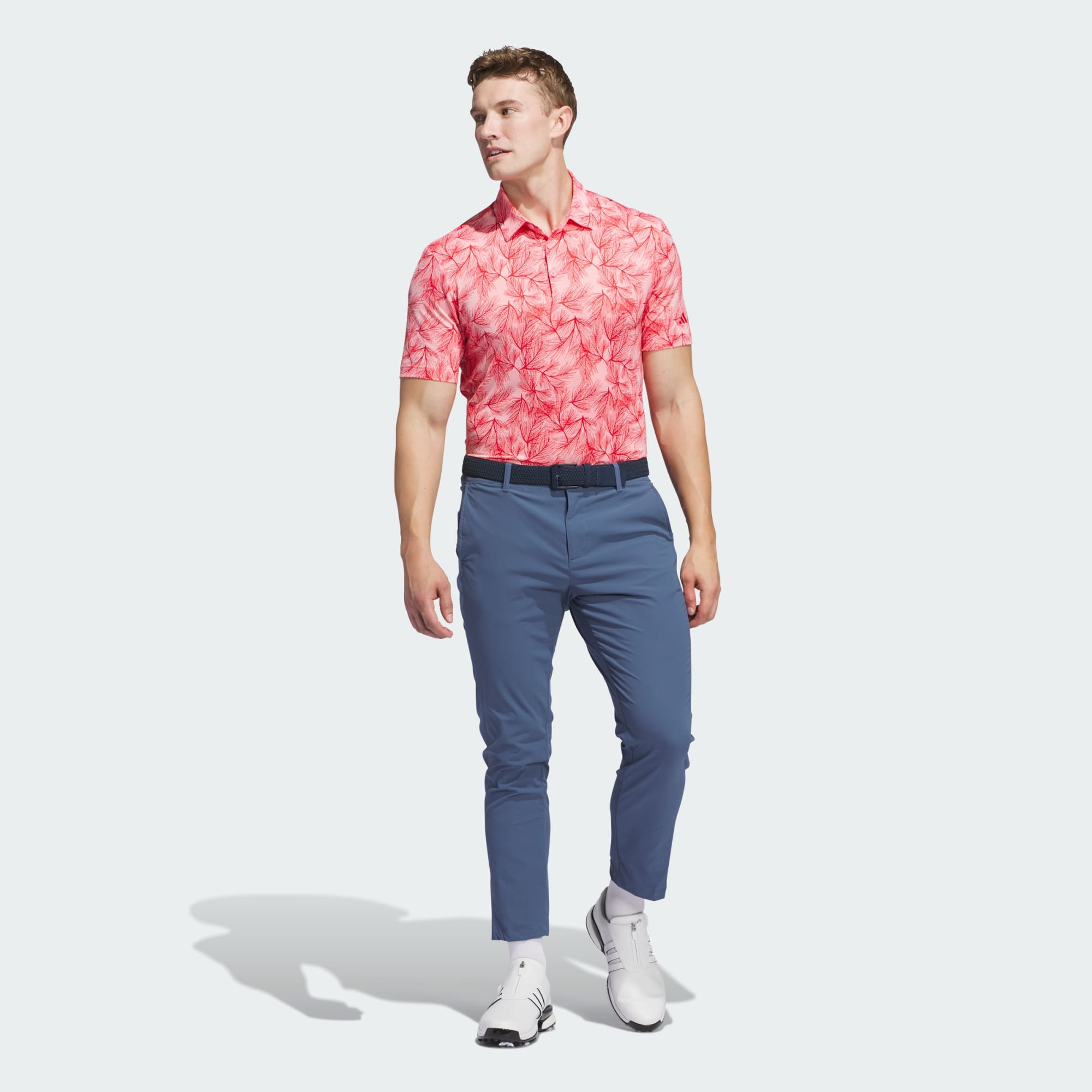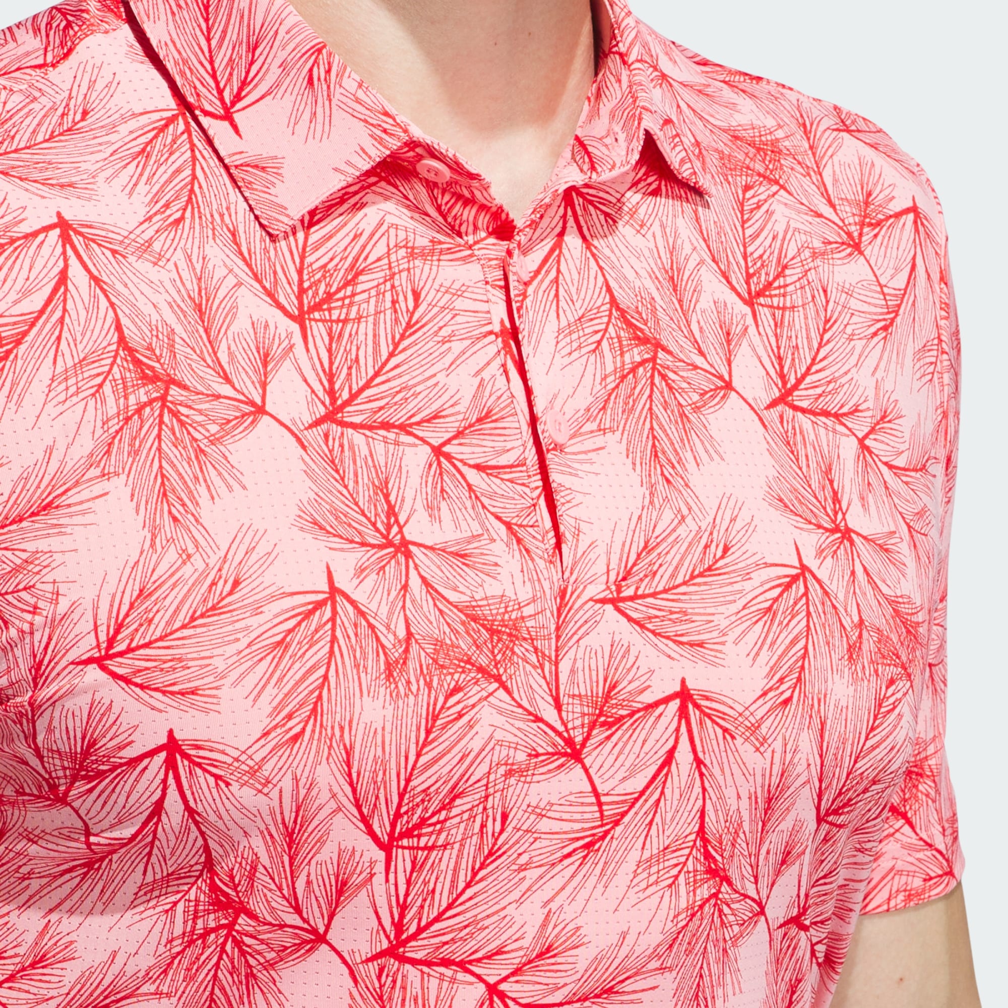 Liven up social rounds and competitive play in this allover-print polo shirt from adidas. Breathable mesh and built-in stretch deliver year-round performance to ensure you give every game your all. The distinctive design wears well on the course and at the clubhouse after your round.
