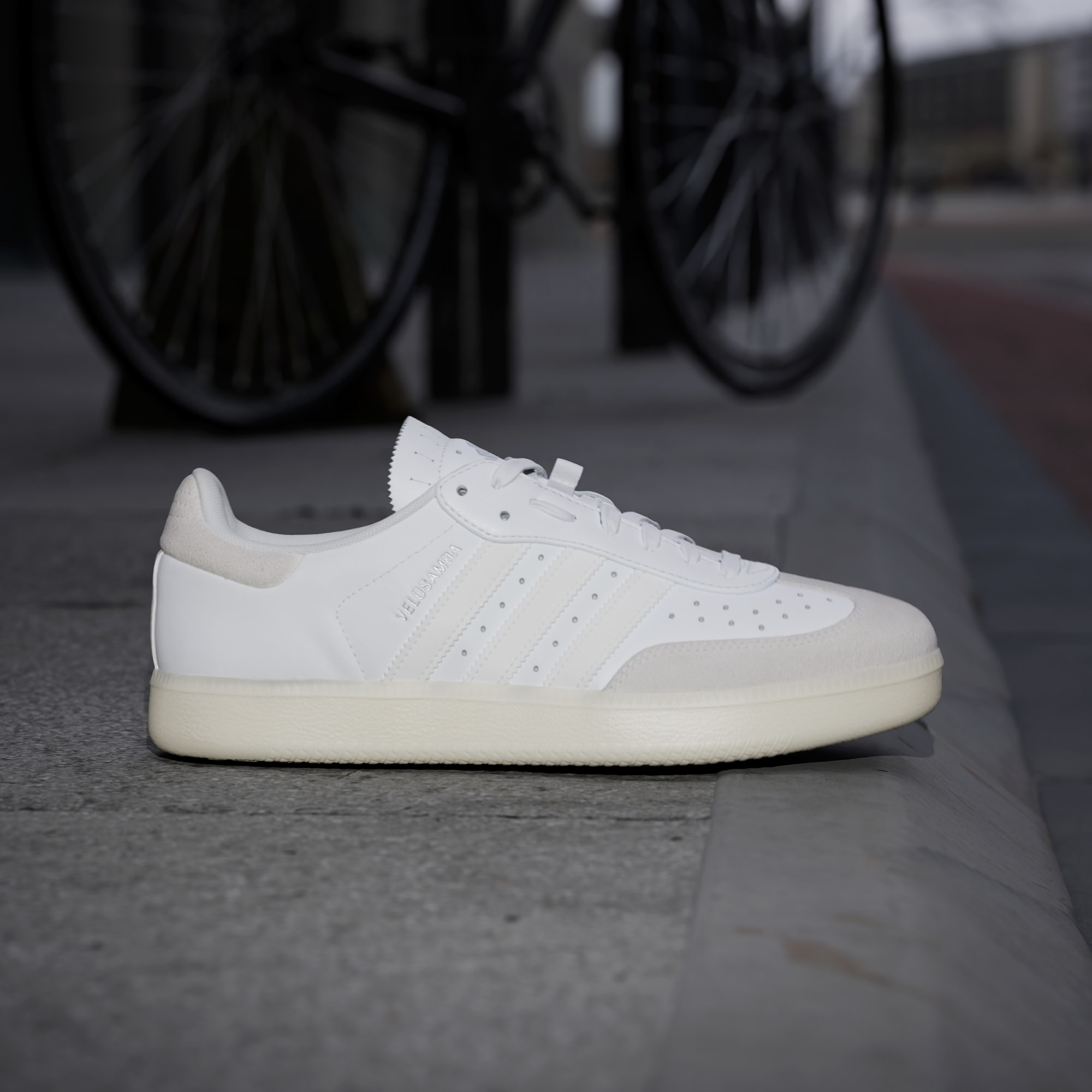 Roll from the daily commute to work day and social hour with the iconic style of the adidas Samba on your feet. Designed with casual rides and commuting in mind, the Velosamba leather cycling shoes are your incognito bike shoe. They're two-bolt cleat compatible, with a two-thirds length midsole plate that stiffens the forefoot for efficient pedalling while maintaining a comfortable, natural flex for walking. Reflective 3-Stripes details add low-light visibility. A lace bungee secures loose lace ends.
