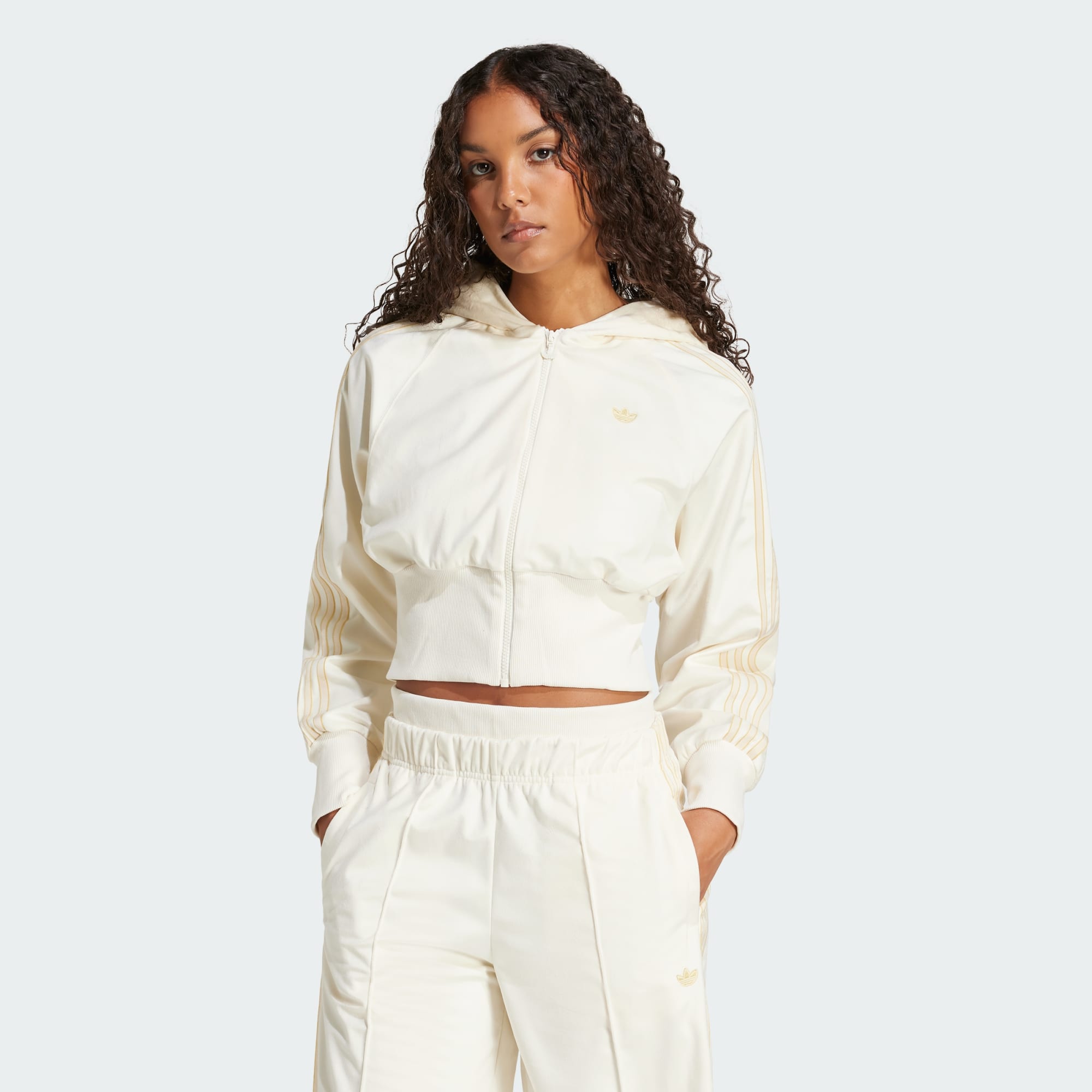Channel '90s nostalgia in this adidas track top. Inspired by the female hip hop scene of the era, it combines a velour build with an oversized hood and a nipped-in waist. Ribbing adds shape, and a small Trefoil on the front shows off your adidas pride. Whether you're layering it over a tee or zipping it up over a turtleneck, this jacket brings the attitude.