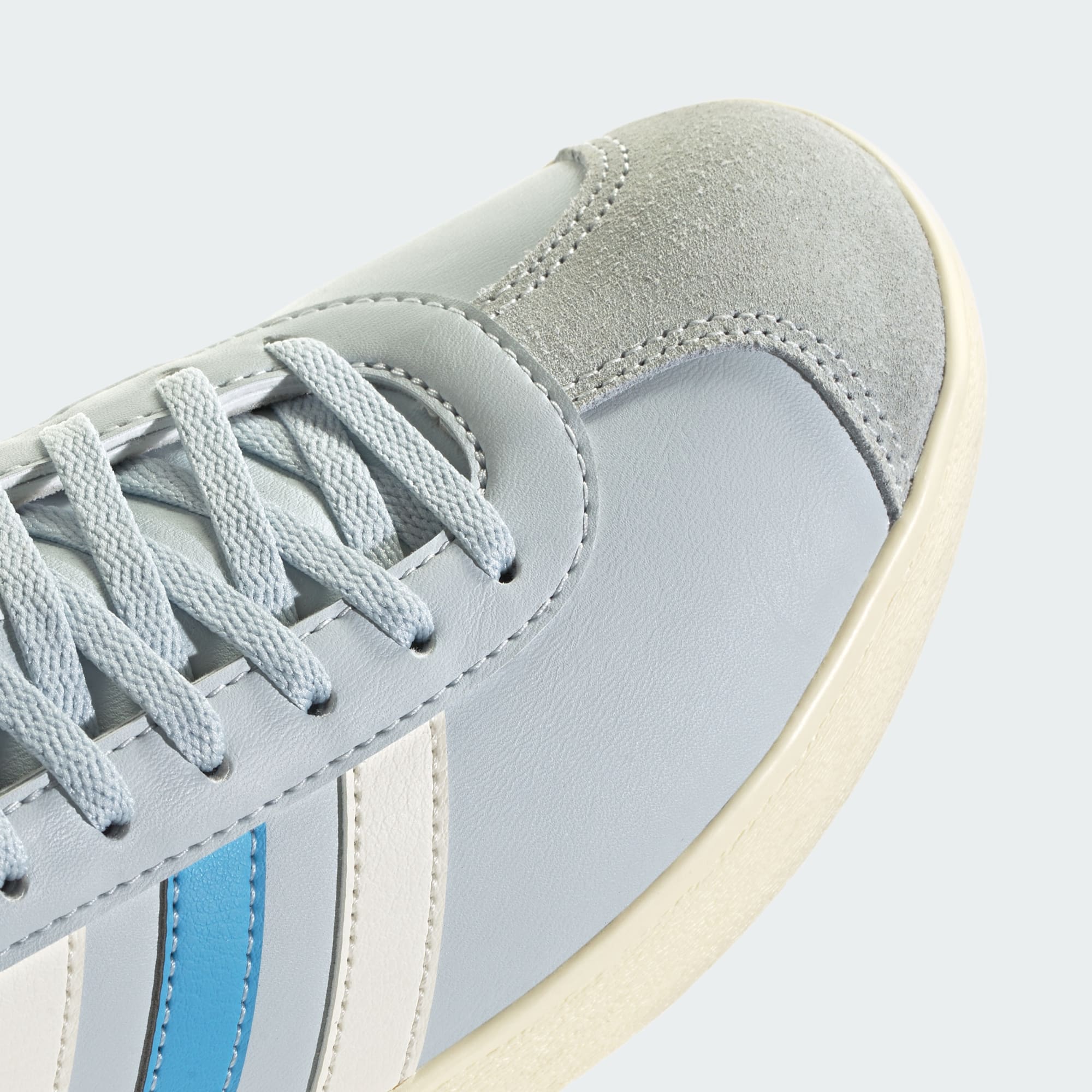 A clean, classic look is always trending. These adidas trainers feature a smooth, synthetic leather upper and a traditional T-toe. A rubber cupsole and contrast 3-Stripes add a sporty finish to this pair.