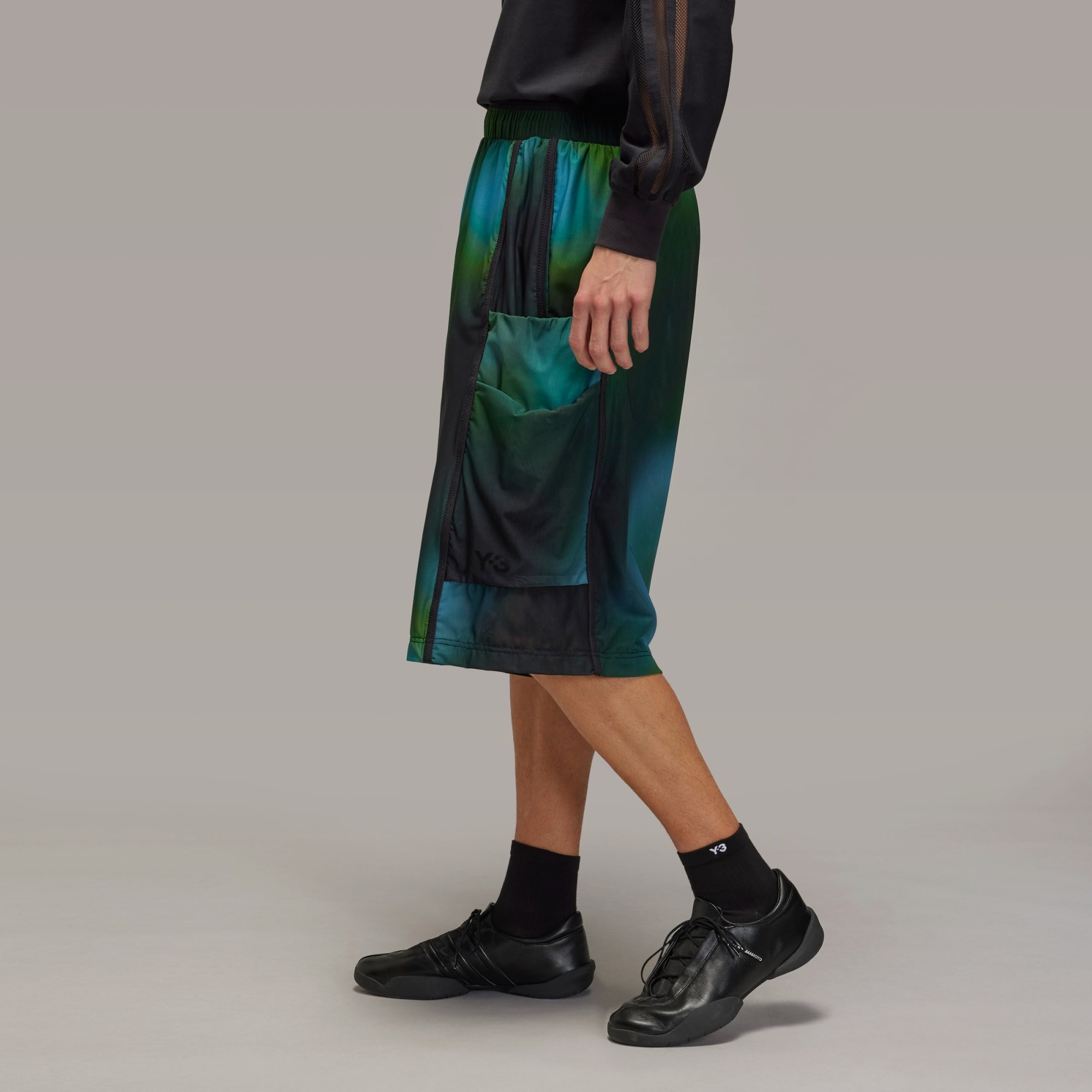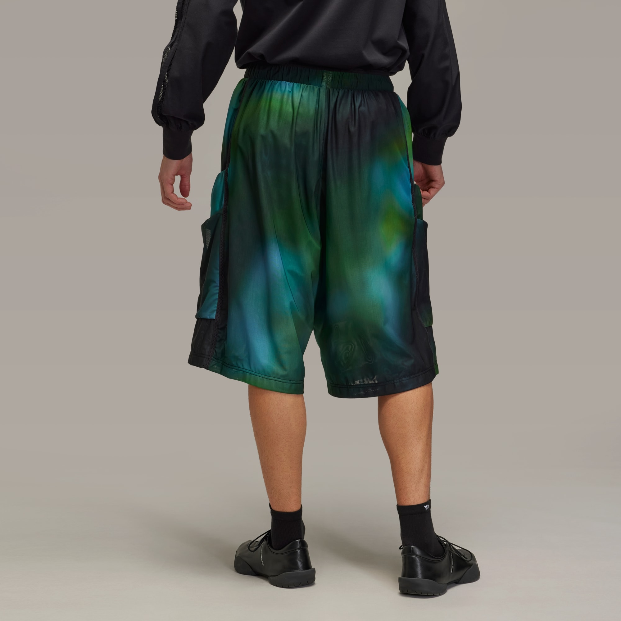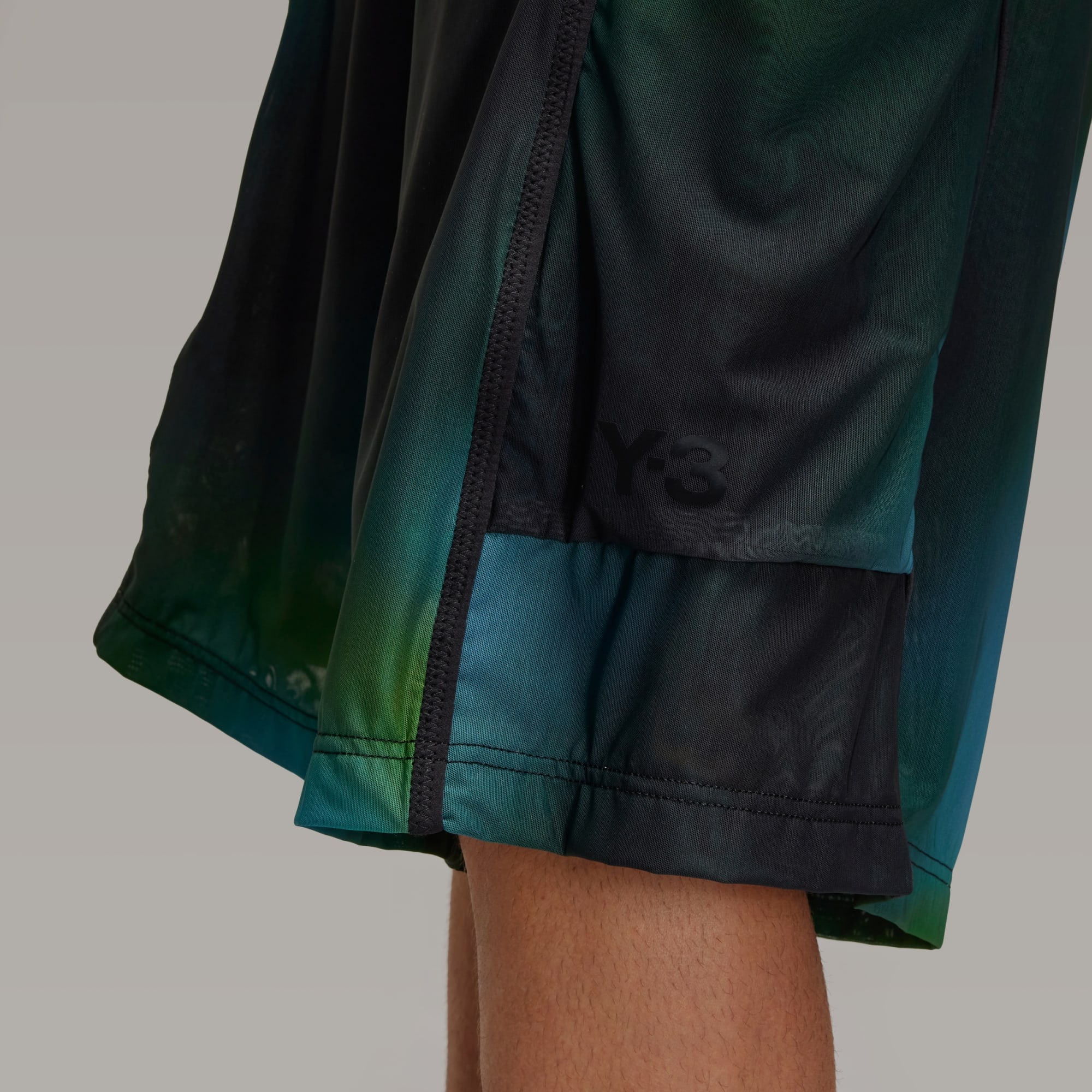 Mesh shorts from Y-3 with a blurred allover print.